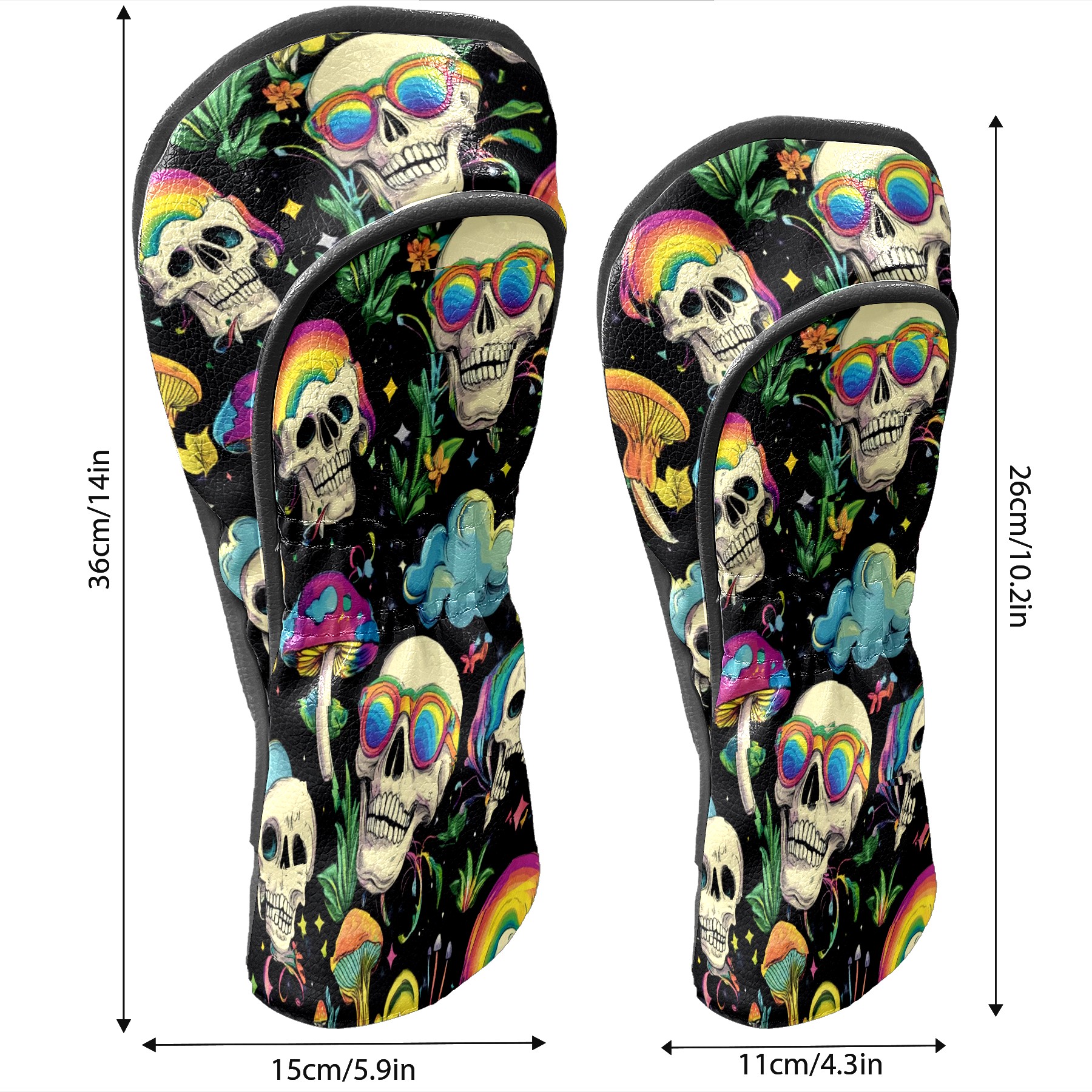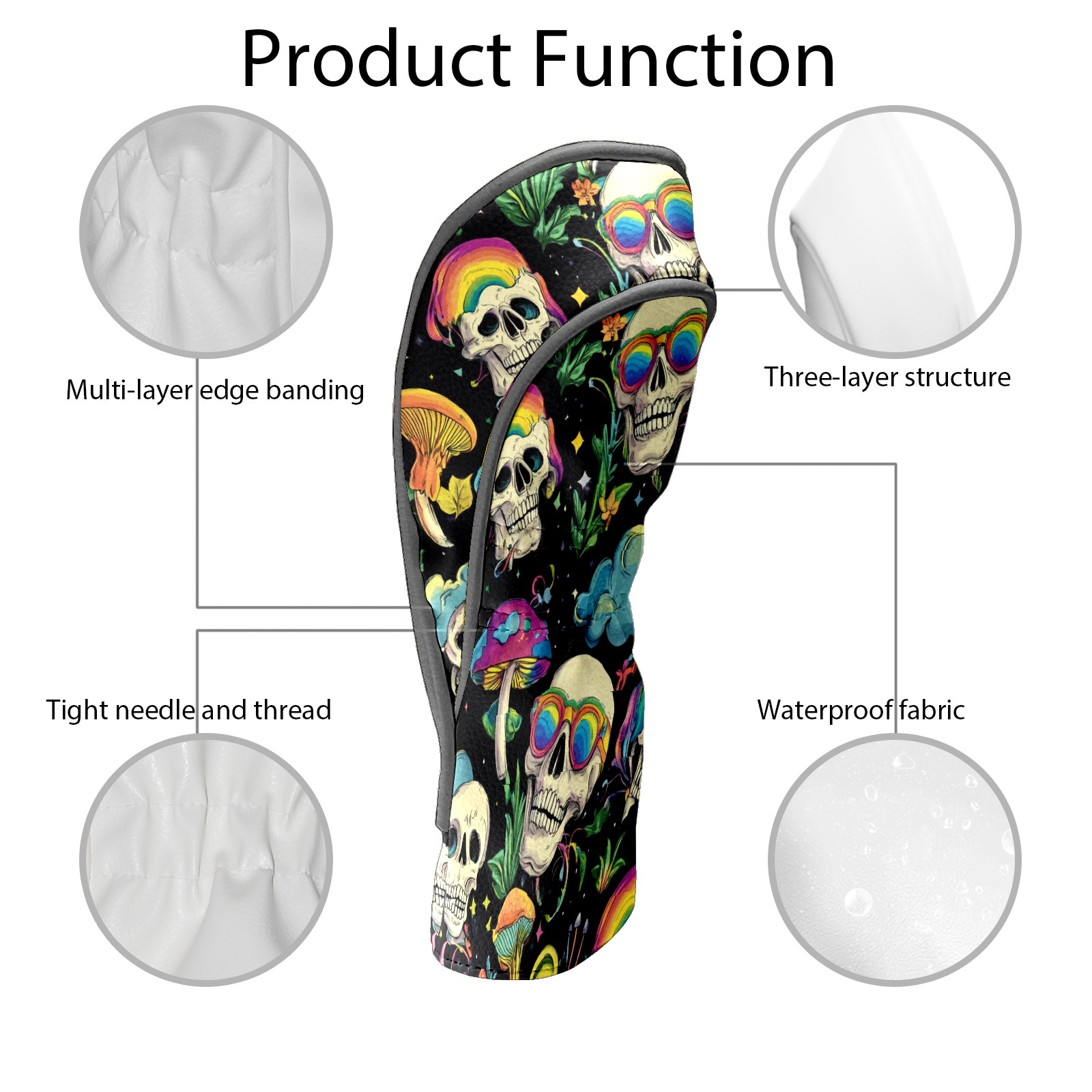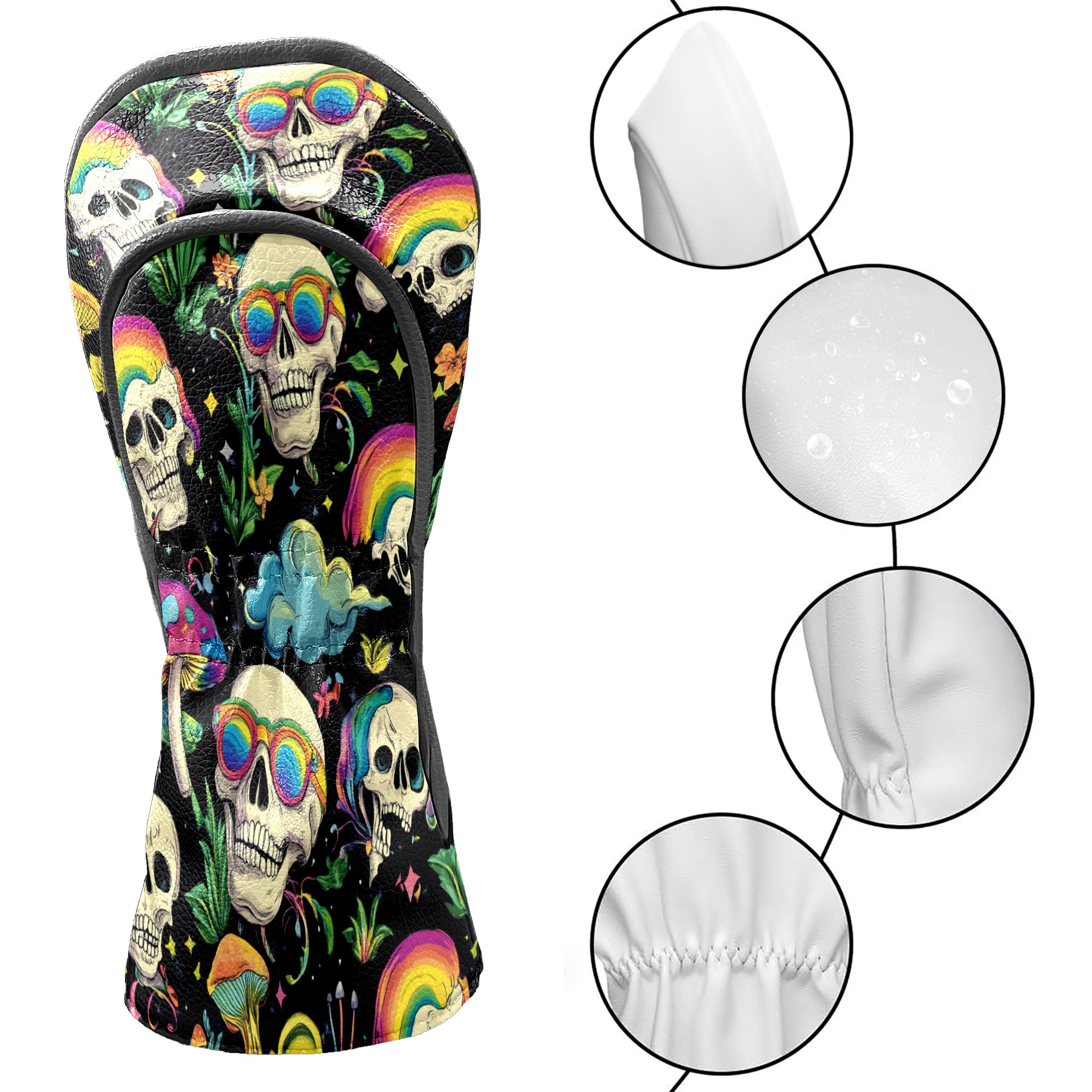 Professional Golf Club Head Covers Set for Fairway Woods and Hybrid - Waterproof Design with Stretchable Fit, Universal Club Protection for Men & Women (Skulls With Rainbow Eyes Mushrooms)
