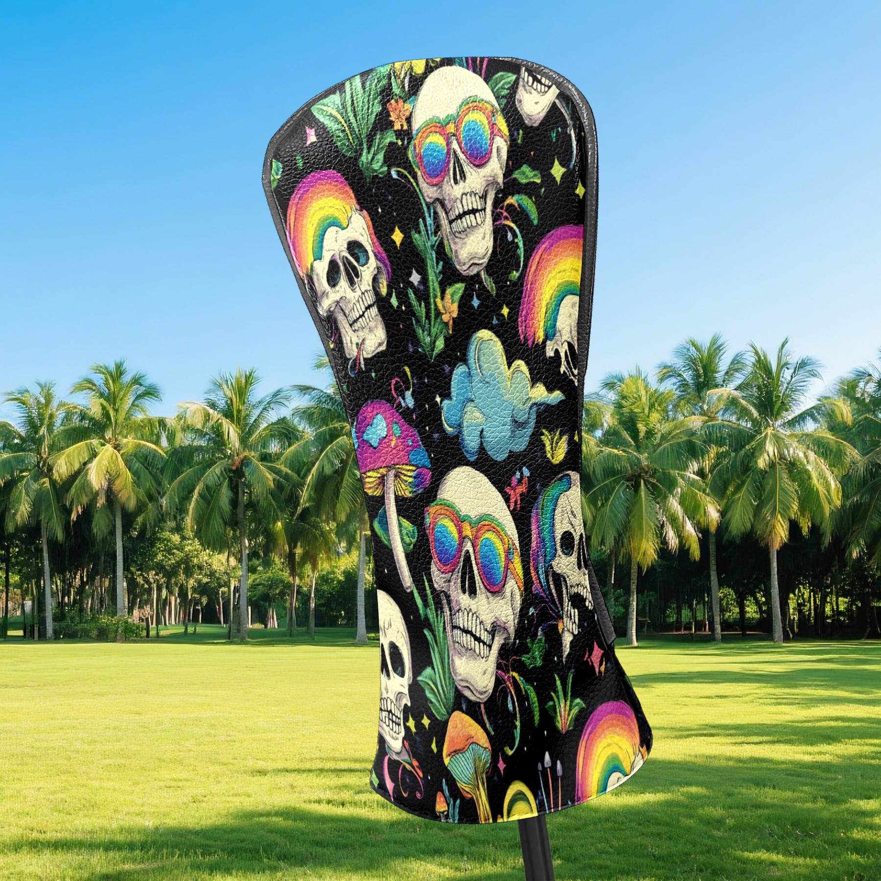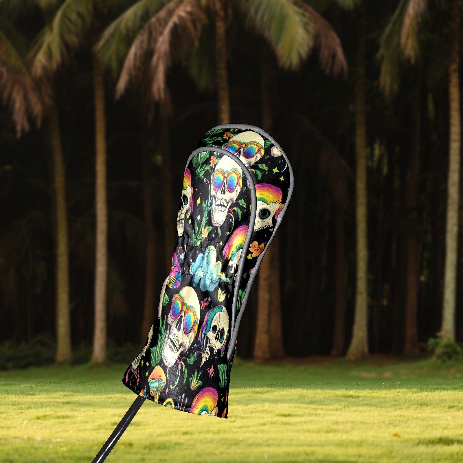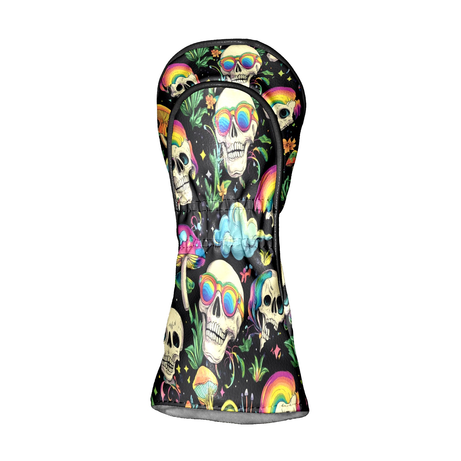 Professional Golf Club Head Covers Set for Fairway Woods and Hybrid - Waterproof Design with Stretchable Fit, Universal Club Protection for Men & Women (Skulls With Rainbow Eyes Mushrooms)