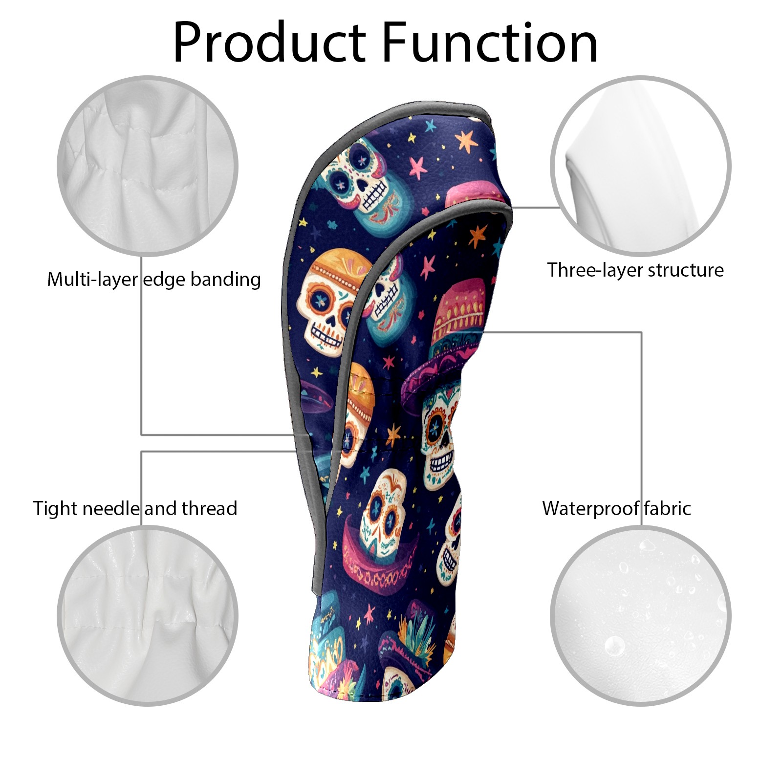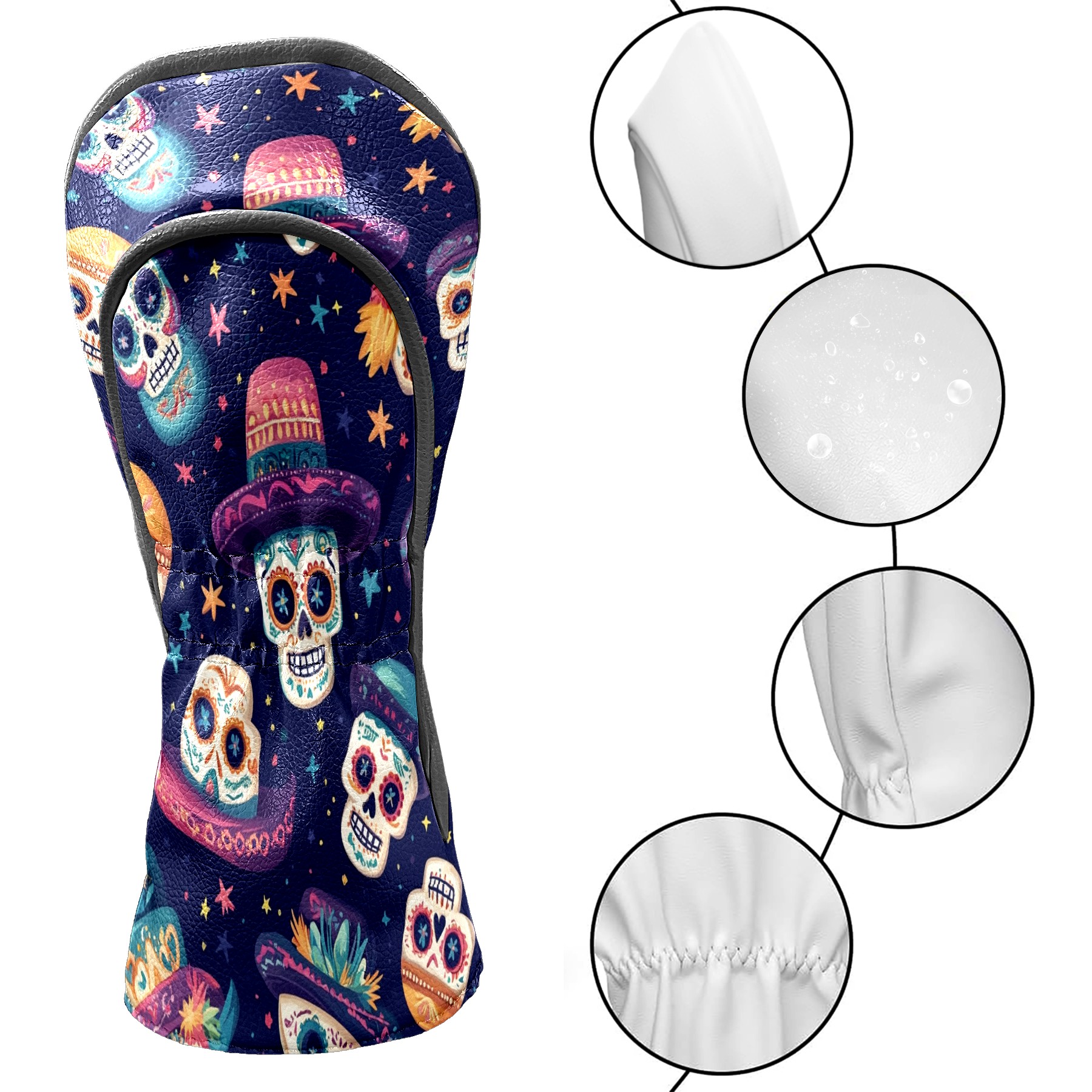 Professional Golf Club Head Covers Set for Fairway Woods and Hybrid - Waterproof Design with Stretchable Fit, Universal Club Protection for Men & Women (Skulls And Mexican Hat)