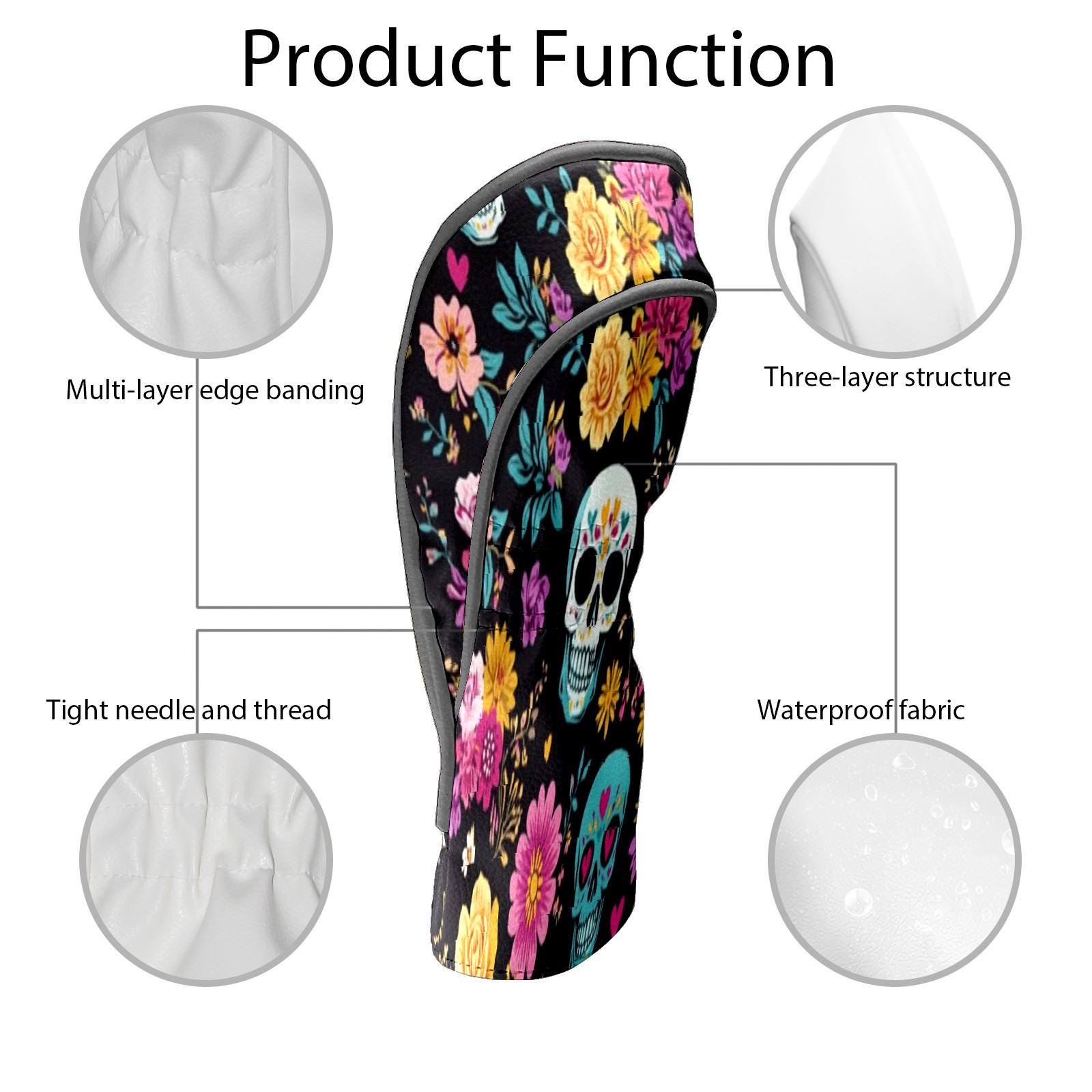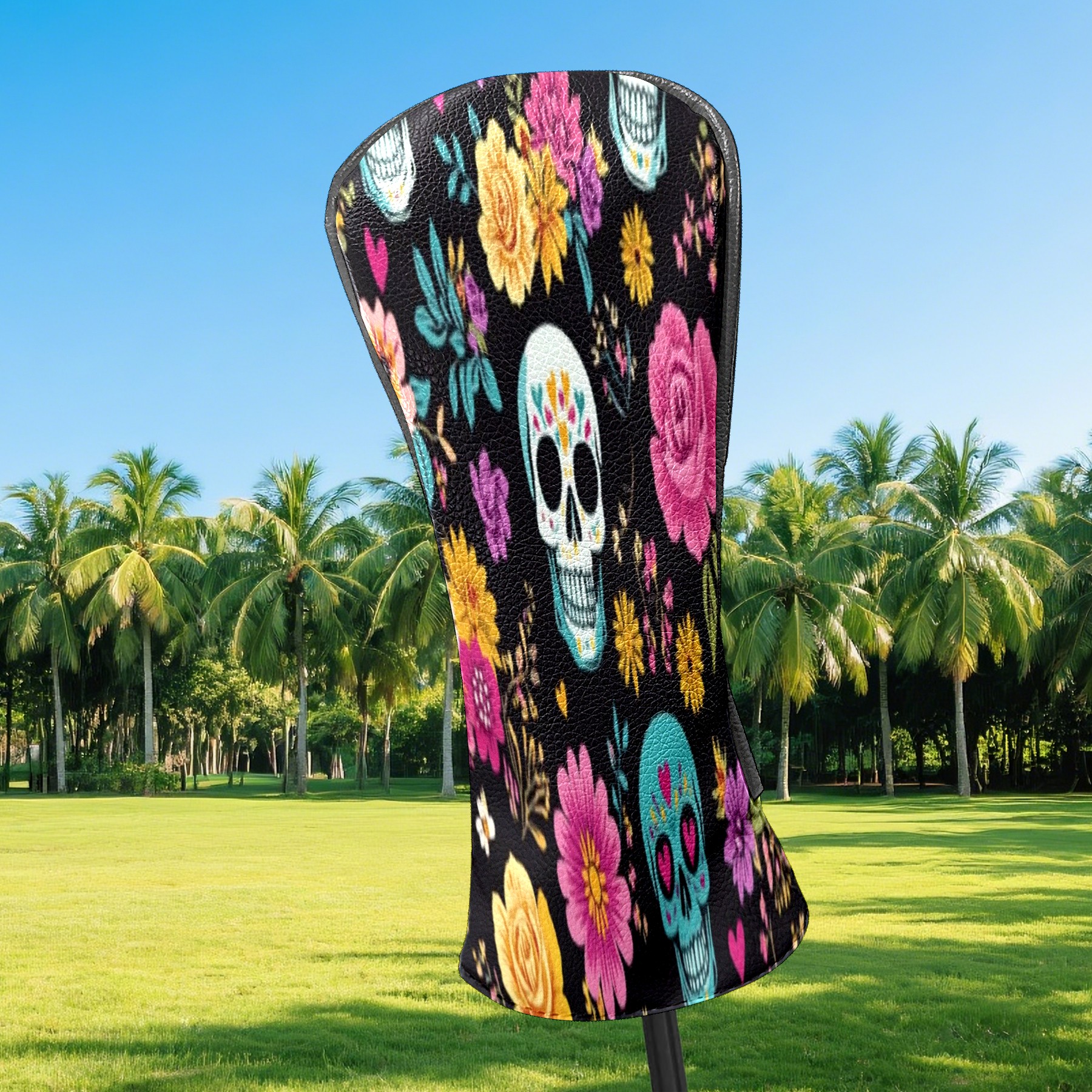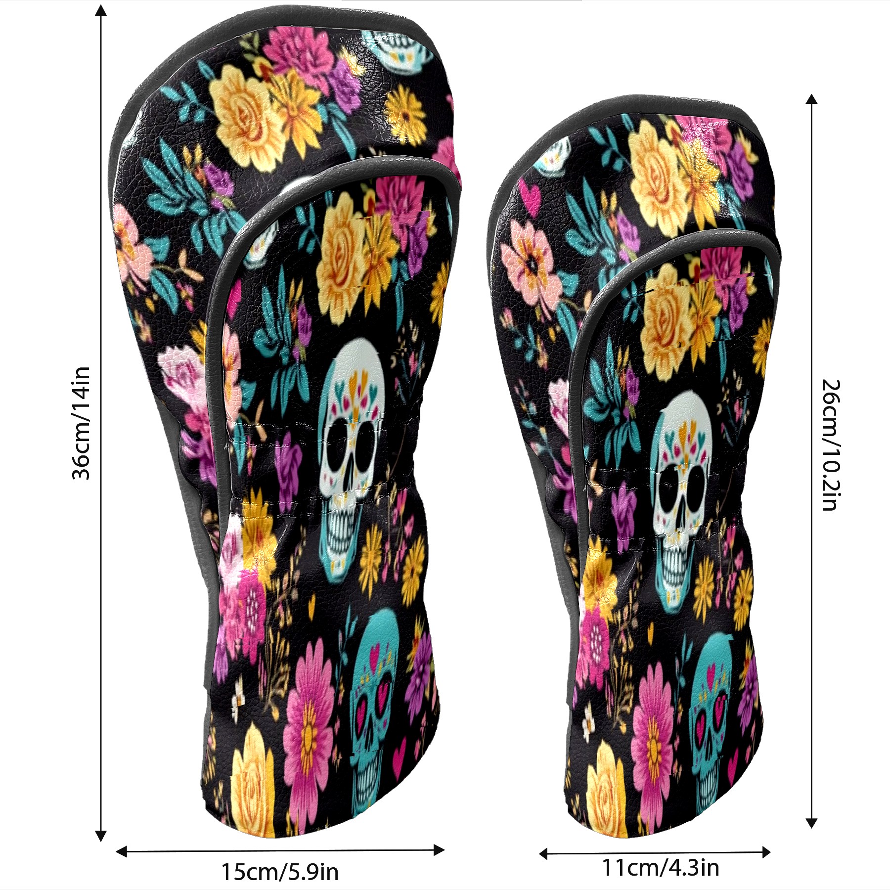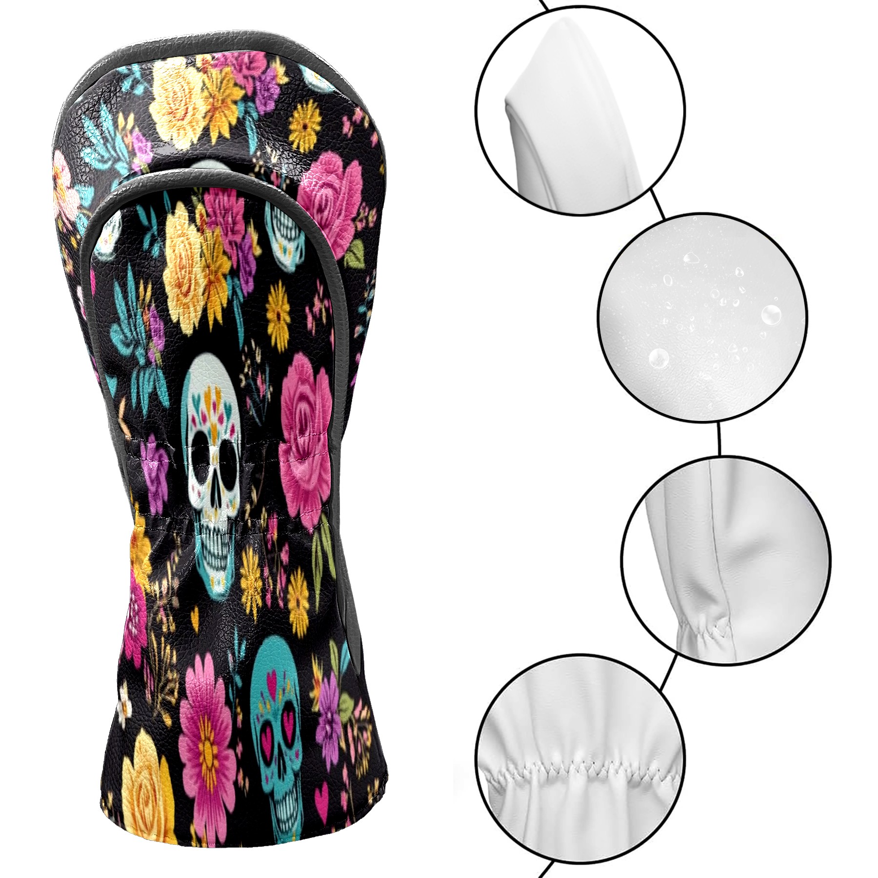 Professional Golf Club Head Covers Set for Fairway Woods and Hybrid - Waterproof Design with Stretchable Fit, Universal Club Protection for Men & Women (Skull And Colorful Floral)
