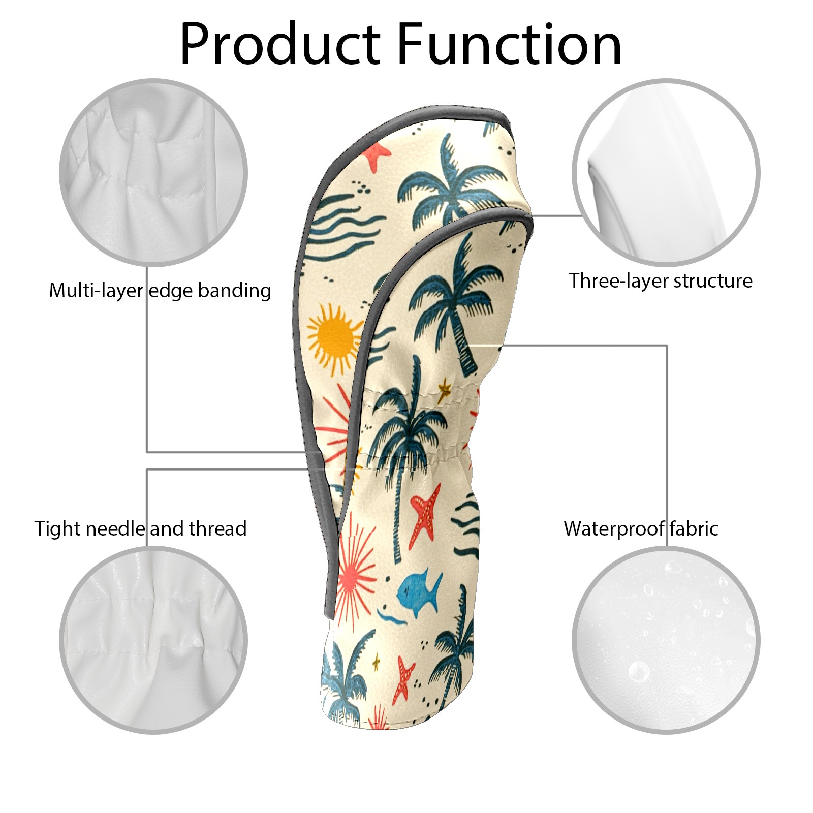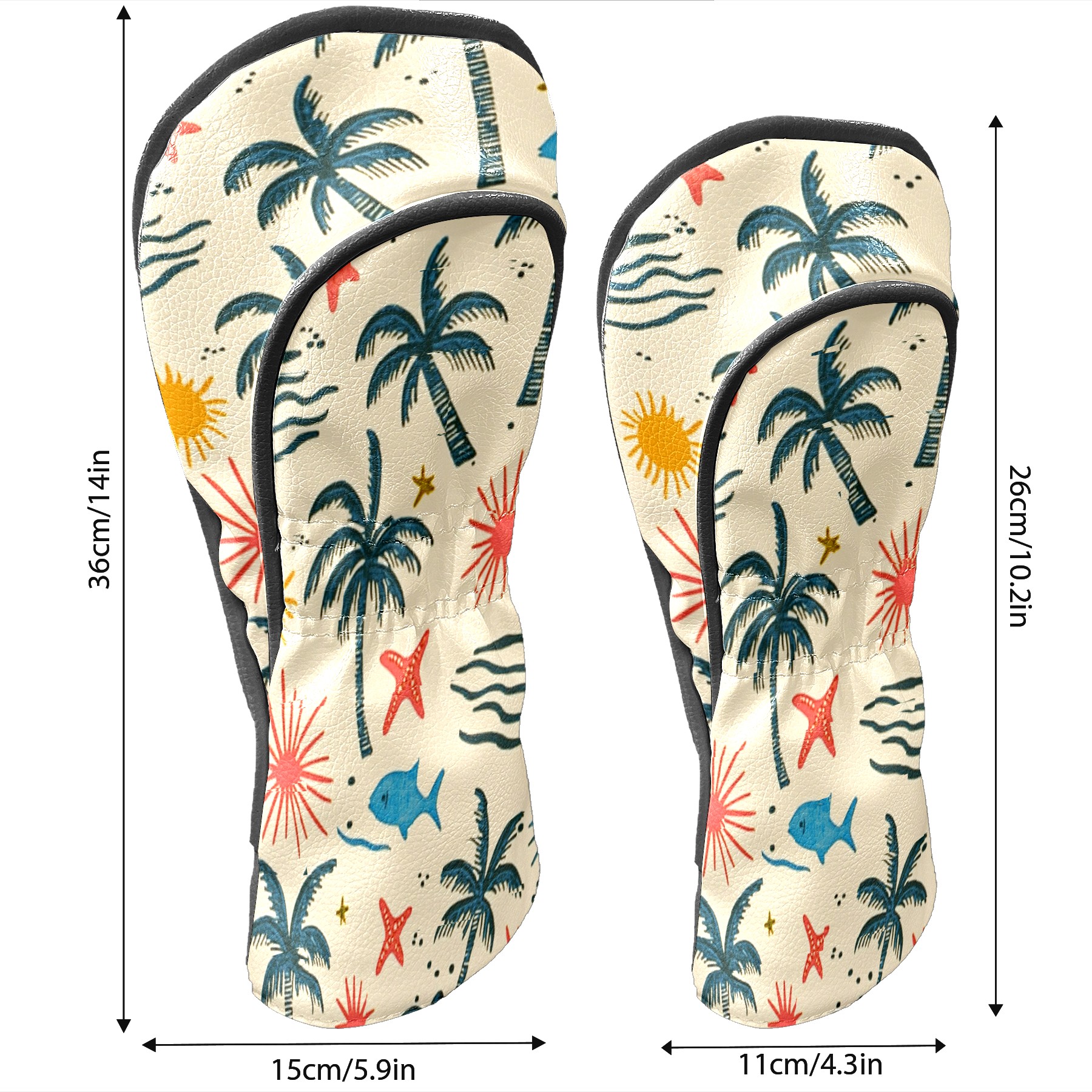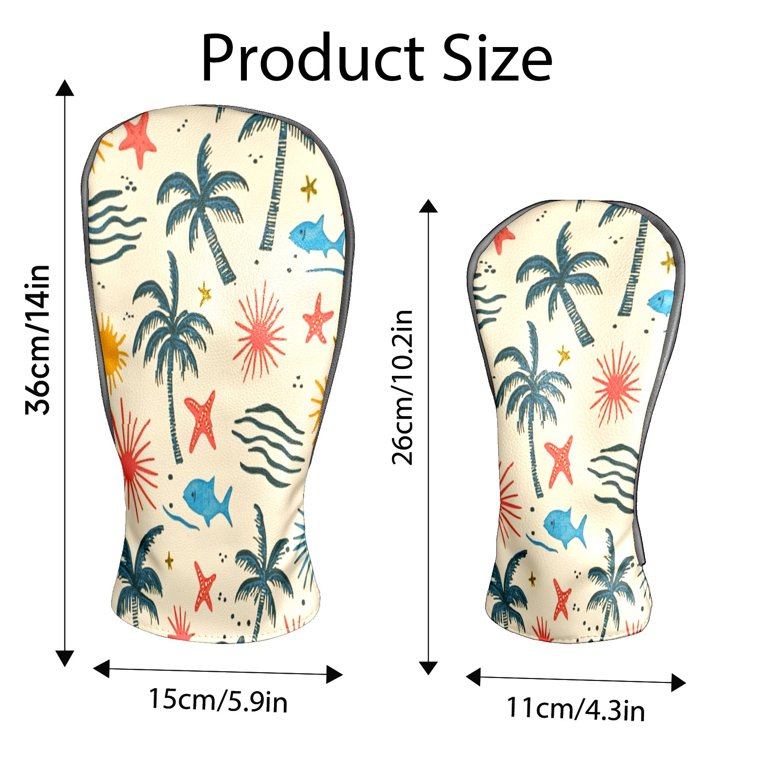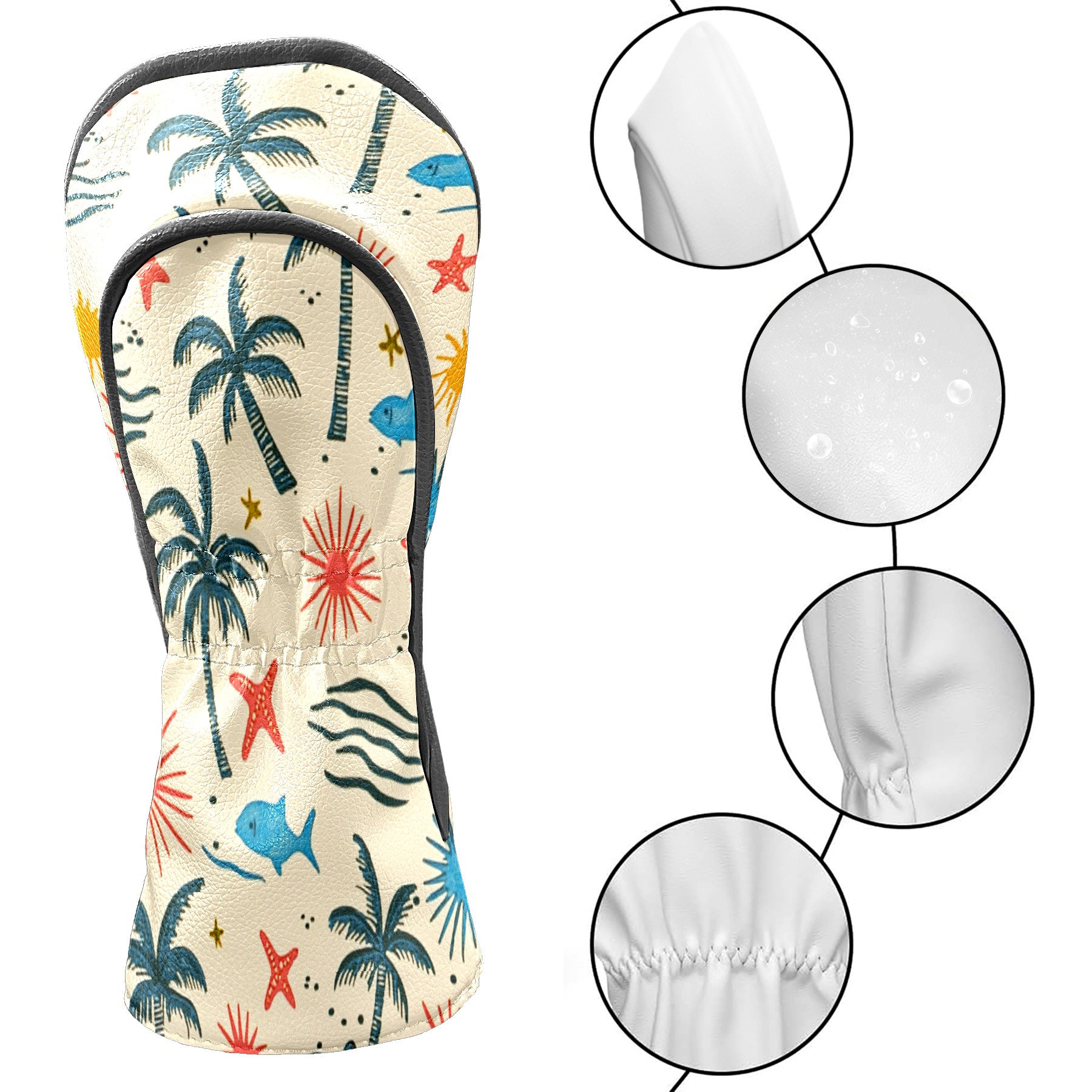 Professional Golf Club Head Covers Set for Fairway Woods and Hybrid - Waterproof Design with Stretchable Fit, Universal Club Protection for Men & Women (Palm Trees Suns And Starfish)