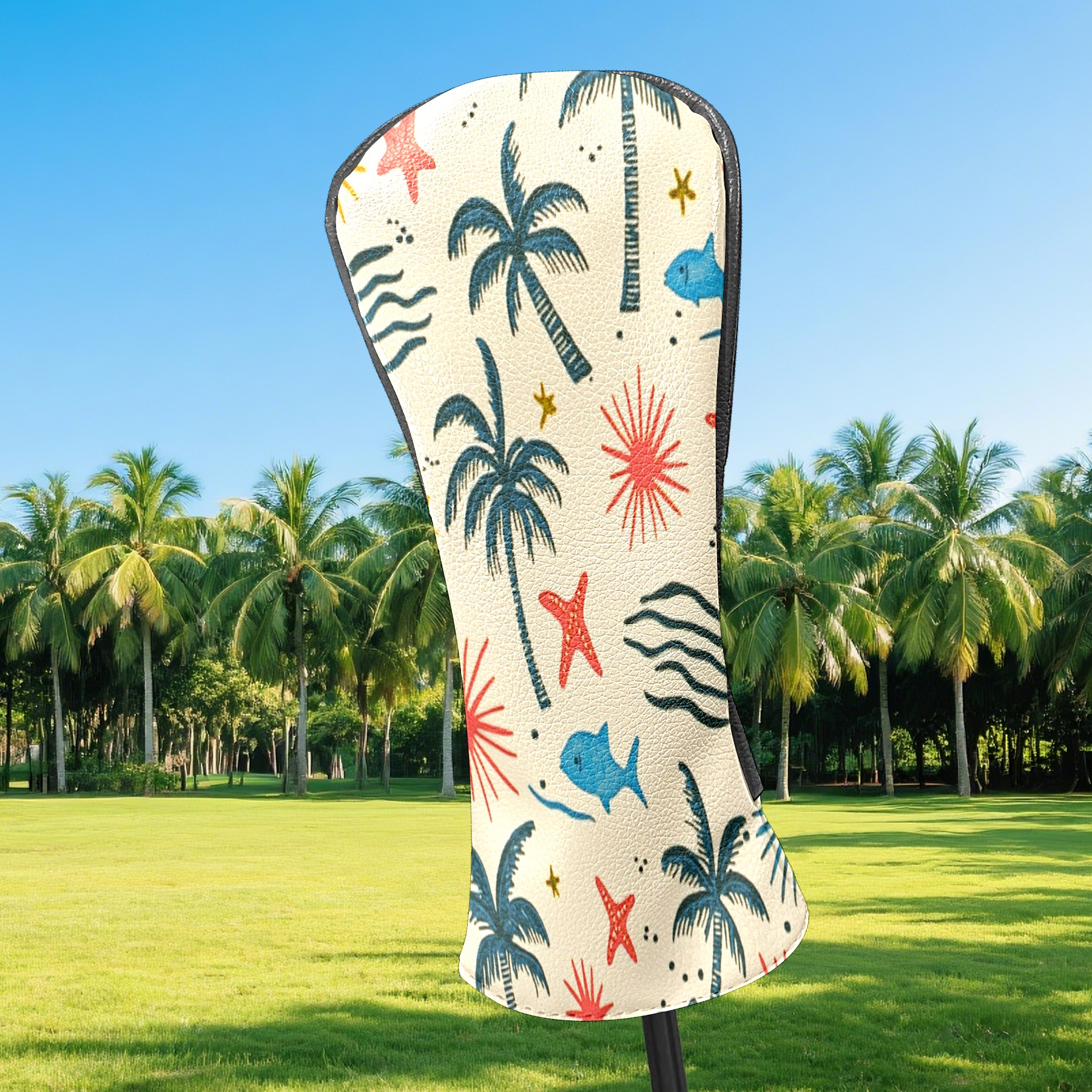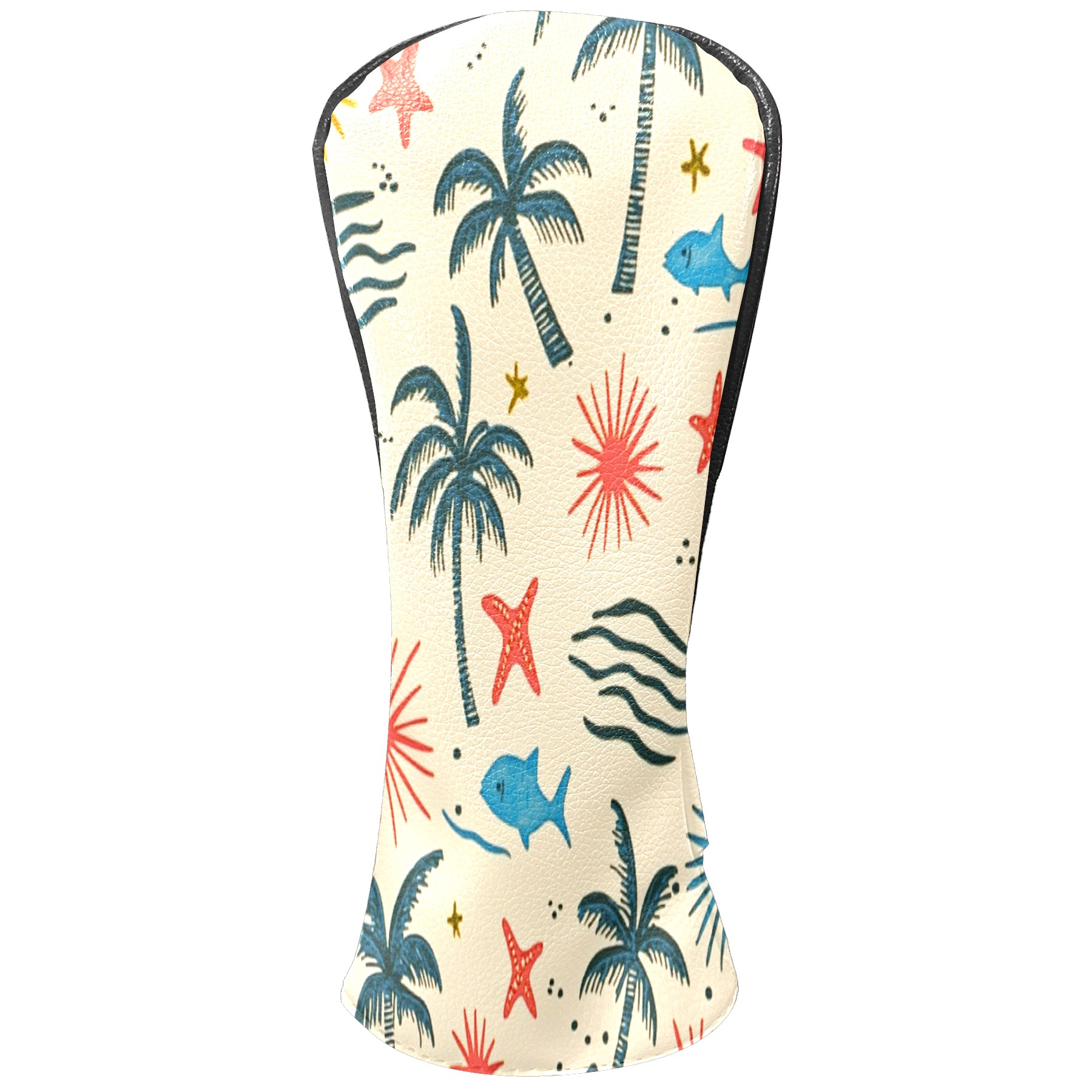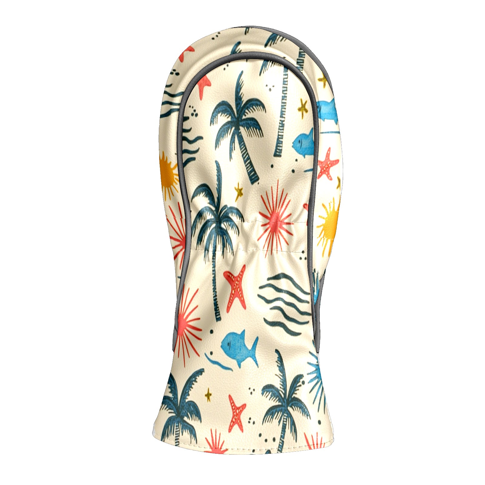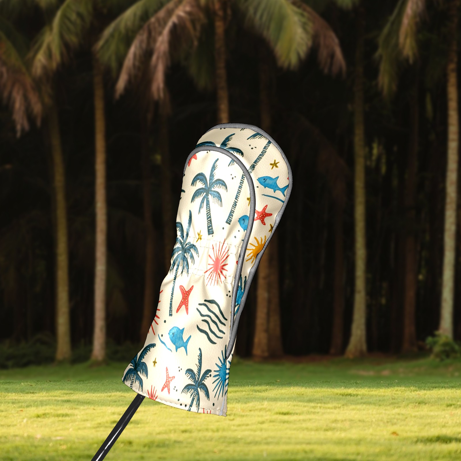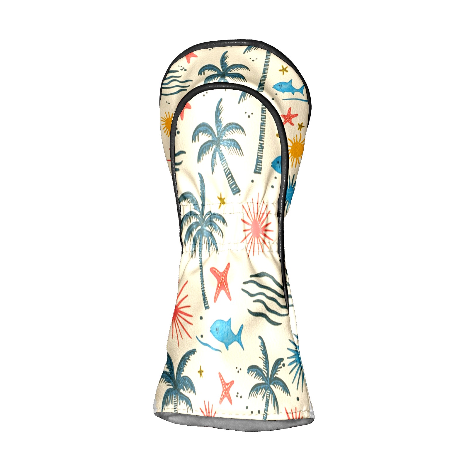 Professional Golf Club Head Covers Set for Fairway Woods and Hybrid - Waterproof Design with Stretchable Fit, Universal Club Protection for Men & Women (Palm Trees Suns And Starfish)