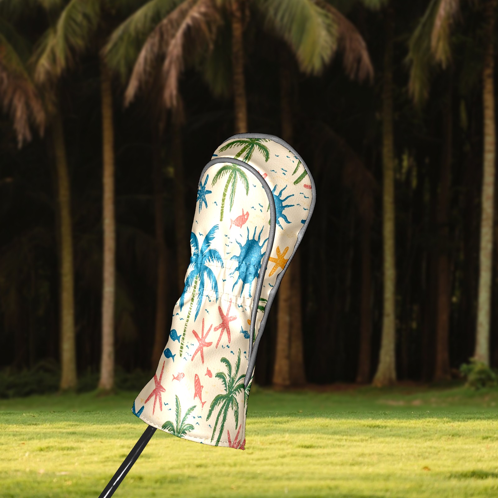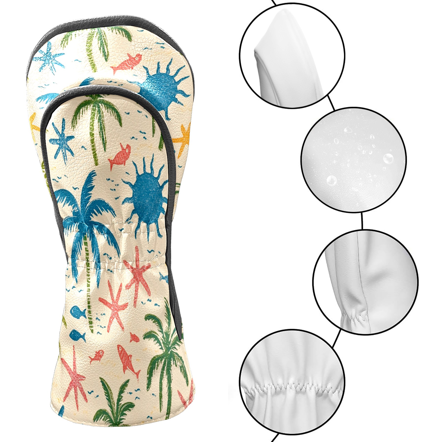 Professional Golf Club Head Covers Set for Fairway Woods and Hybrid - Waterproof Design with Stretchable Fit, Universal Club Protection for Men & Women (Palm Trees And Starfish)