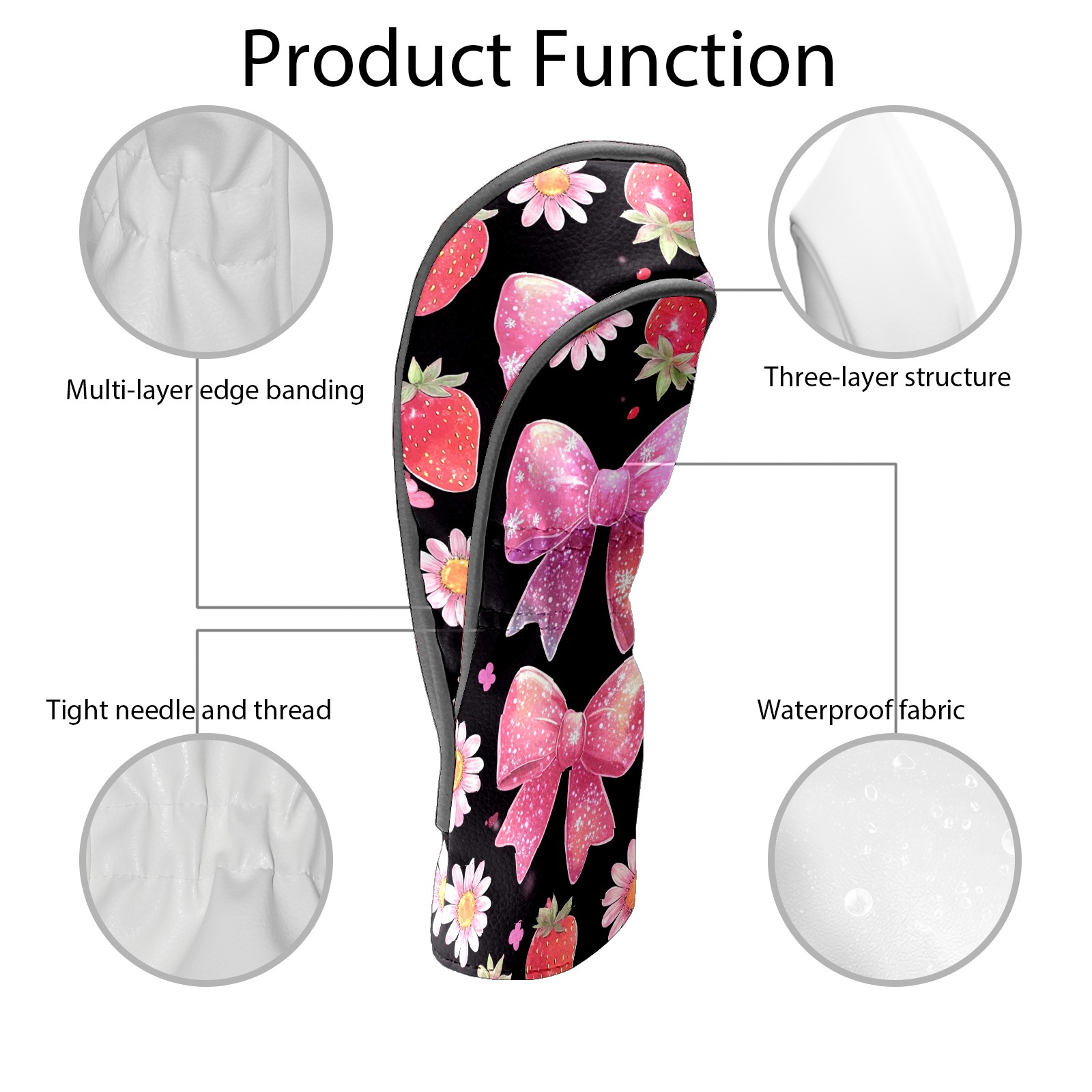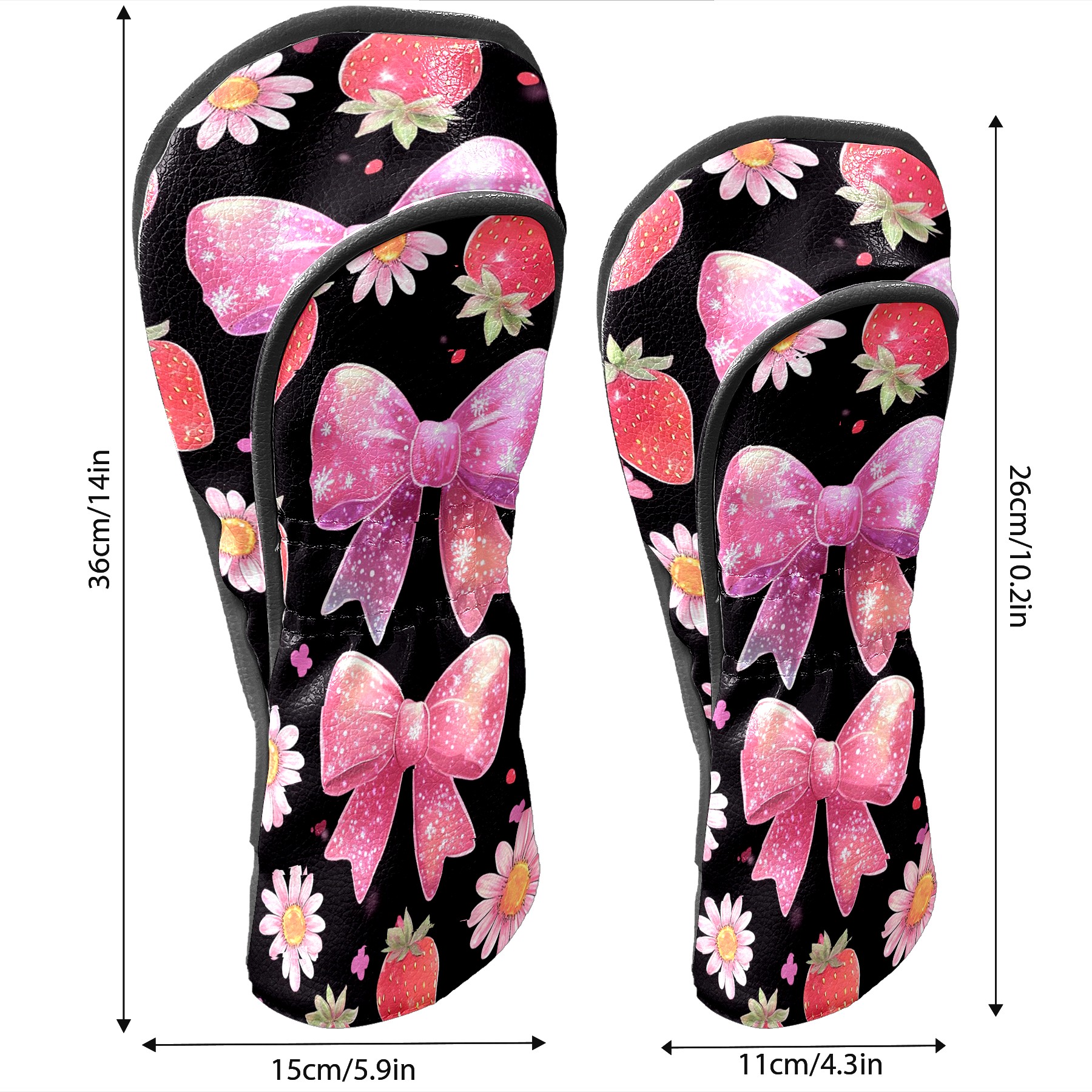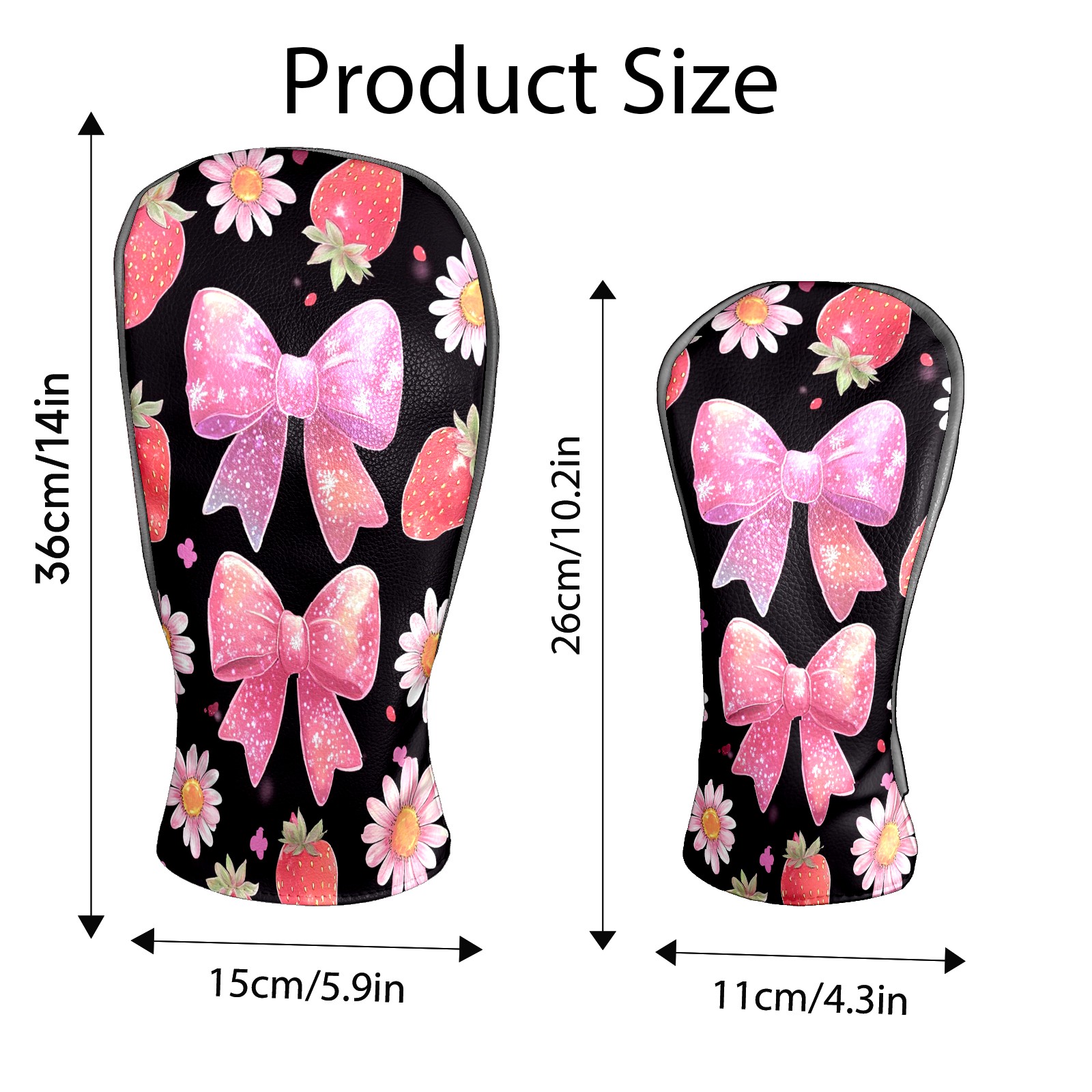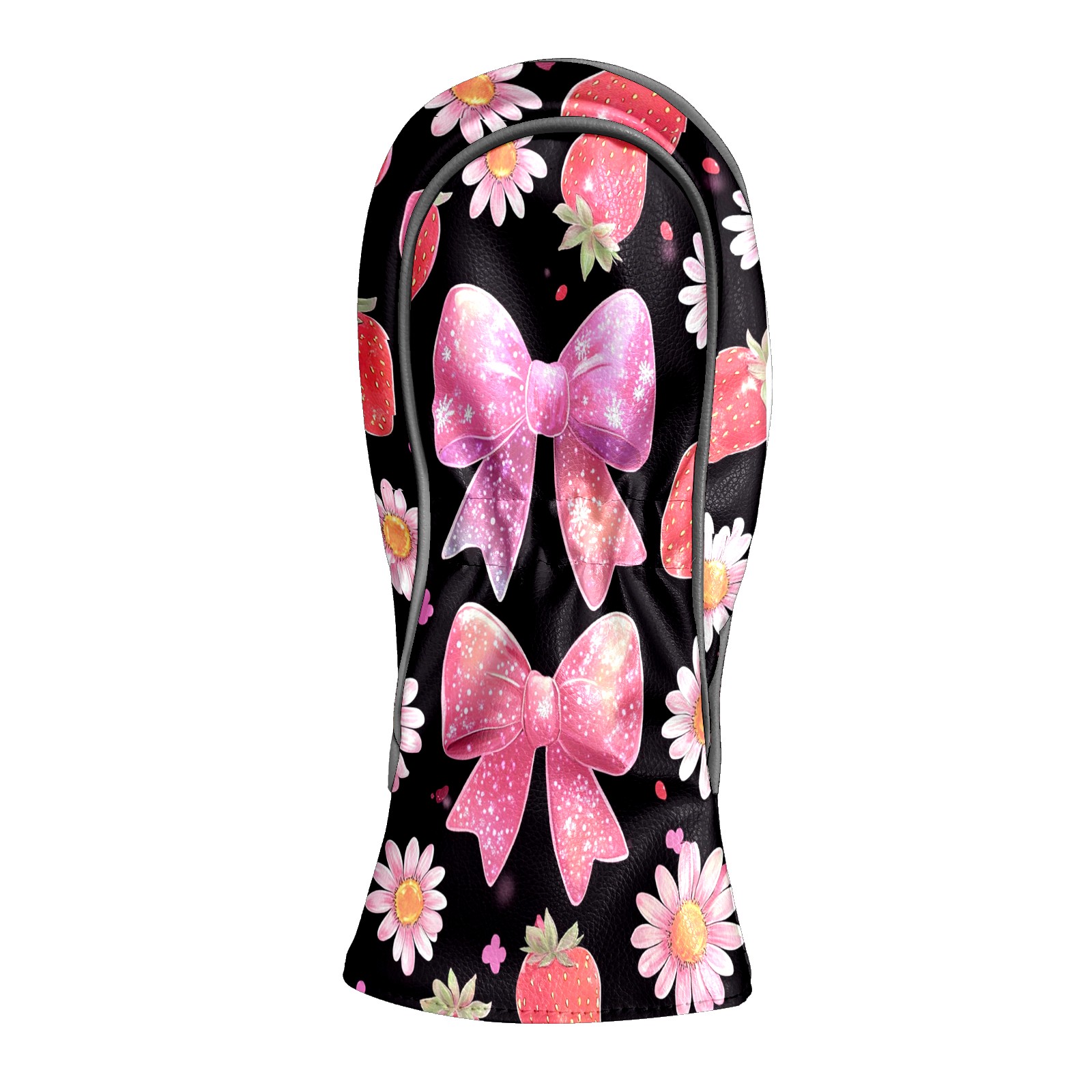 Golf Club Head Cover Premium Leather Driver Headcover, Golf Head Covers for Woods and Driver Waterproof Golf Headcovers with Anti-Scratch Lining for Men Women (Pink Bows Strawberry)