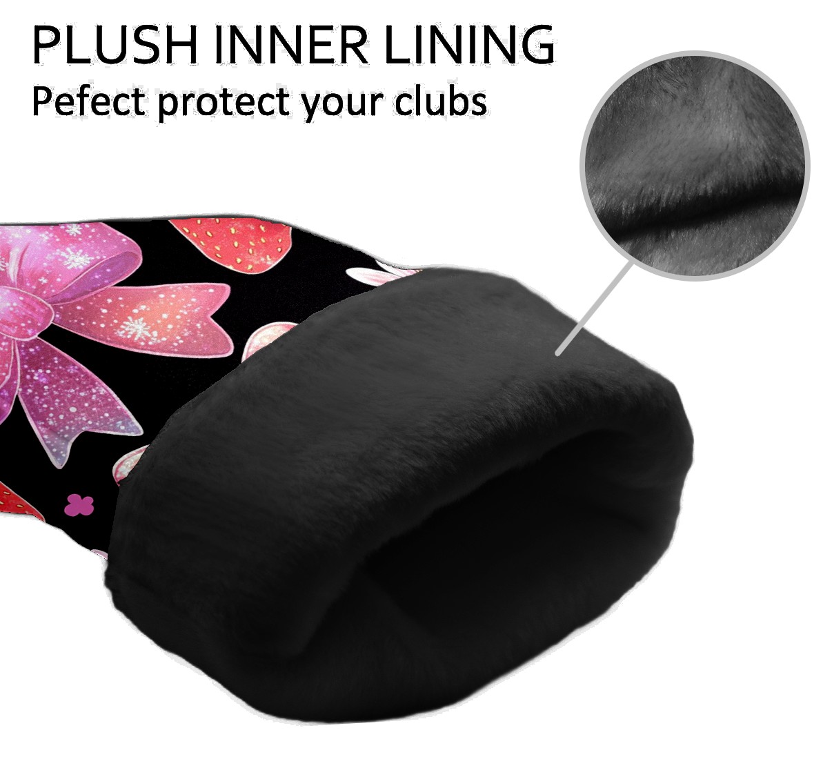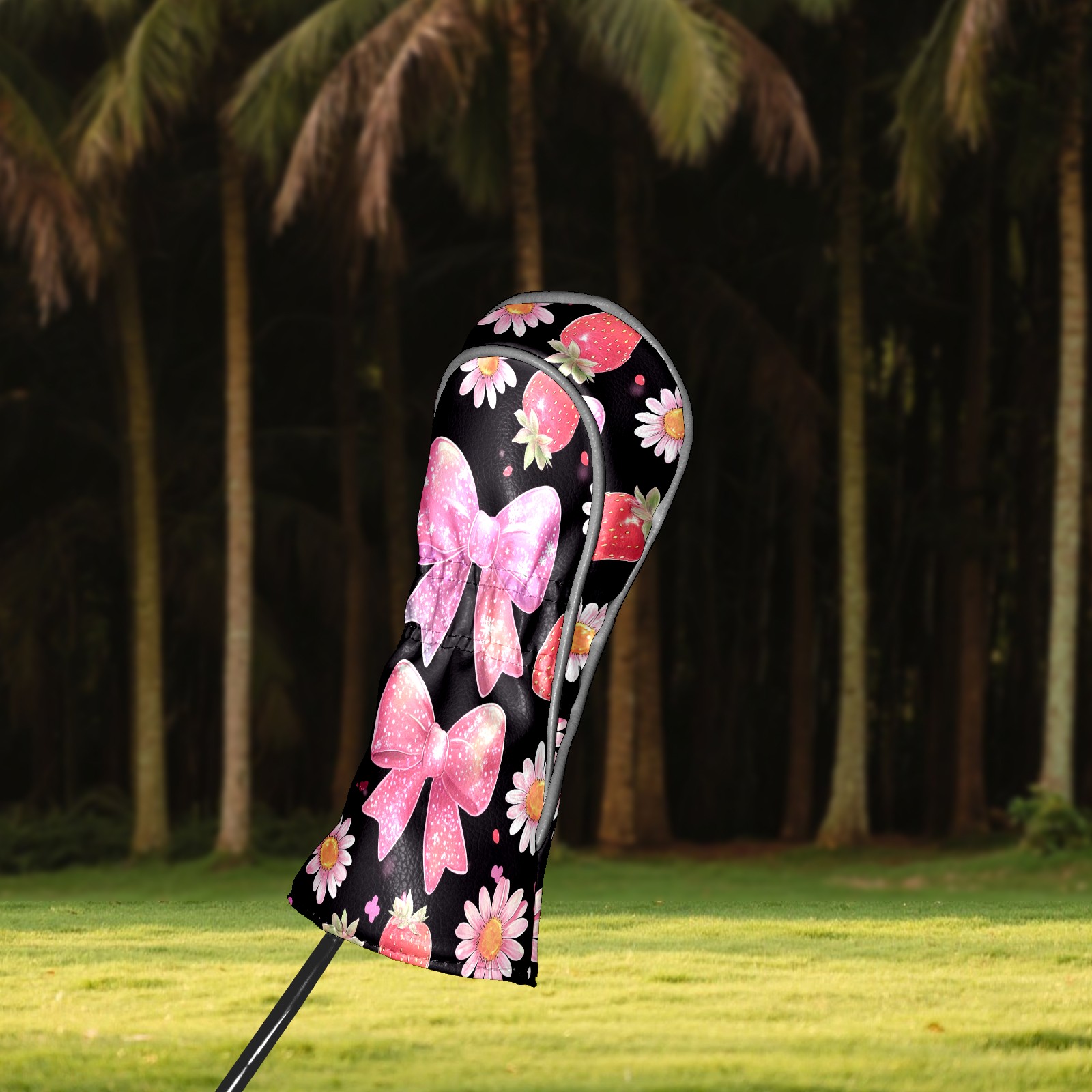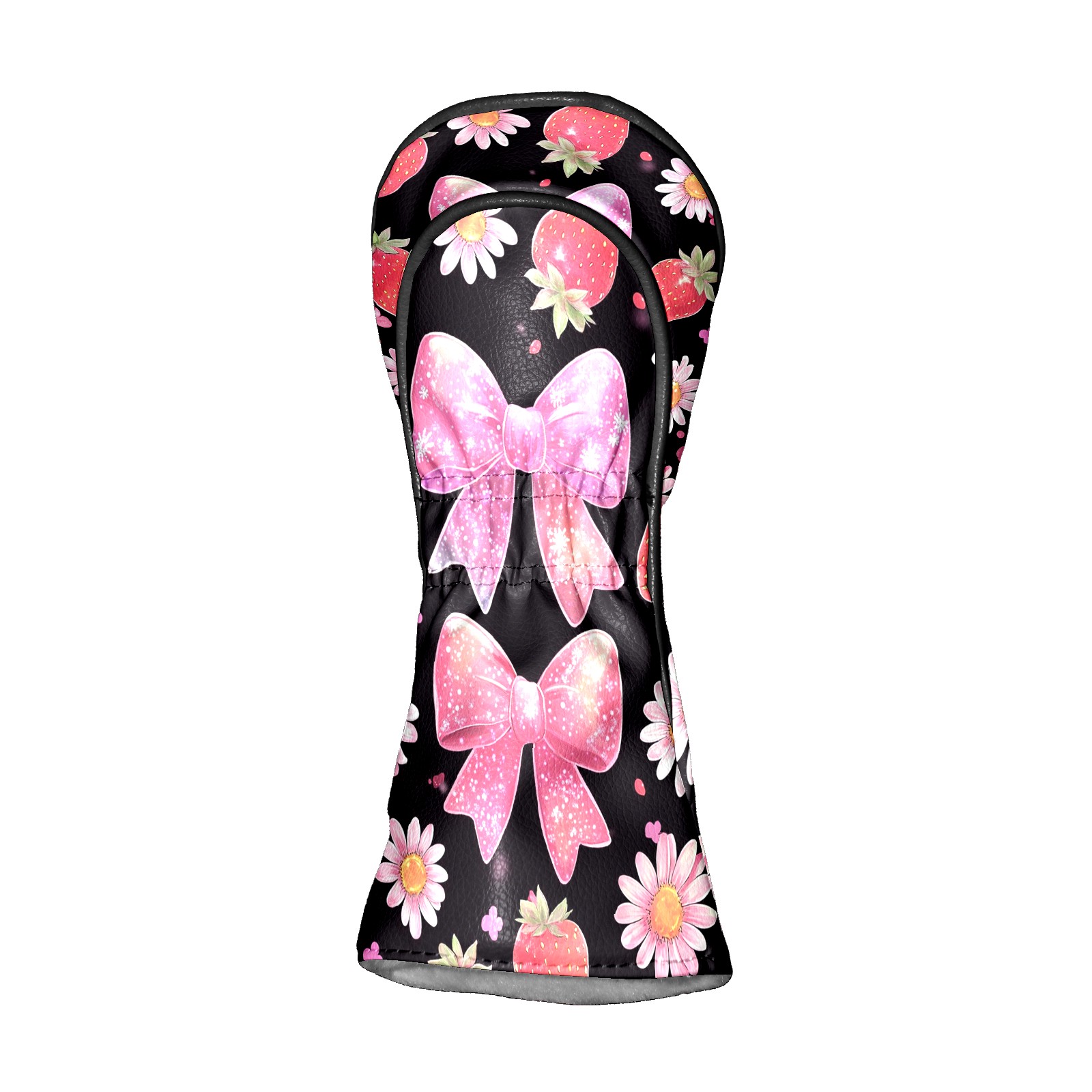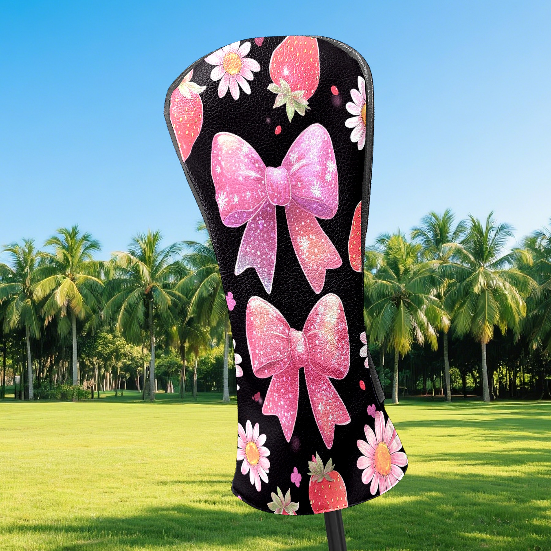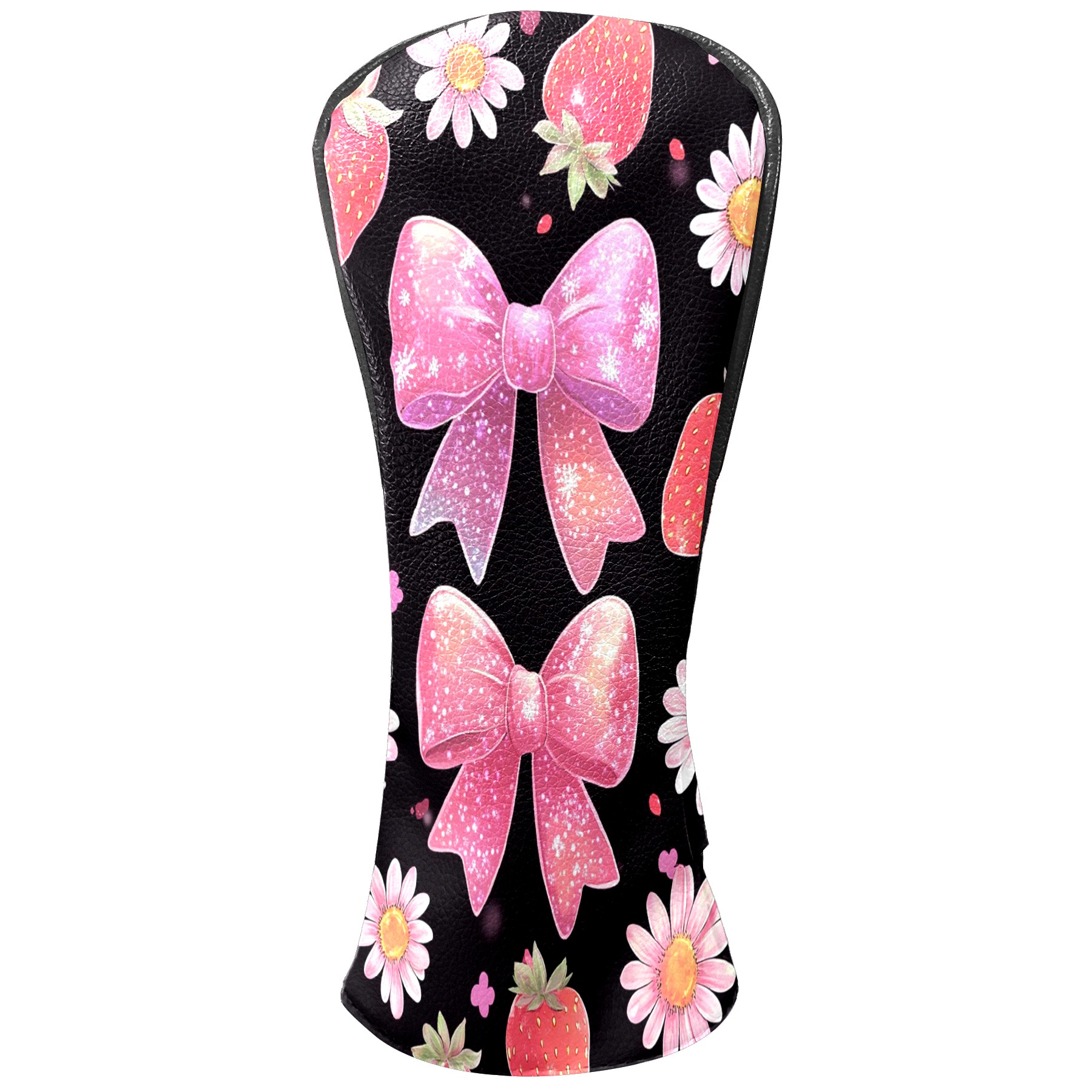Golf Club Head Cover Premium Leather Driver Headcover, Golf Head Covers for Woods and Driver Waterproof Golf Headcovers with Anti-Scratch Lining for Men Women (Pink Bows Strawberry)