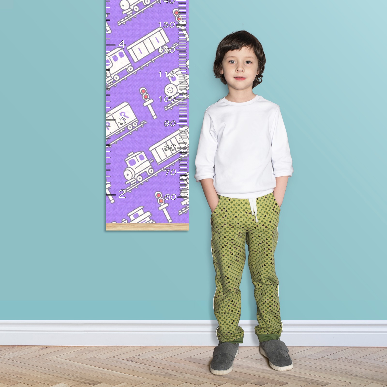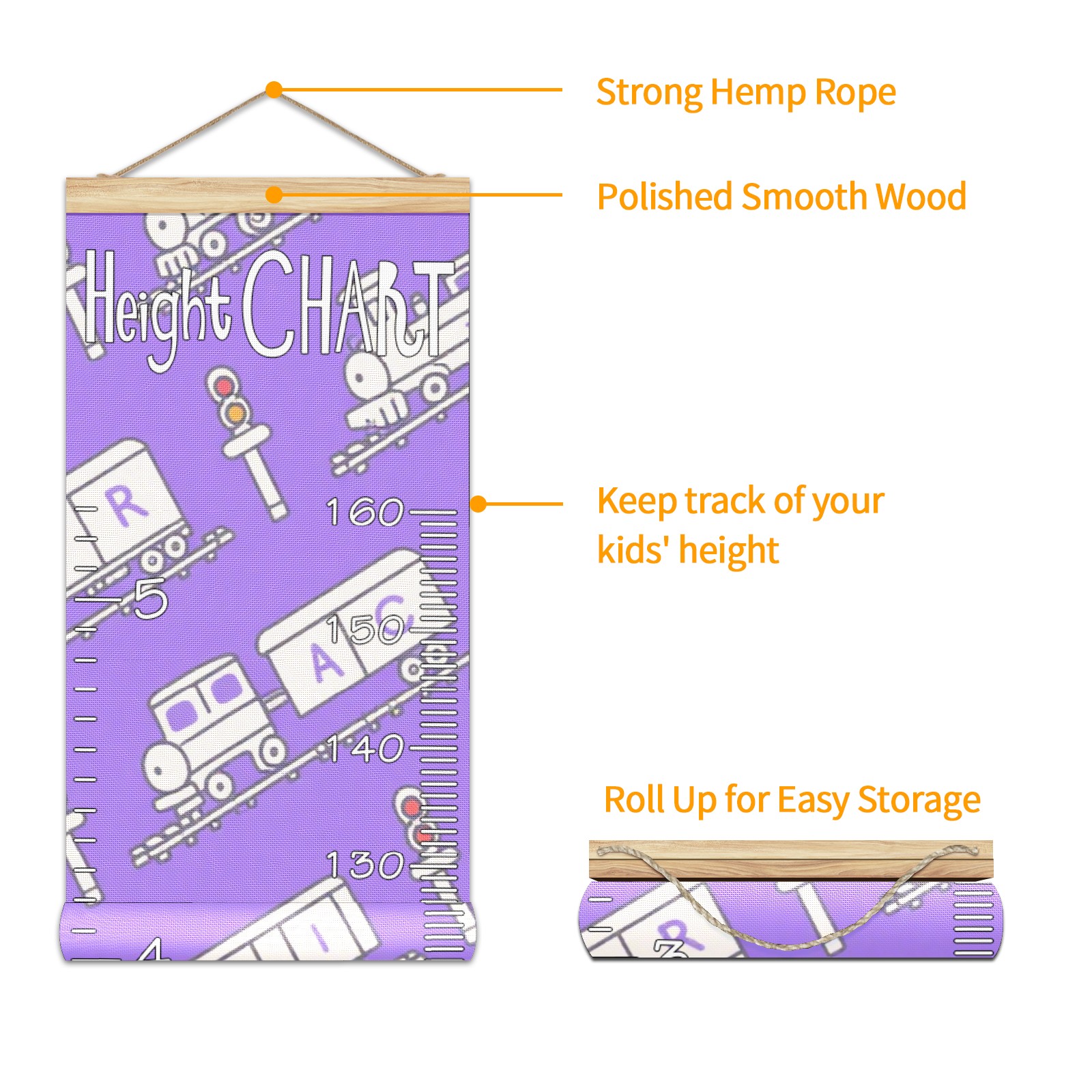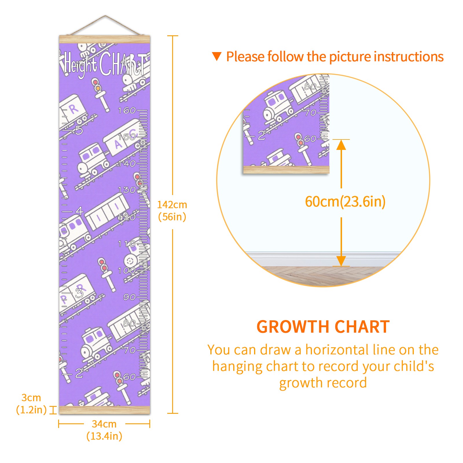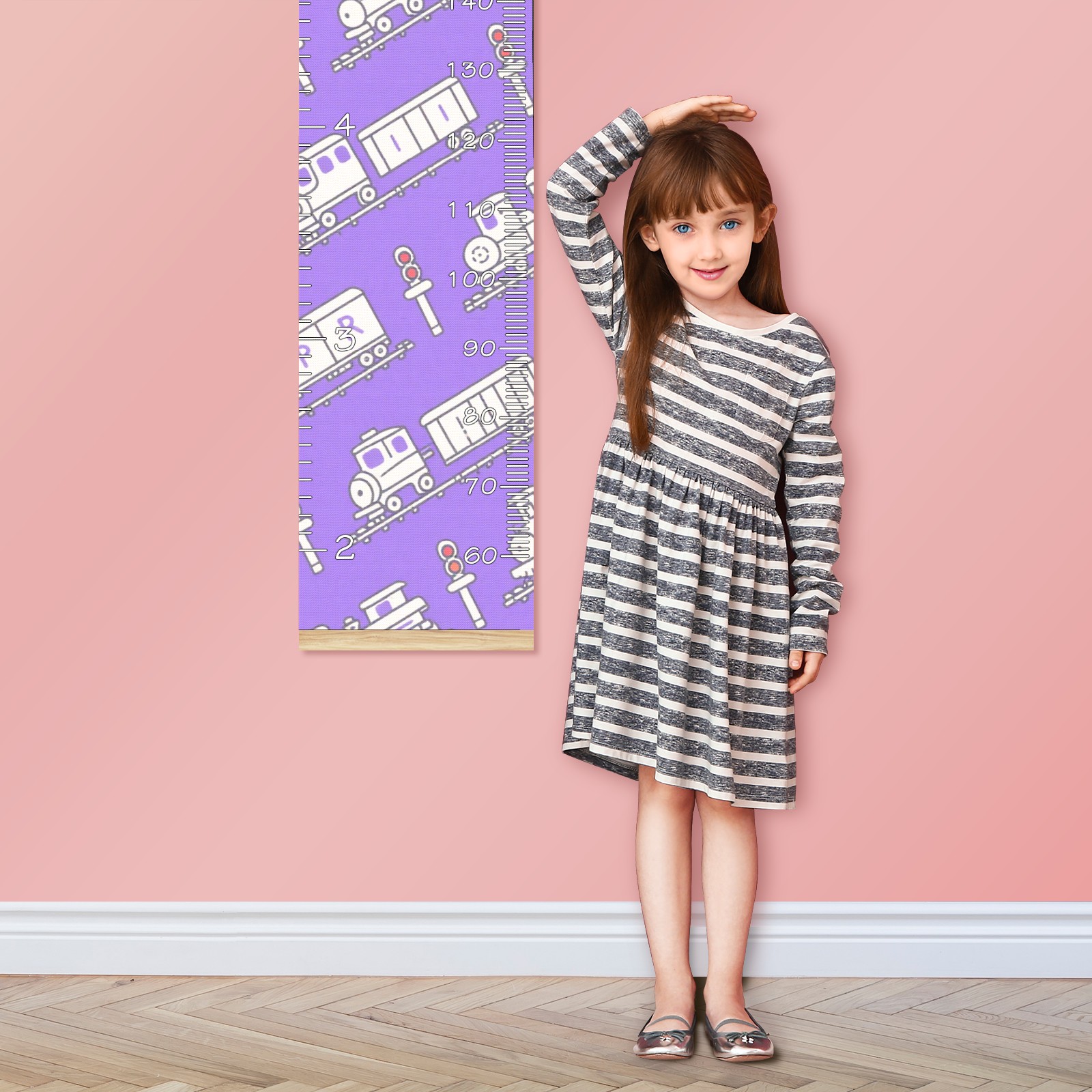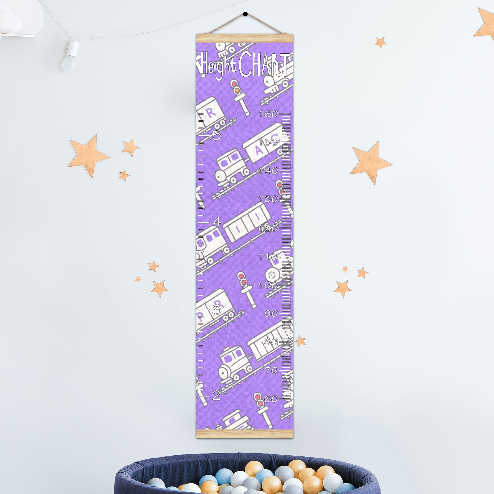 Removable Growth Chart for Kids - Measuring Hanging Height Chart -Meaningful Memories Through Kid Size Chart Measurement Growth Chart Ruler for Wall Purple Train Pattern Home Decor