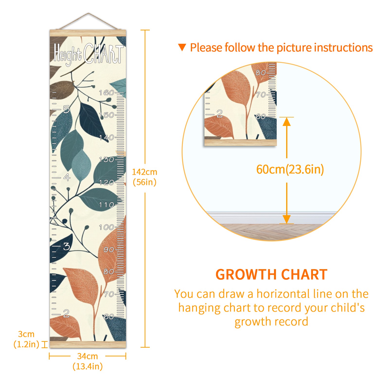 • Kids Growth Chart Ruler for Wall Wooden Frame Ruler Growth Chart for Kids Height Measure Chart 13.4x56 in Linen Fabric Hanging for Home Decor! <br> <br> ✨<b>Memory Keeping</b>: Just simply hang the chart on the wall and use a pen to draw a date on it, accompany your children grow up together and record their heights at different ages.<br> <br> ✨<b>Perfect Gift Idea for Kids</b> <br> <br> Environmental and non-toxic for kids use, it must be a perfect gift for baby, kids, girls, and boys.This is a best choice for your friend who have kids or baby as a popular gift.<br> <br> ✨<b>Easy to read </b> <br> <br> Measurement accrate with 2 scales, Centimeters and feet. The letters are big enough, very easy to read.