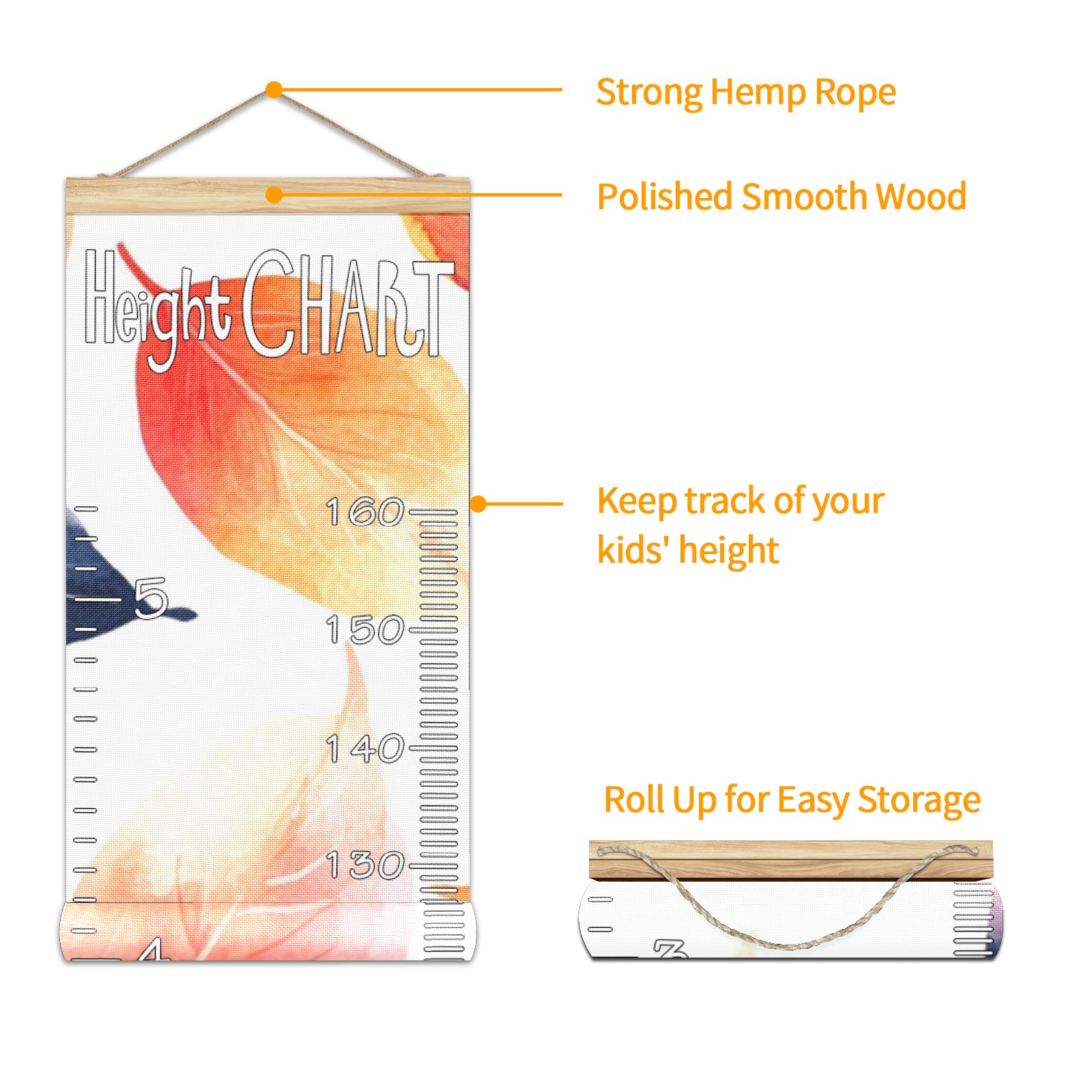 Removable Growth Chart for Kids - Measuring Hanging Height Chart -Meaningful Memories Through Kid Size Chart Measurement Growth Chart Ruler for Wall Leaves4 Home Decor