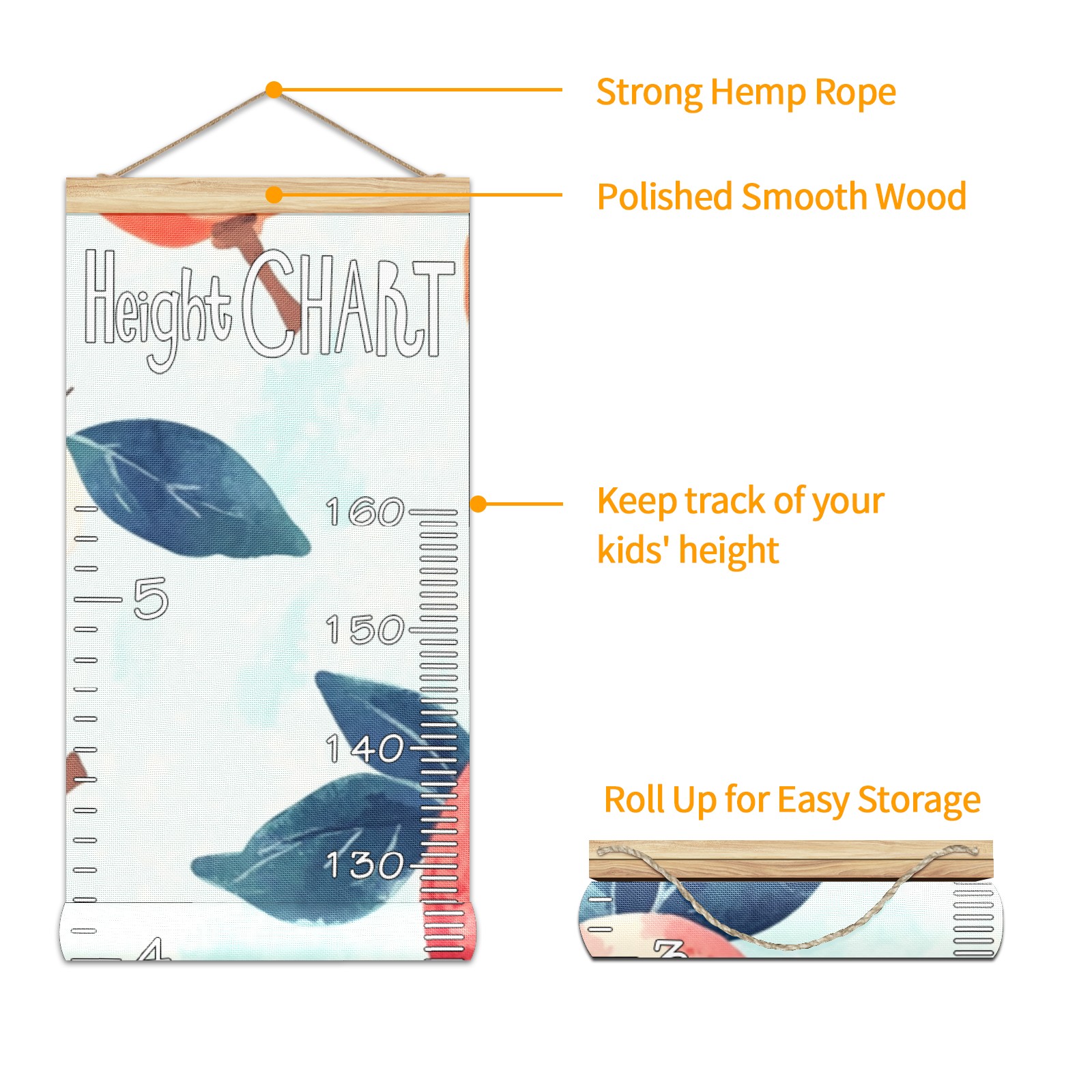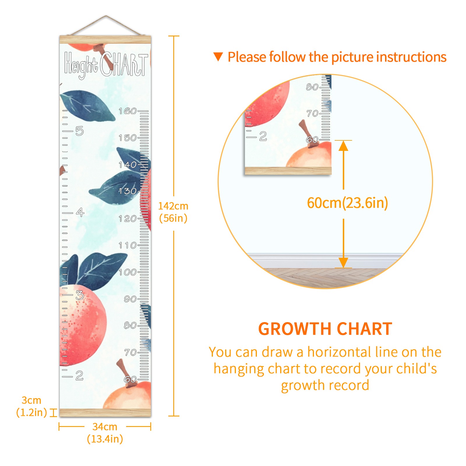 Removable Growth Chart for Kids - Measuring Hanging Height Chart -Meaningful Memories Through Kid Size Chart Measurement Growth Chart Ruler for Wall Fruit Home Decor