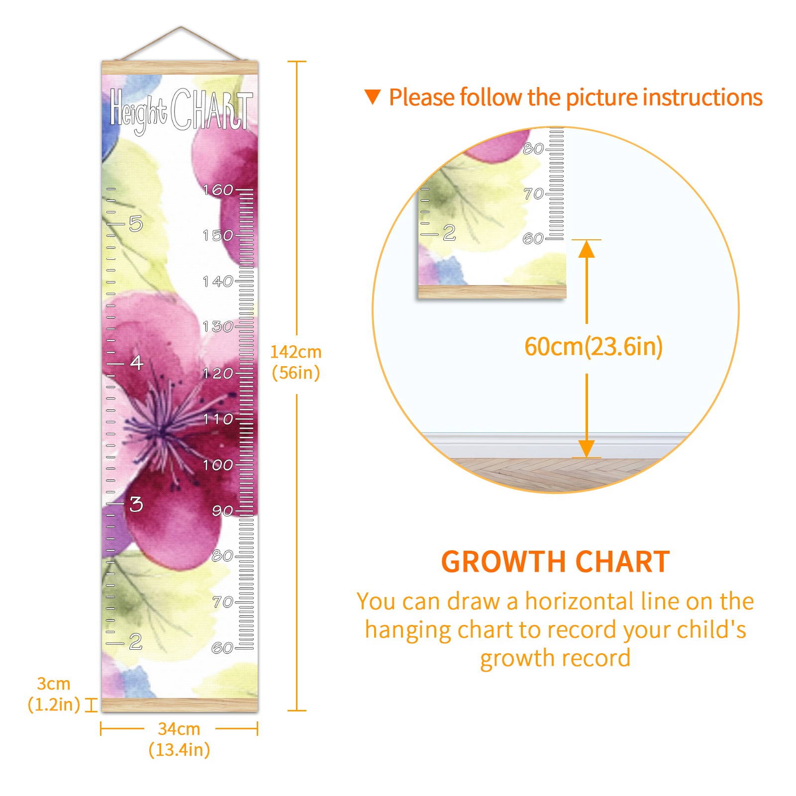• Kids Growth Chart Ruler for Wall Wooden Frame Ruler Growth Chart for Kids Height Measure Chart 13.4x56 in Linen Fabric Hanging for Home Decor! <br> <br> ✨<b>Memory Keeping</b>: Just simply hang the chart on the wall and use a pen to draw a date on it, accompany your children grow up together and record their heights at different ages.<br> <br> ✨<b>Perfect Gift Idea for Kids</b> <br> <br> Environmental and non-toxic for kids use, it must be a perfect gift for baby, kids, girls, and boys.This is a best choice for your friend who have kids or baby as a popular gift.<br> <br> ✨<b>Easy to read </b> <br> <br> Measurement accrate with 2 scales, Centimeters and feet. The letters are big enough, very easy to read.