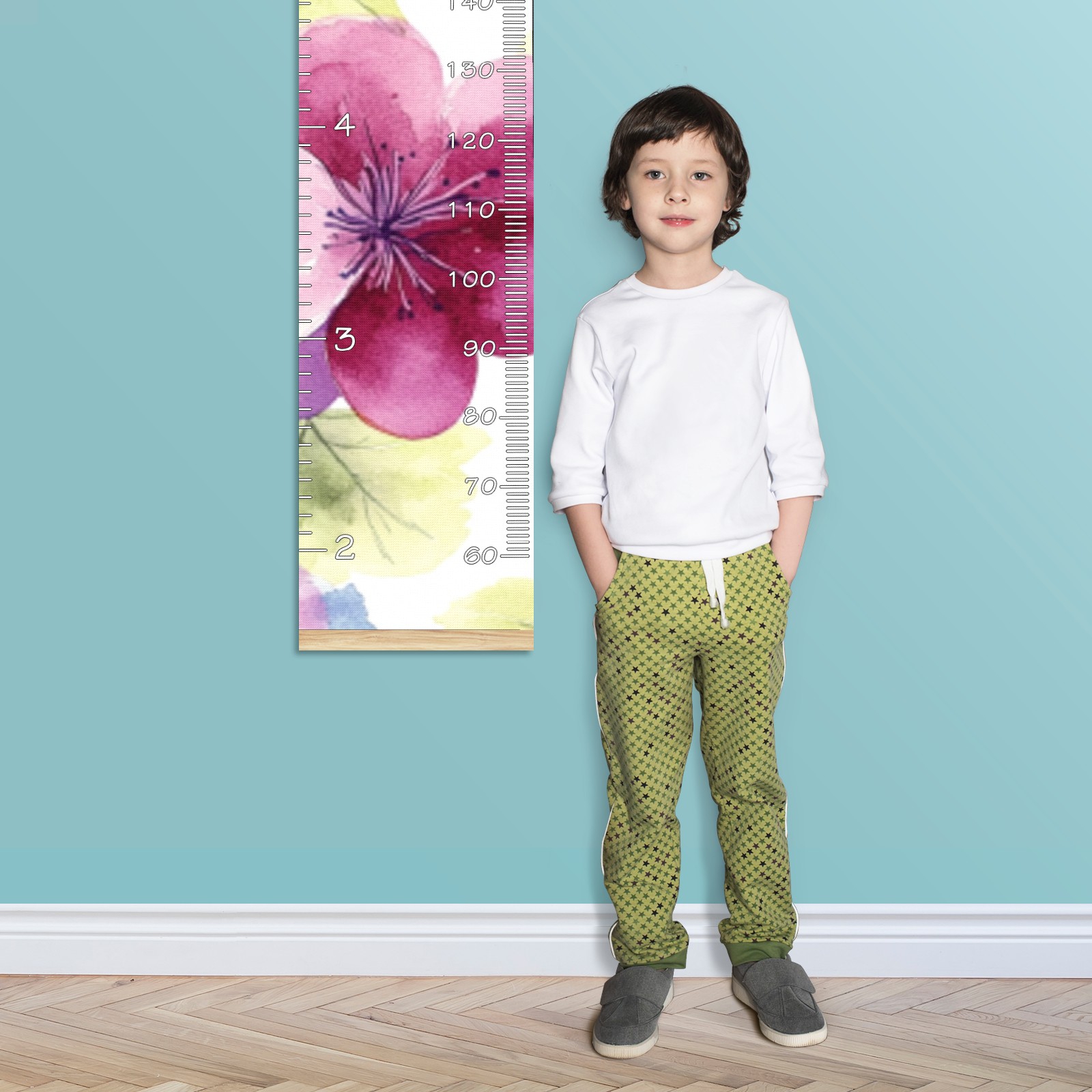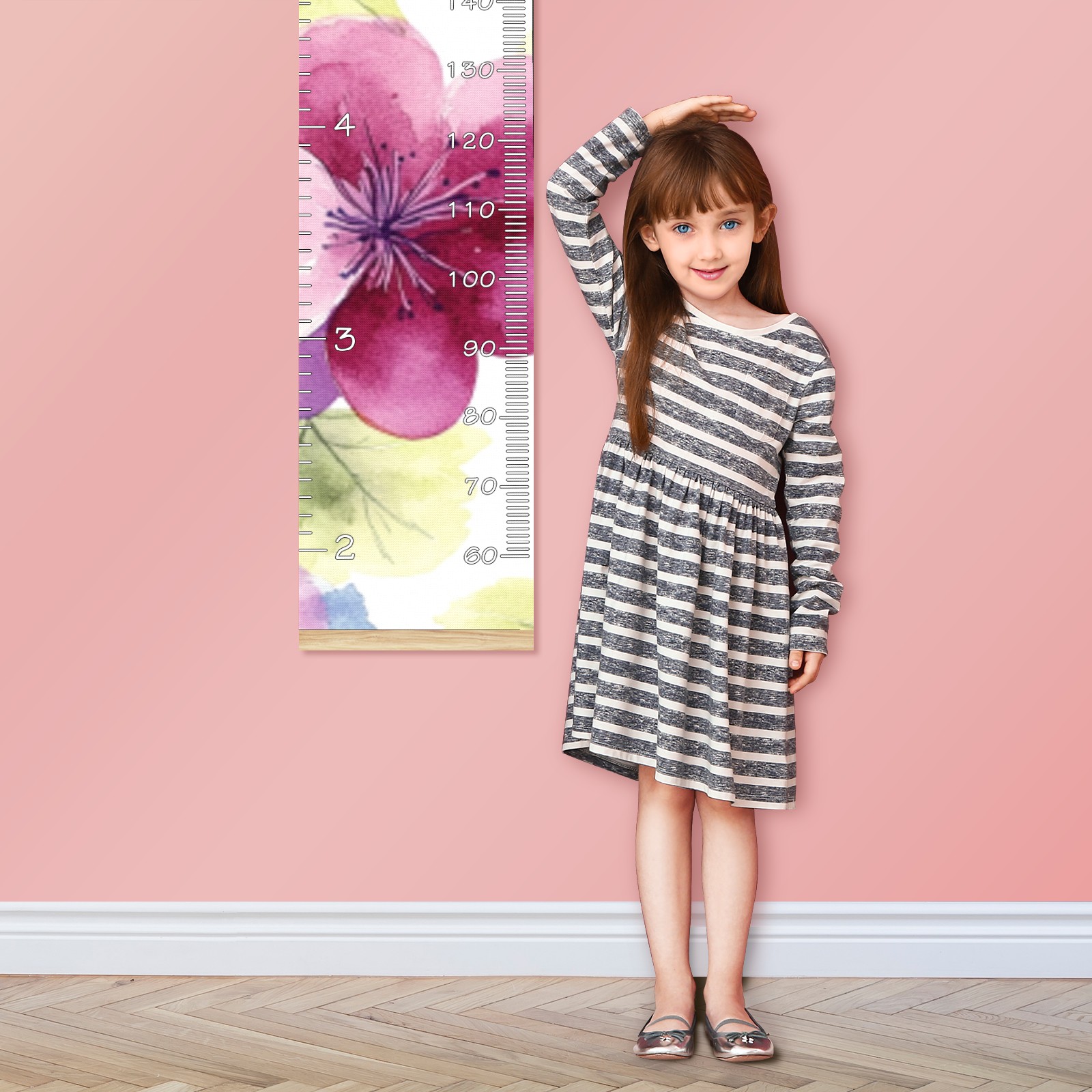 Removable Growth Chart for Kids - Measuring Hanging Height Chart -Meaningful Memories Through Kid Size Chart Measurement Growth Chart Ruler for Wall Blue Flower Home Decor
