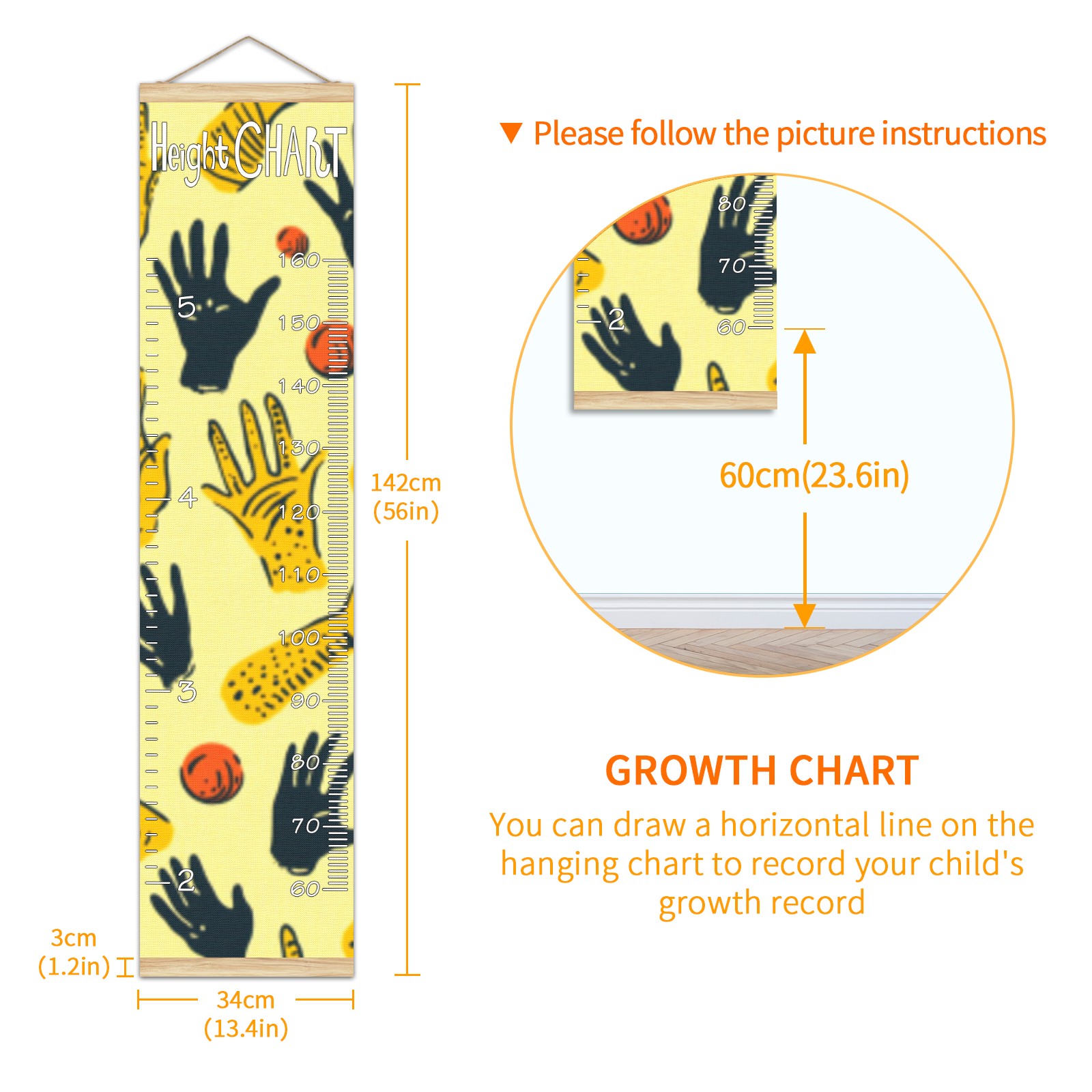 • Kids Growth Chart Ruler for Wall Wooden Frame Ruler Growth Chart for Kids Height Measure Chart 13.4x56 in Linen Fabric Hanging for Home Decor! <br> <br> ✨<b>Memory Keeping</b>: Just simply hang the chart on the wall and use a pen to draw a date on it, accompany your children grow up together and record their heights at different ages.<br> <br> ✨<b>Perfect Gift Idea for Kids</b> <br> <br> Environmental and non-toxic for kids use, it must be a perfect gift for baby, kids, girls, and boys.This is a best choice for your friend who have kids or baby as a popular gift.<br> <br> ✨<b>Easy to read </b> <br> <br> Measurement accrate with 2 scales, Centimeters and feet. The letters are big enough, very easy to read.