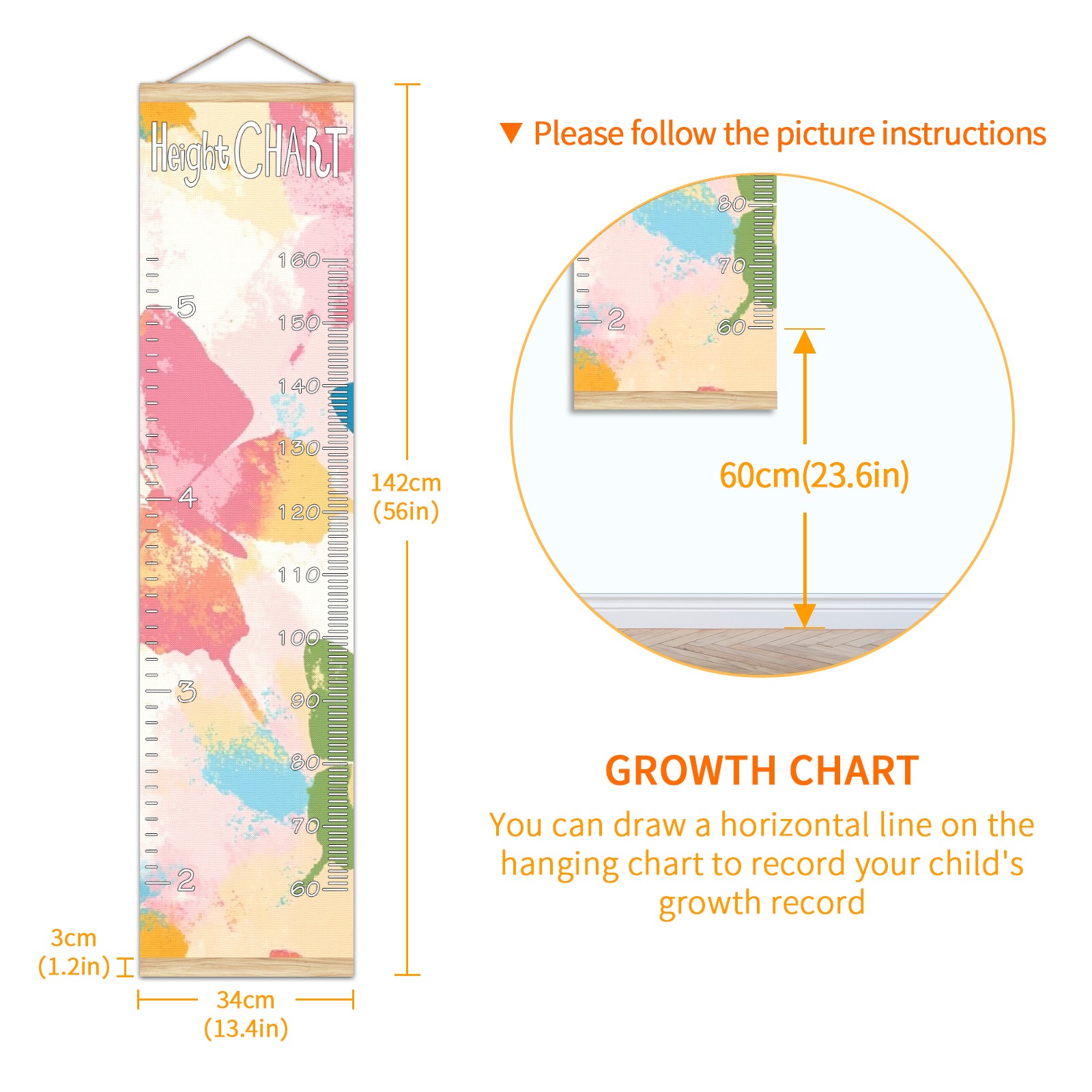 • Kids Growth Chart Ruler for Wall Wooden Frame Ruler Growth Chart for Kids Height Measure Chart 13.4x56 in Linen Fabric Hanging for Home Decor! <br> <br> ✨<b>Memory Keeping</b>: Just simply hang the chart on the wall and use a pen to draw a date on it, accompany your children grow up together and record their heights at different ages.<br> <br> ✨<b>Perfect Gift Idea for Kids</b> <br> <br> Environmental and non-toxic for kids use, it must be a perfect gift for baby, kids, girls, and boys.This is a best choice for your friend who have kids or baby as a popular gift.<br> <br> ✨<b>Easy to read </b> <br> <br> Measurement accrate with 2 scales, Centimeters and feet. The letters are big enough, very easy to read.