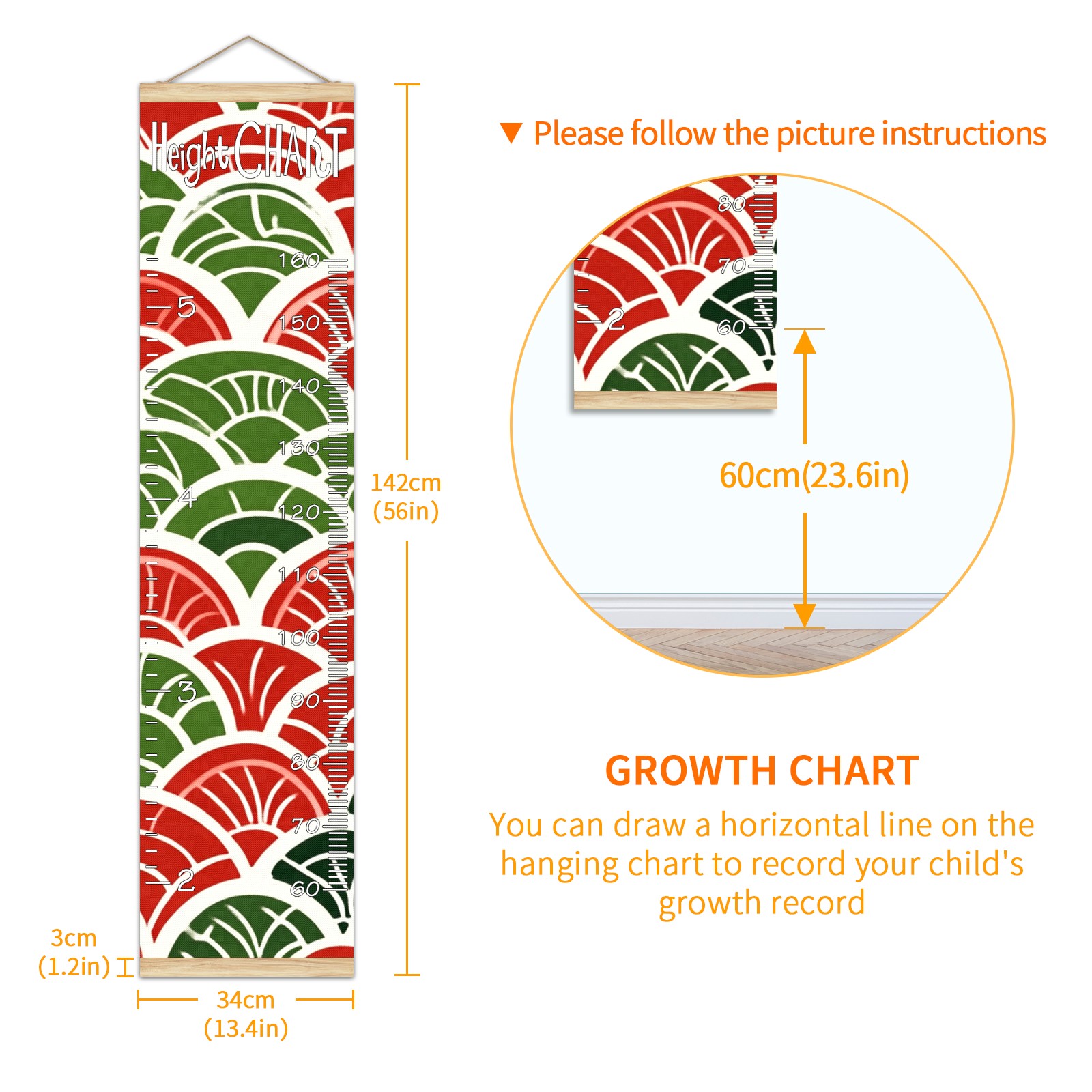 Removable Growth Chart for Kids - Measuring Hanging Height Chart -Meaningful Memories Through Kid Size Chart Measurement Growth Chart Ruler for Wall Red And Green Home Decor