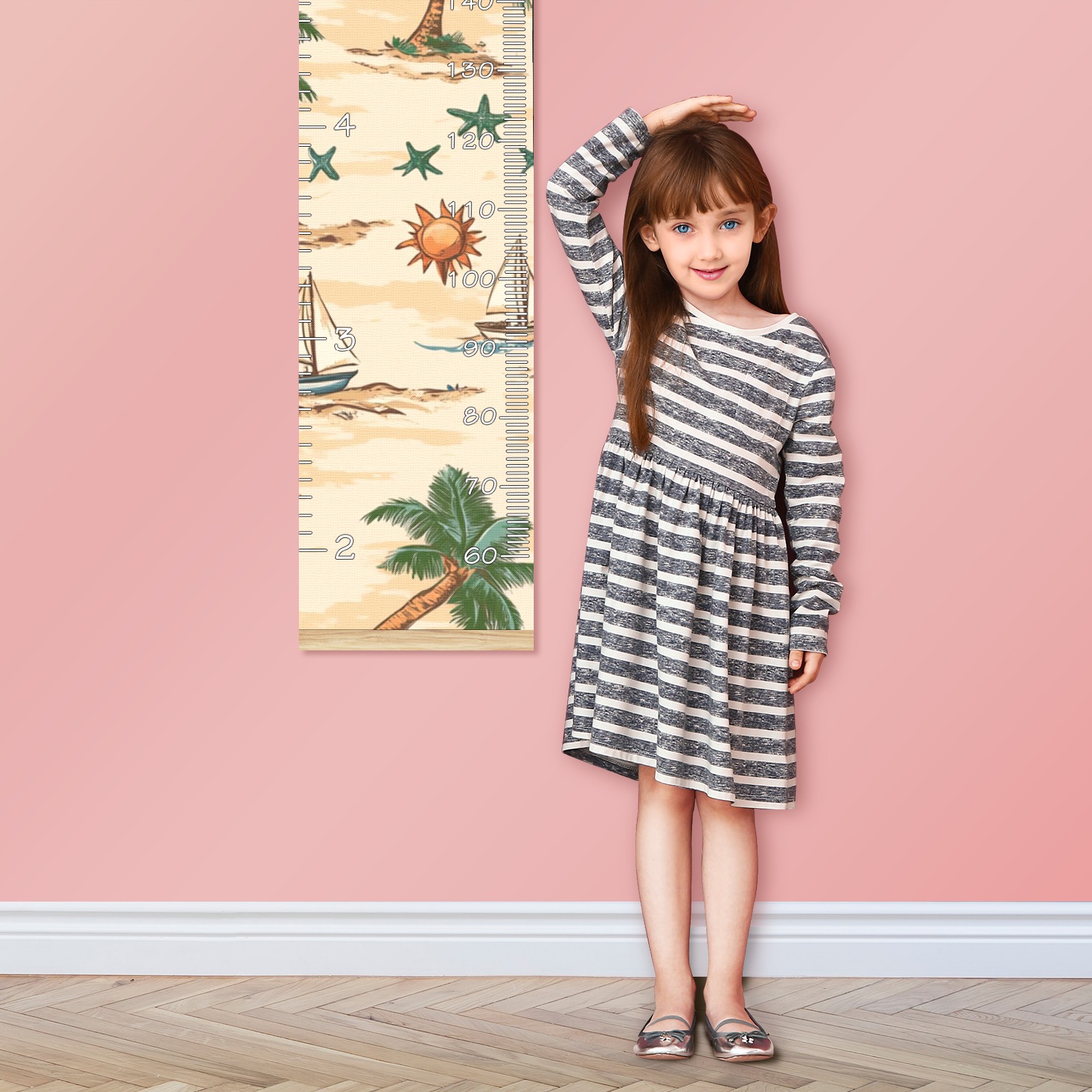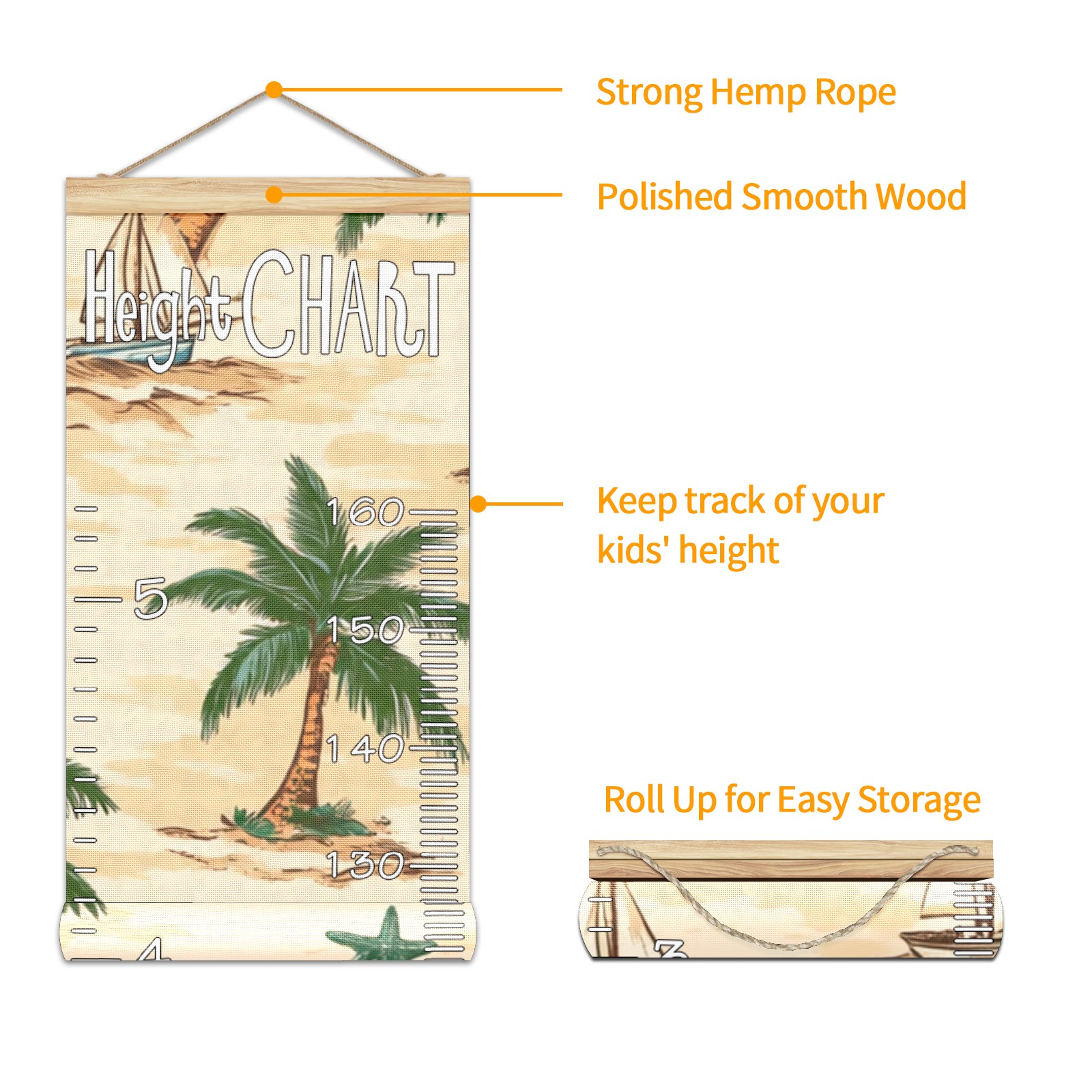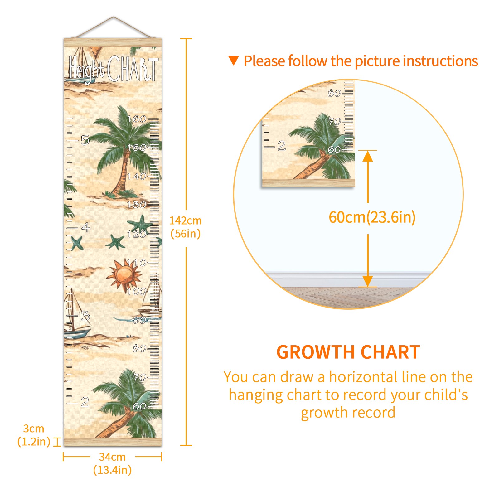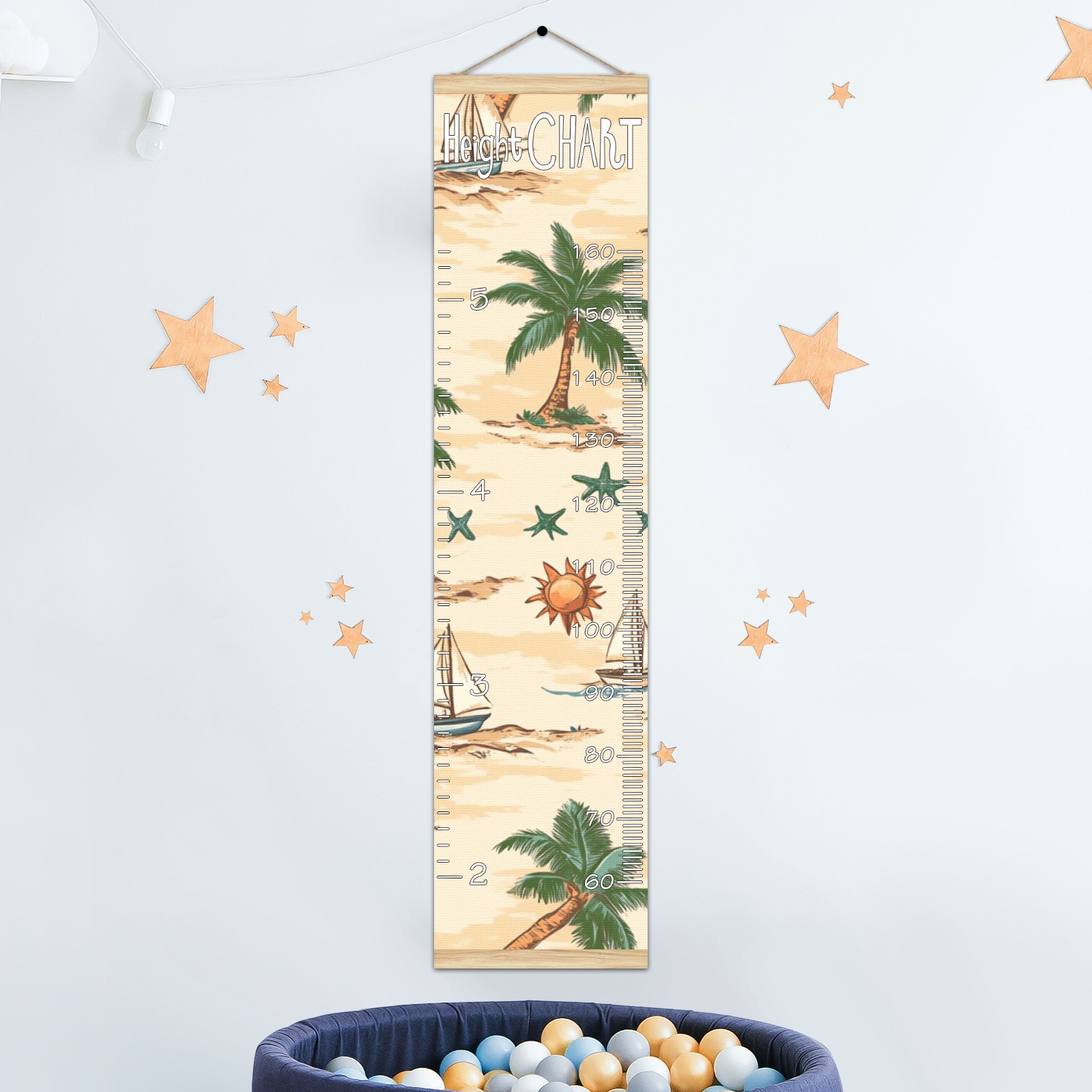 Removable Growth Chart for Kids - Measuring Hanging Height Chart -Meaningful Memories Through Kid Size Chart Measurement Growth Chart Ruler for Wall Palm Trees Suns And Starfish Home Decor