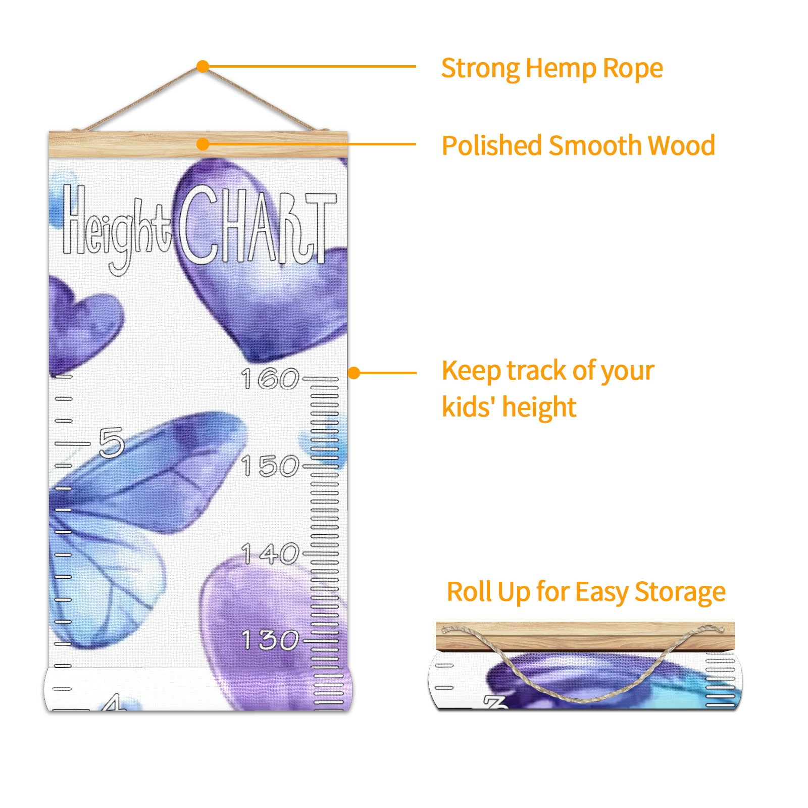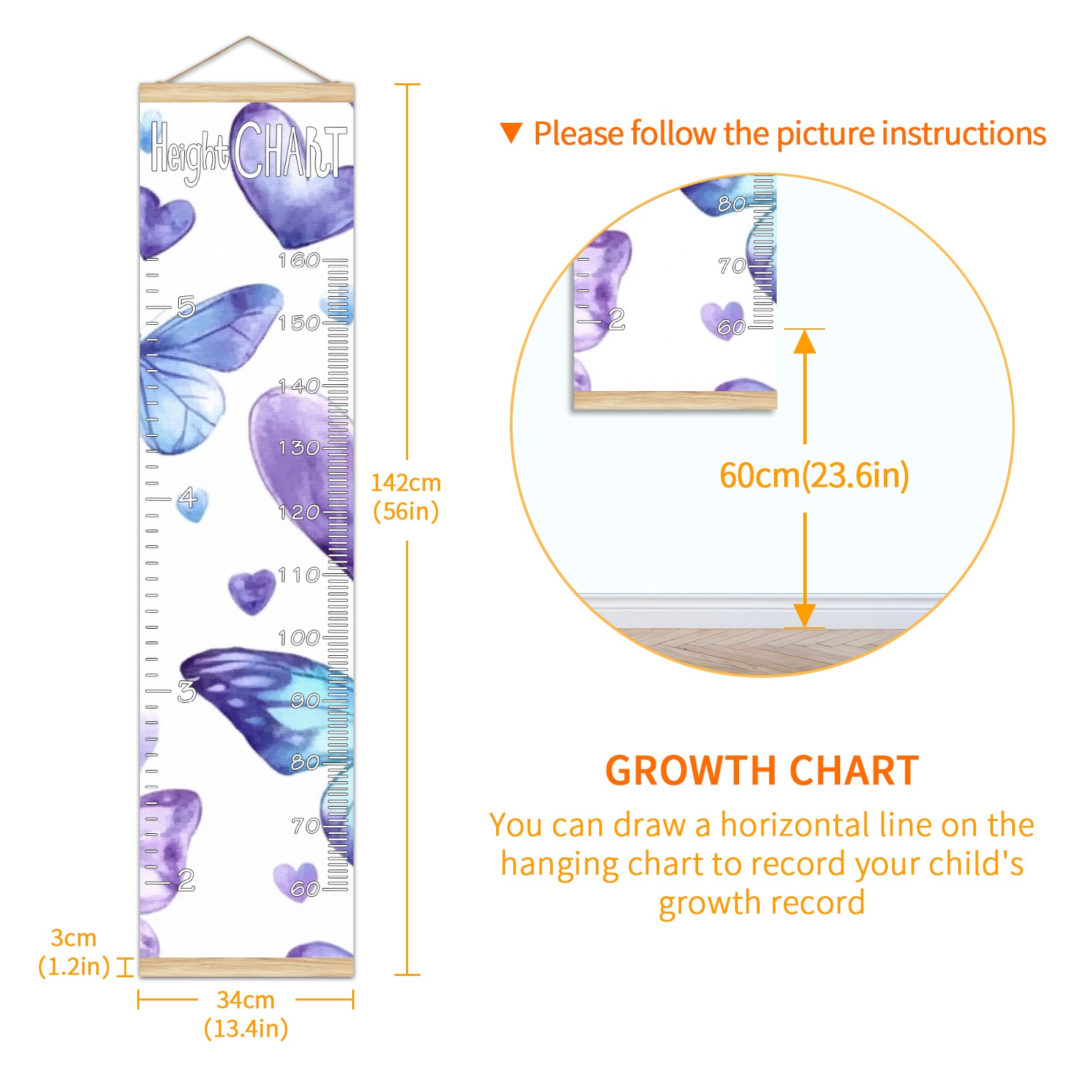 Removable Growth Chart for Kids - Measuring Hanging Height Chart -Meaningful Memories Through Kid Size Chart Measurement Growth Chart Ruler for Wall Watercolor Butterfly Home Decor