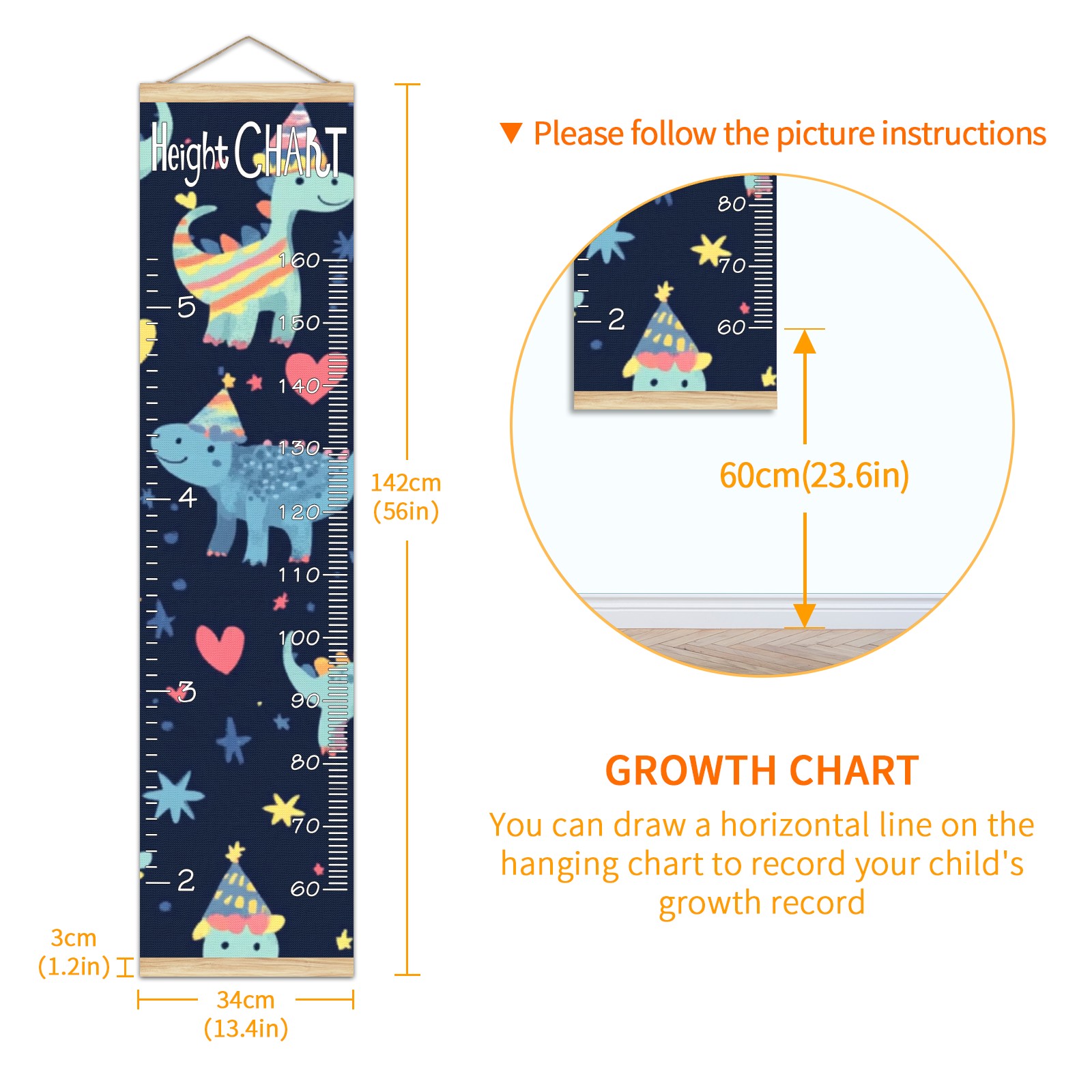 • Kids Growth Chart Ruler for Wall Wooden Frame Ruler Growth Chart for Kids Height Measure Chart 13.4x56 in Linen Fabric Hanging for Home Decor! <br> <br> ✨<b>Memory Keeping</b>: Just simply hang the chart on the wall and use a pen to draw a date on it, accompany your children grow up together and record their heights at different ages.<br> <br> ✨<b>Perfect Gift Idea for Kids</b> <br> <br> Environmental and non-toxic for kids use, it must be a perfect gift for baby, kids, girls, and boys.This is a best choice for your friend who have kids or baby as a popular gift.<br> <br> ✨<b>Easy to read </b> <br> <br> Measurement accrate with 2 scales, Centimeters and feet. The letters are big enough, very easy to read.