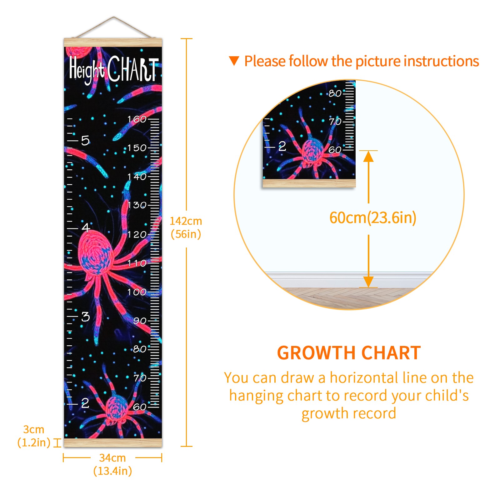 Removable Growth Chart for Kids - Measuring Hanging Height Chart -Meaningful Memories Through Kid Size Chart Measurement Growth Chart Ruler for Wall Neon Red And Blue Spider Home Decor