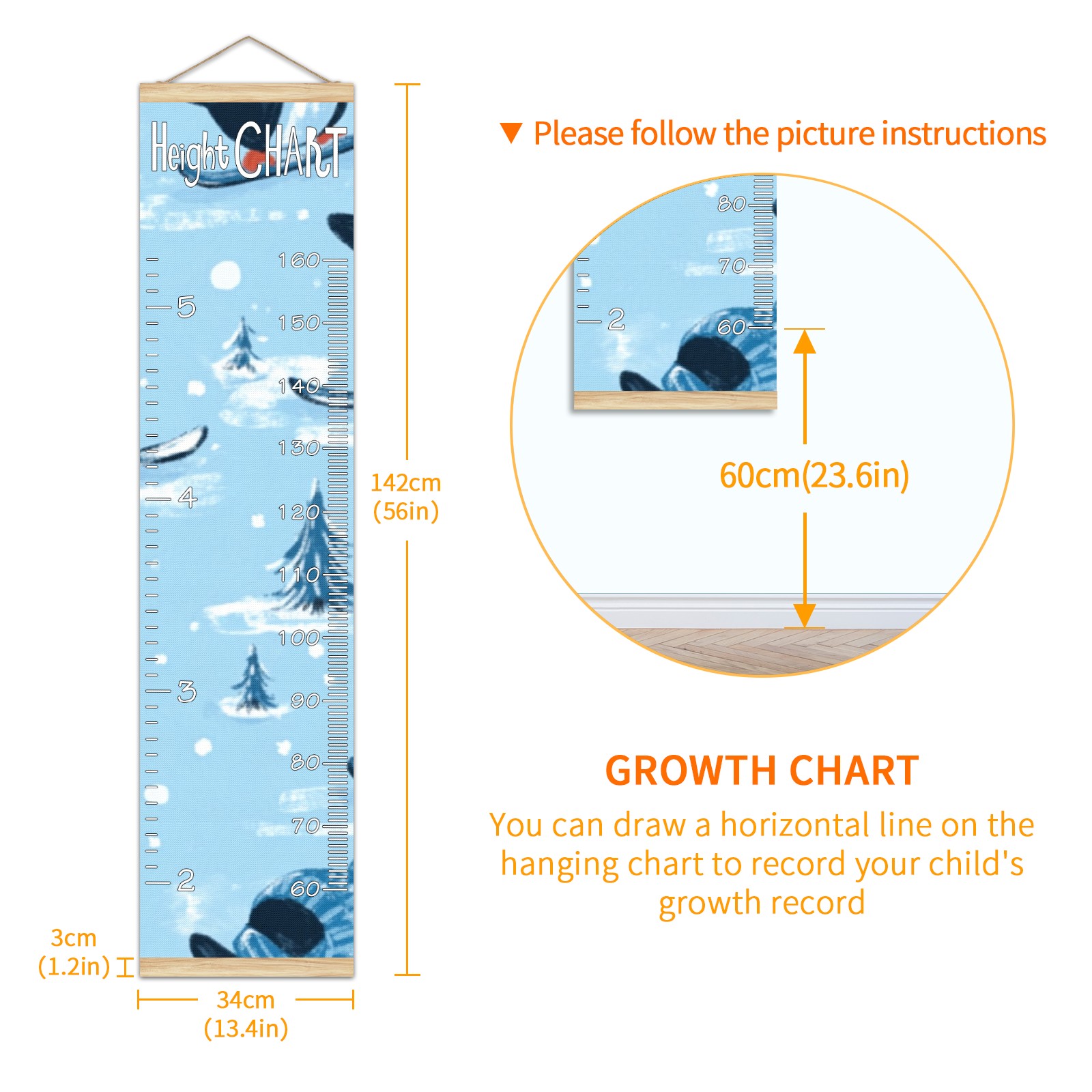 Removable Growth Chart for Kids - Measuring Hanging Height Chart -Meaningful Memories Through Kid Size Chart Measurement Growth Chart Ruler for Wall Penguins Home Decor