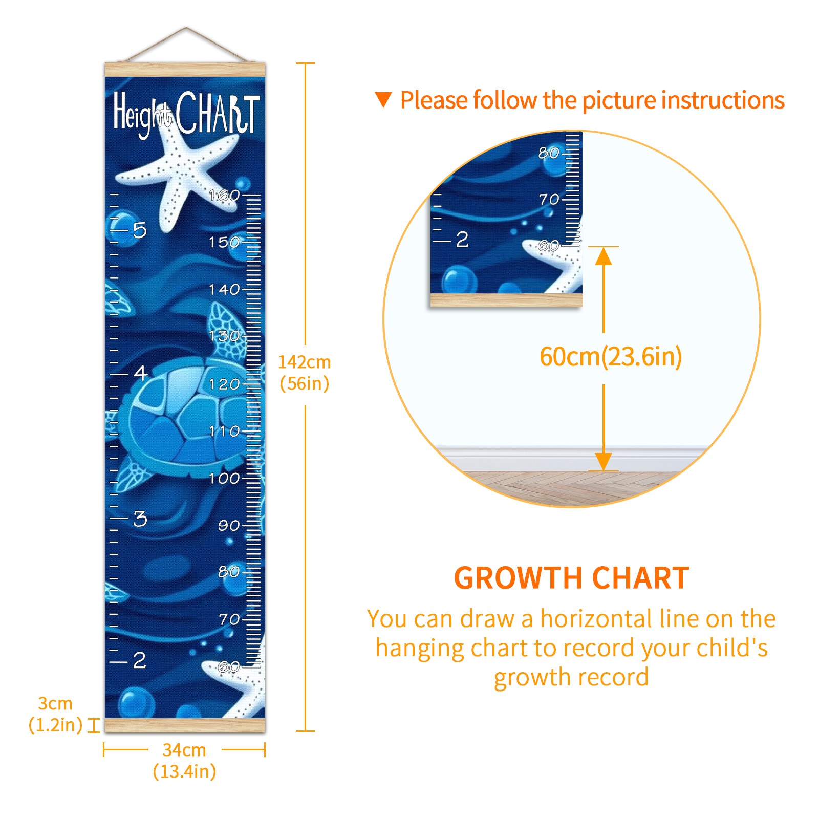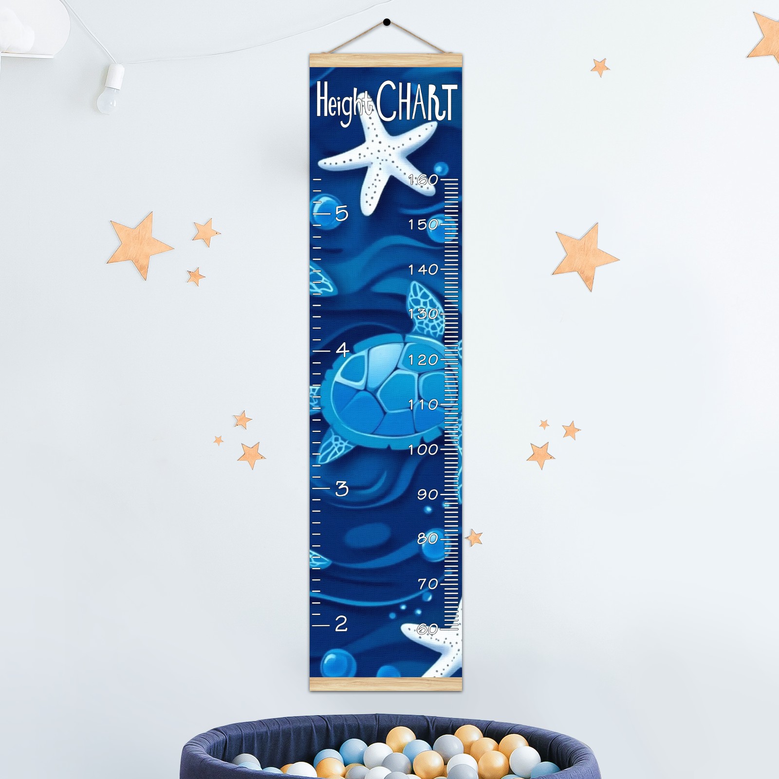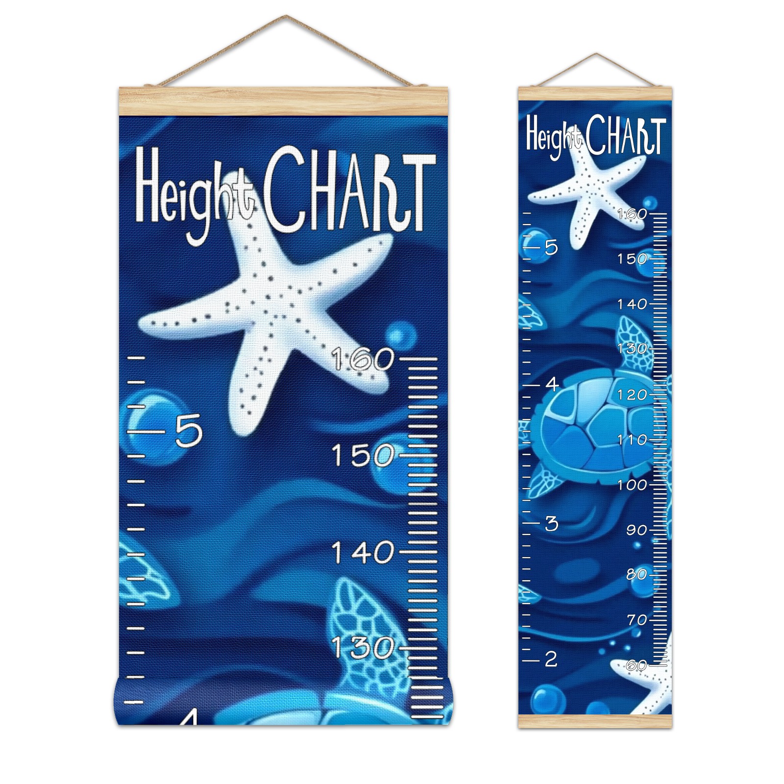 Removable Growth Chart for Kids - Measuring Hanging Height Chart -Meaningful Memories Through Kid Size Chart Measurement Growth Chart Ruler for Wall Blue Sea Turtles And White Starfish Home Decor