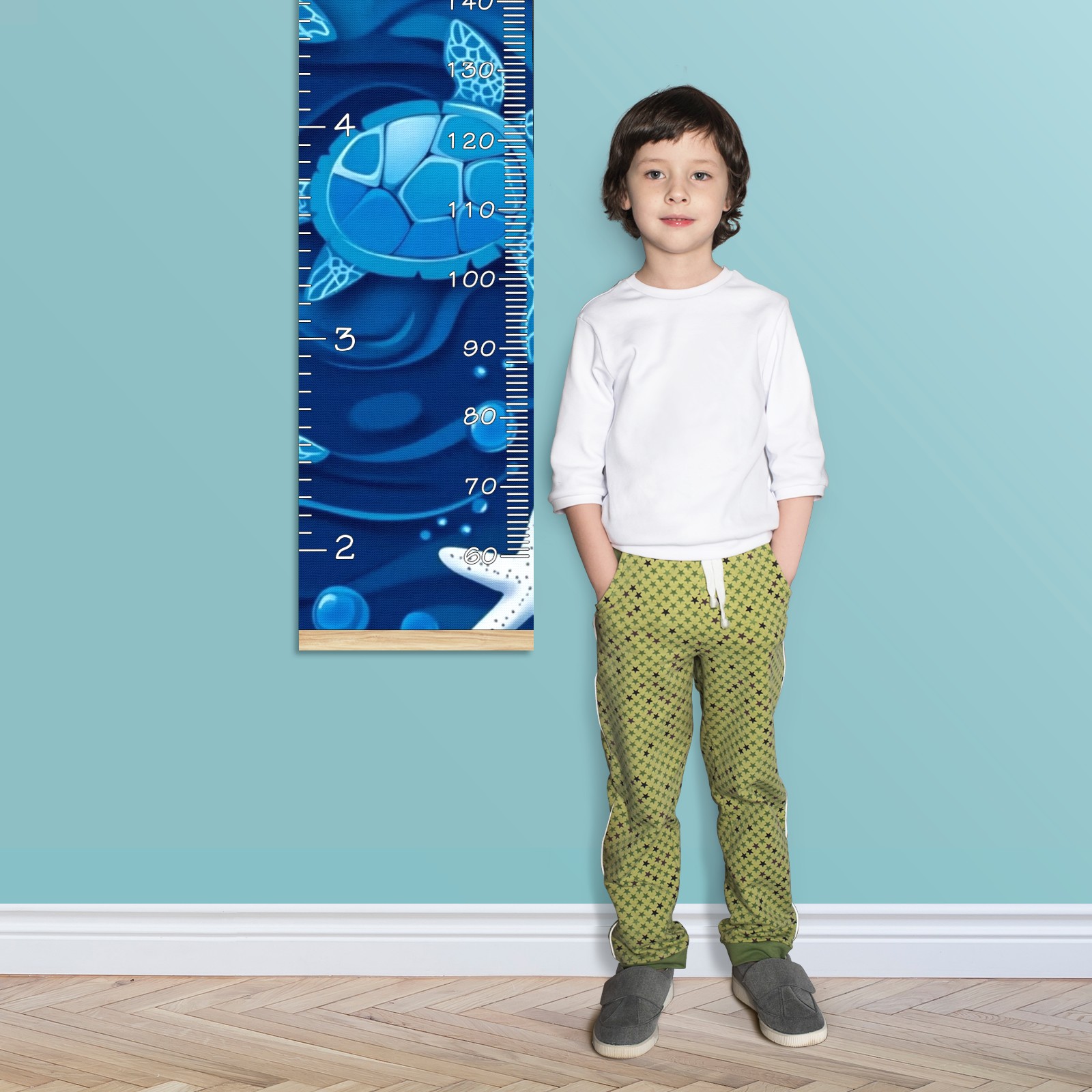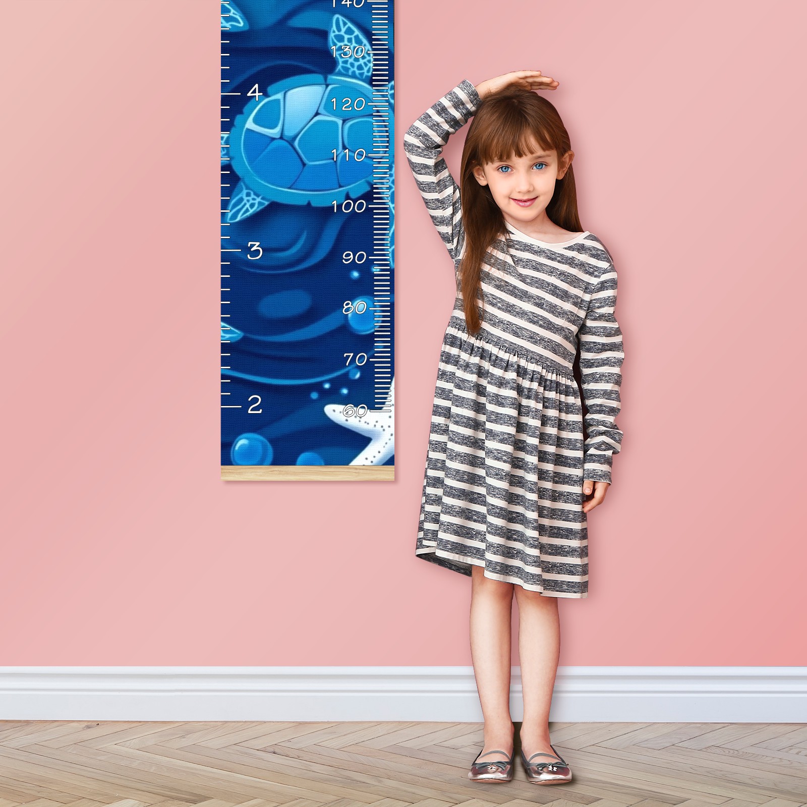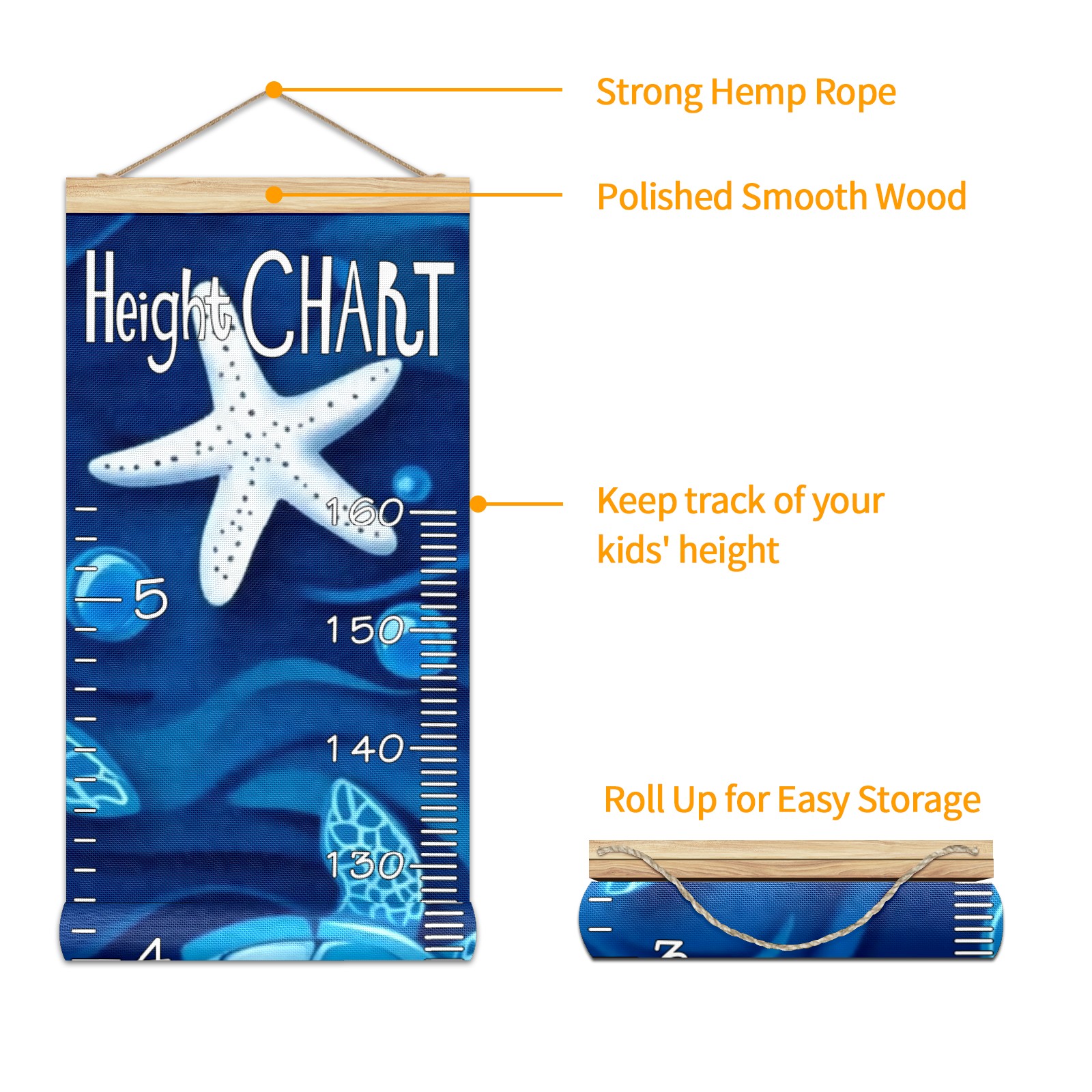 Removable Growth Chart for Kids - Measuring Hanging Height Chart -Meaningful Memories Through Kid Size Chart Measurement Growth Chart Ruler for Wall Blue Sea Turtles And White Starfish Home Decor
