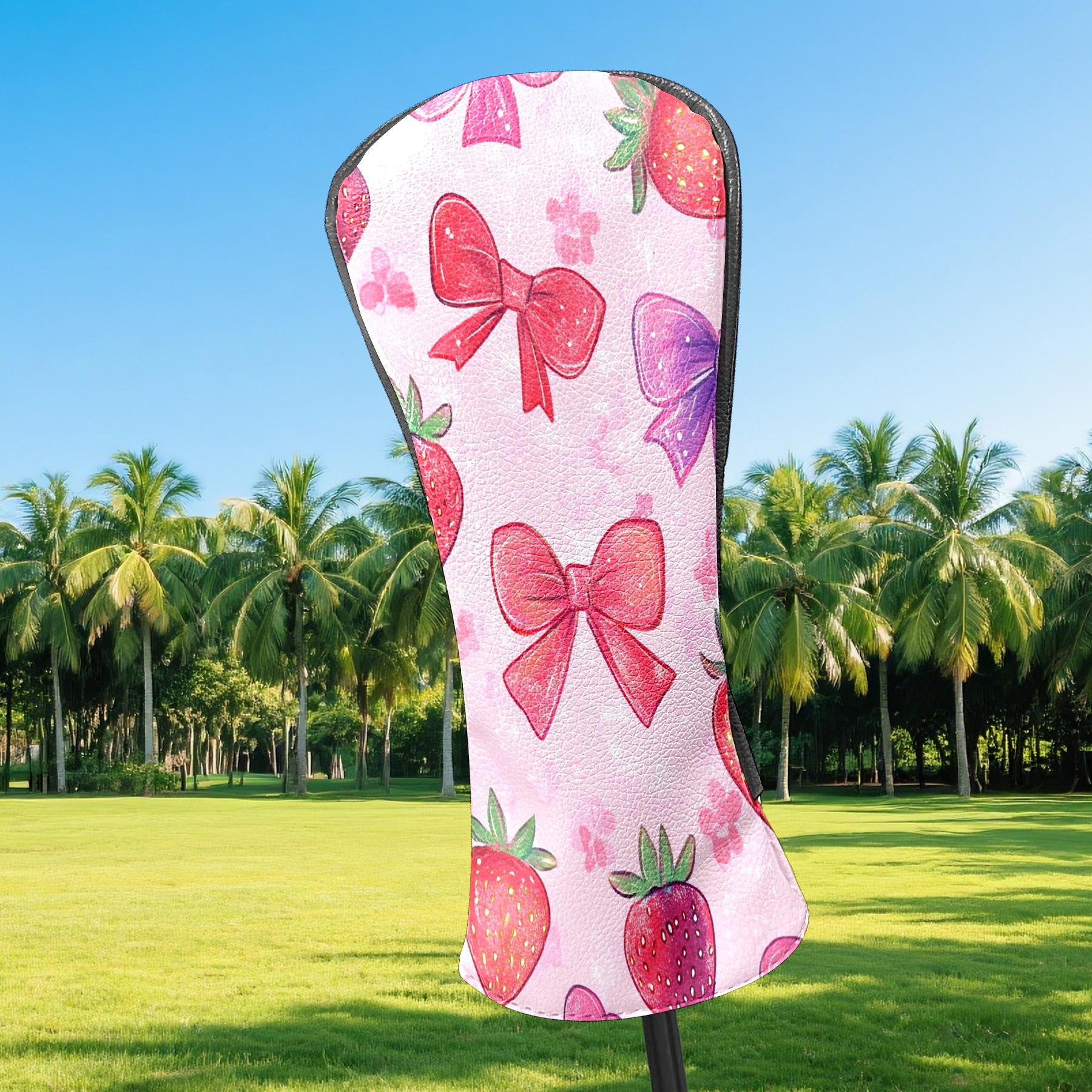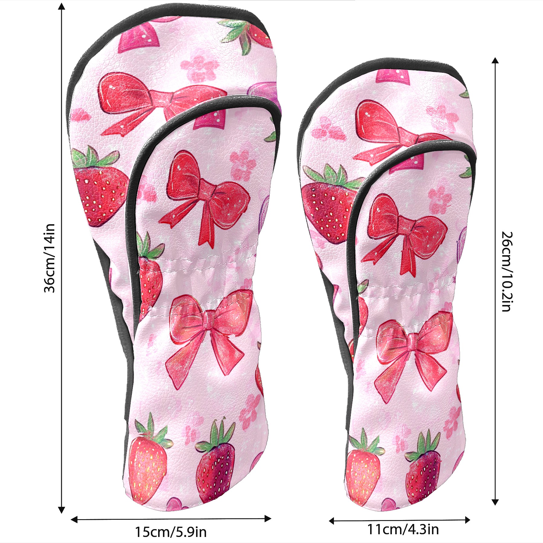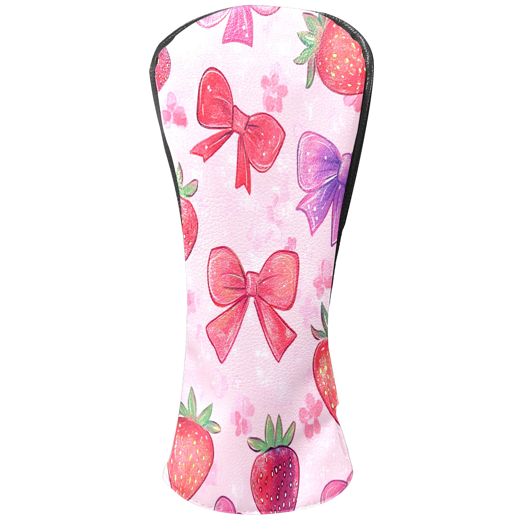 Golf Club Head Cover Premium Leather Driver Headcover, Golf Head Covers for Woods and Driver Waterproof Golf Headcovers with Anti-Scratch Lining for Men Women (Pink Red Strawberry)