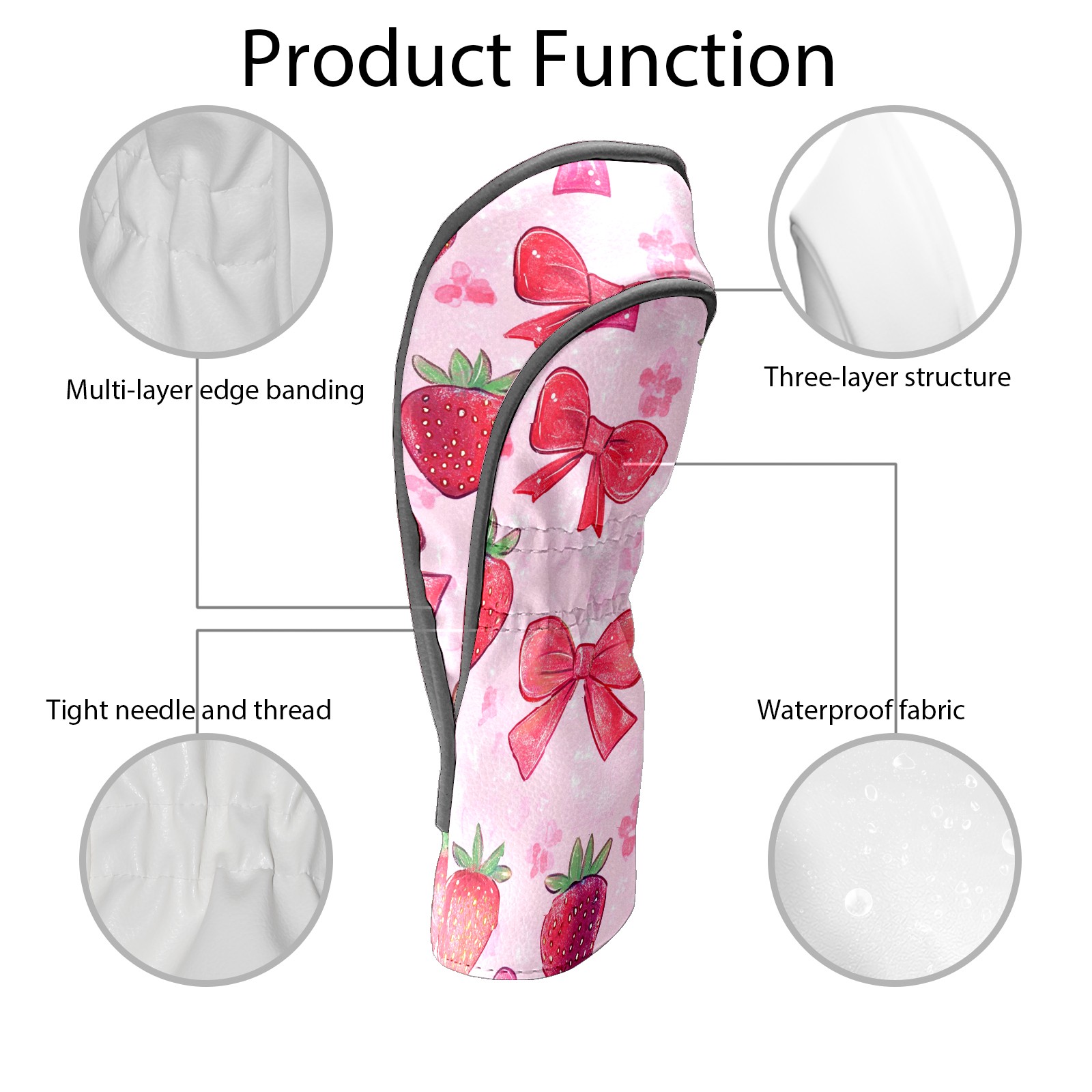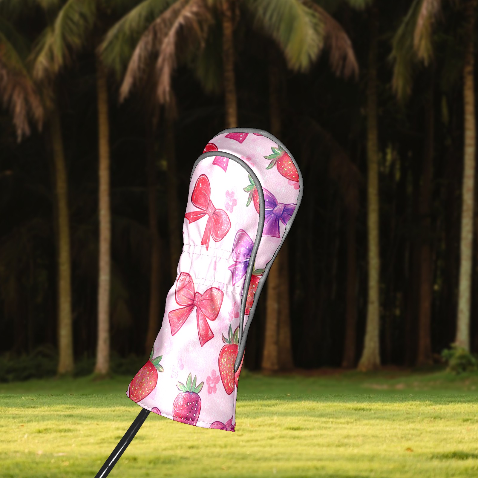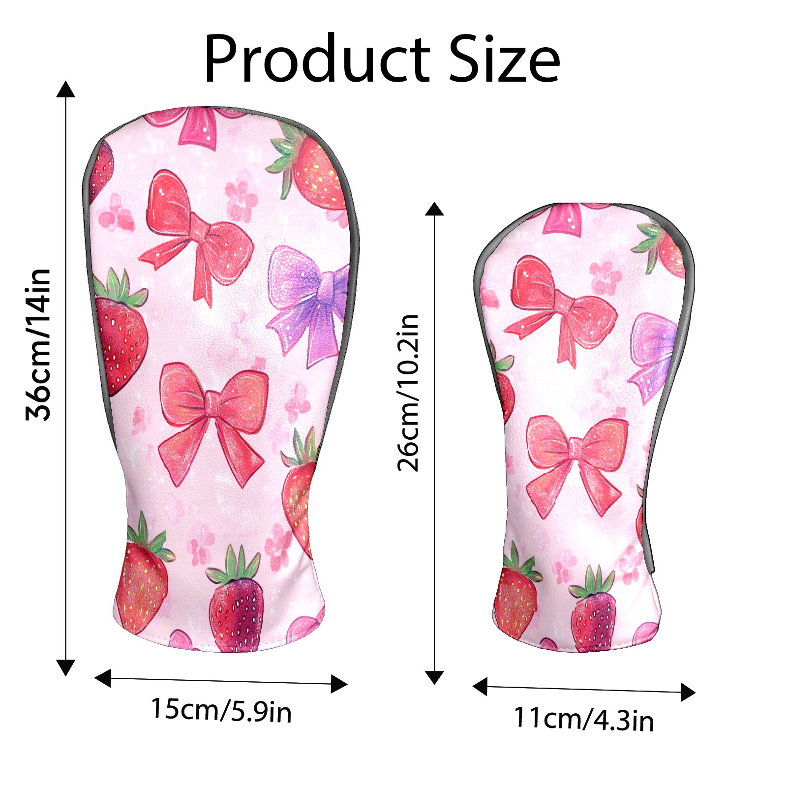Golf Club Head Cover Premium Leather Driver Headcover, Golf Head Covers for Woods and Driver Waterproof Golf Headcovers with Anti-Scratch Lining for Men Women (Pink Red Strawberry)