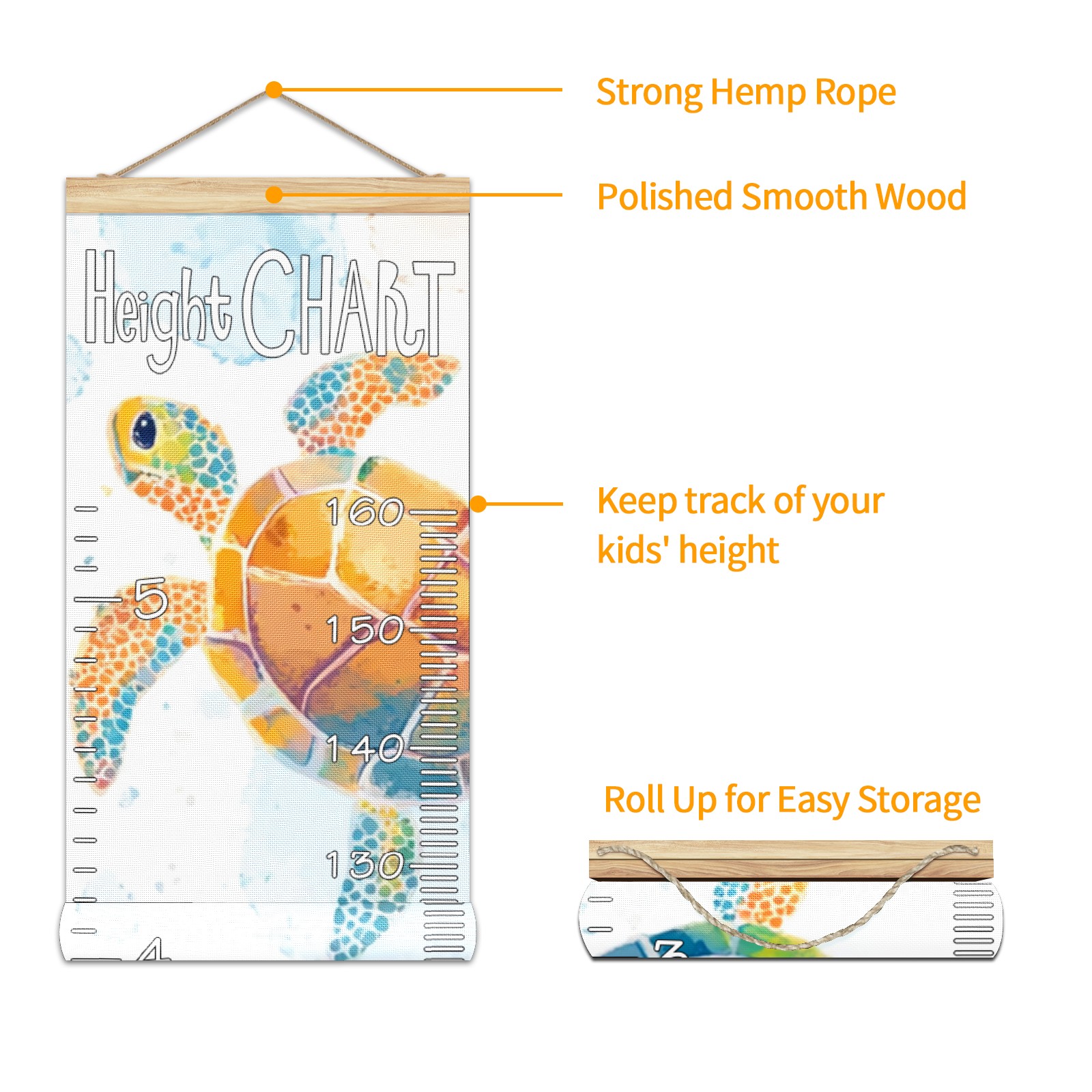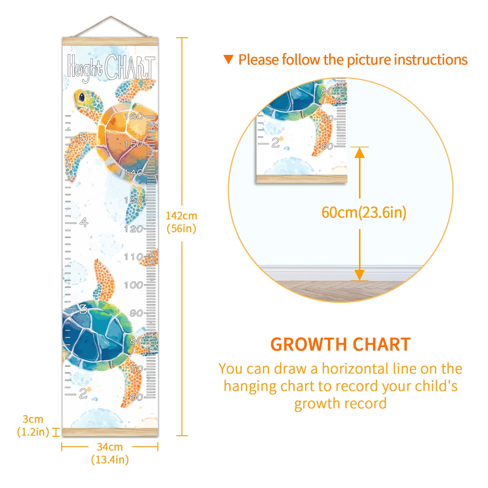 Removable Growth Chart for Kids - Measuring Hanging Height Chart -Meaningful Memories Through Kid Size Chart Measurement Growth Chart Ruler for Wall Colorful Sea Turtles Home Decor