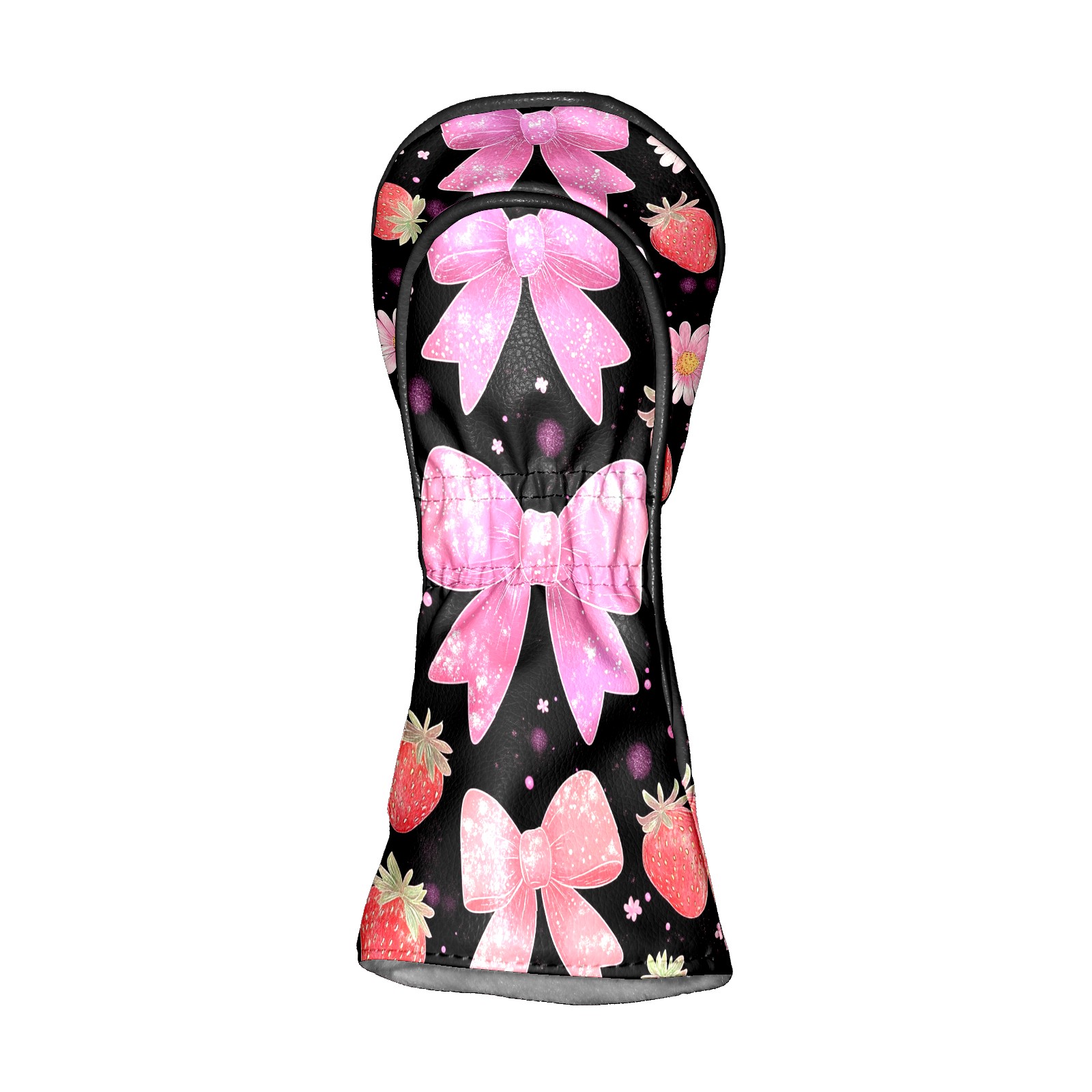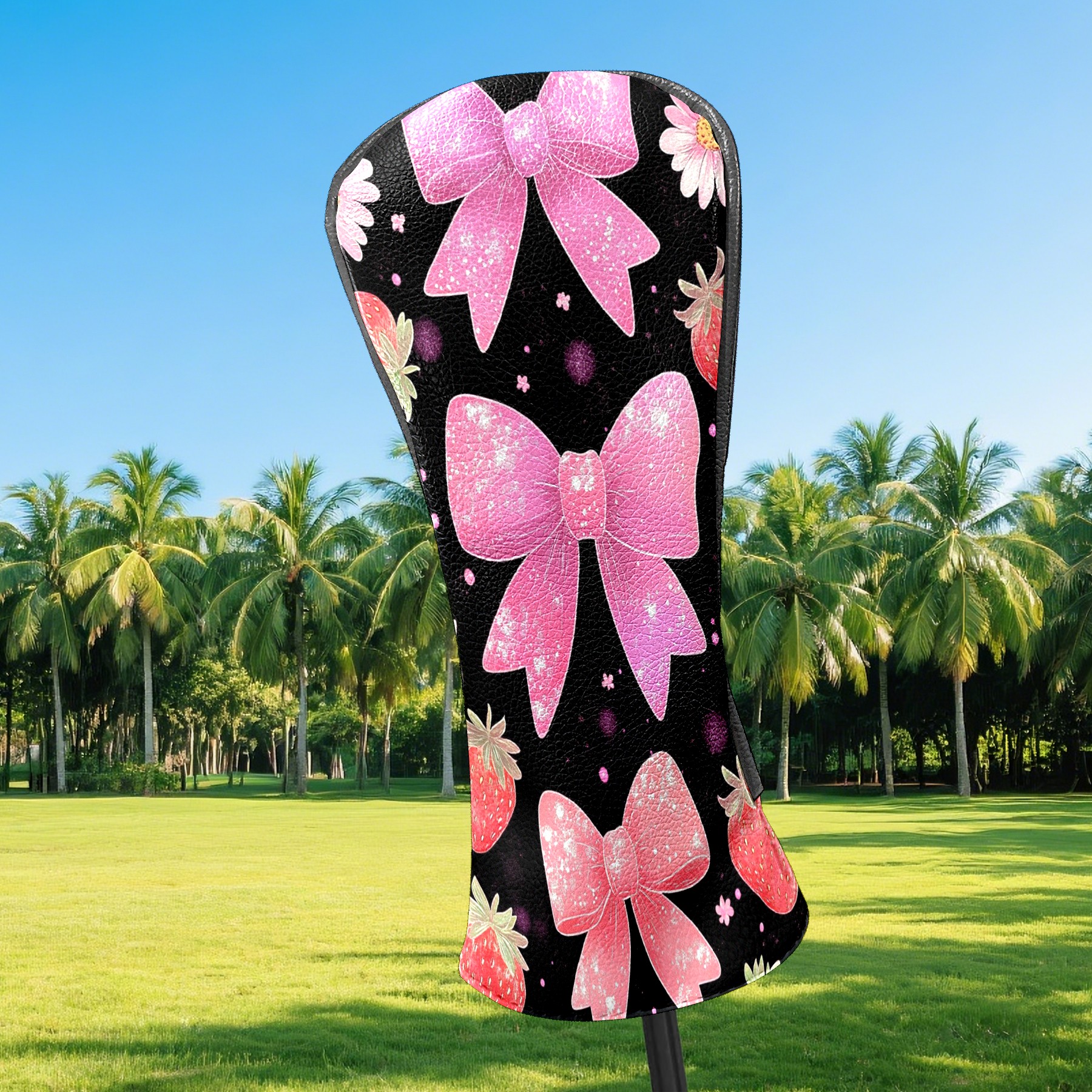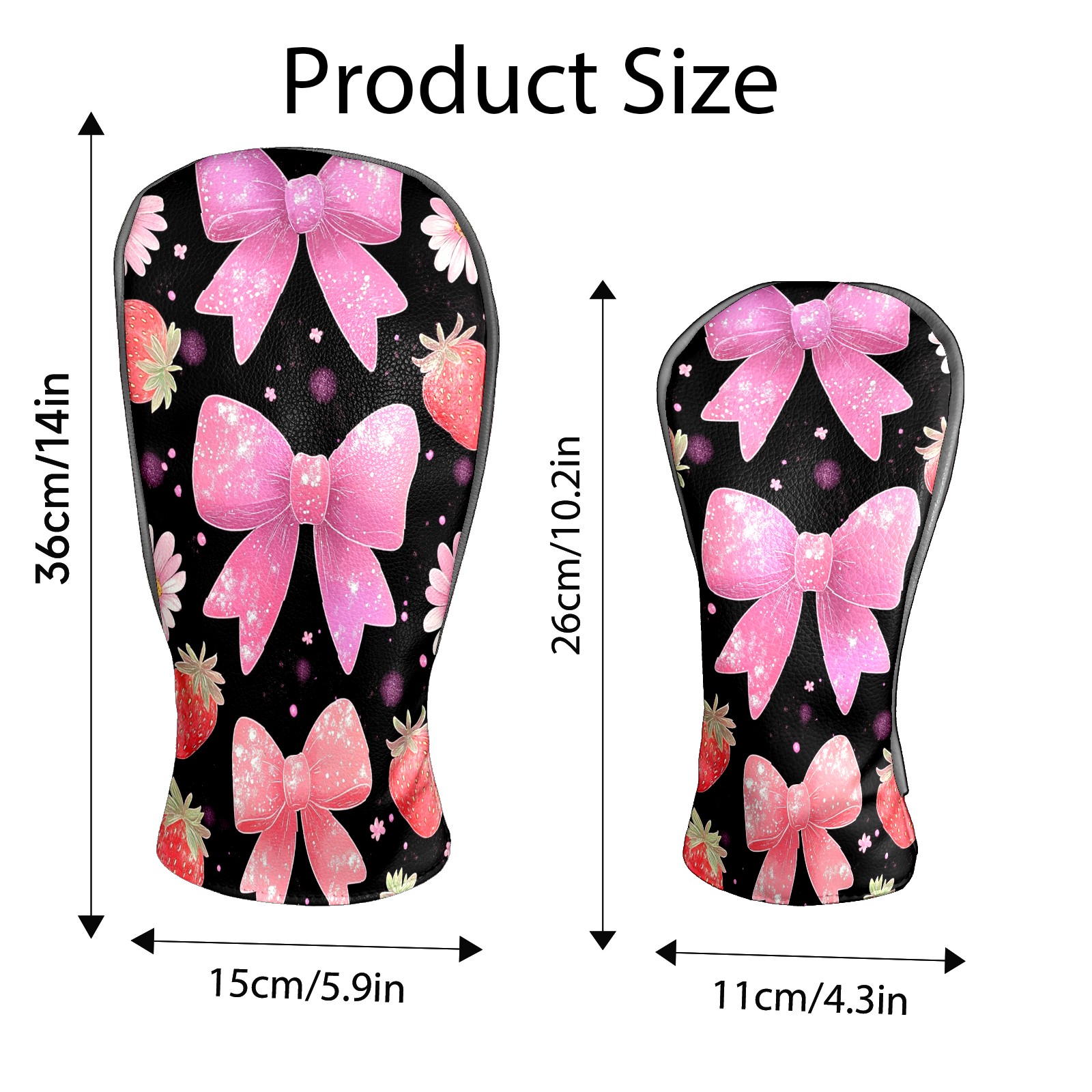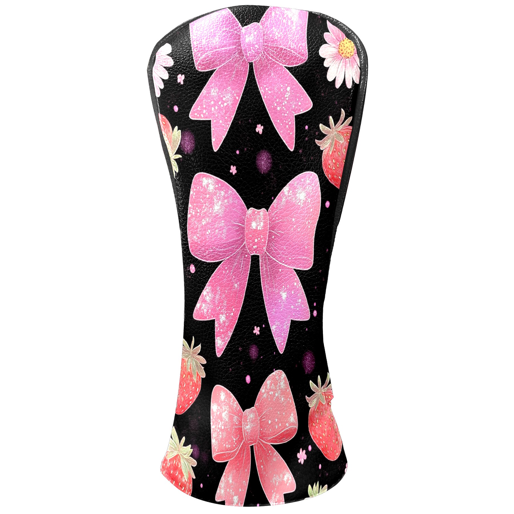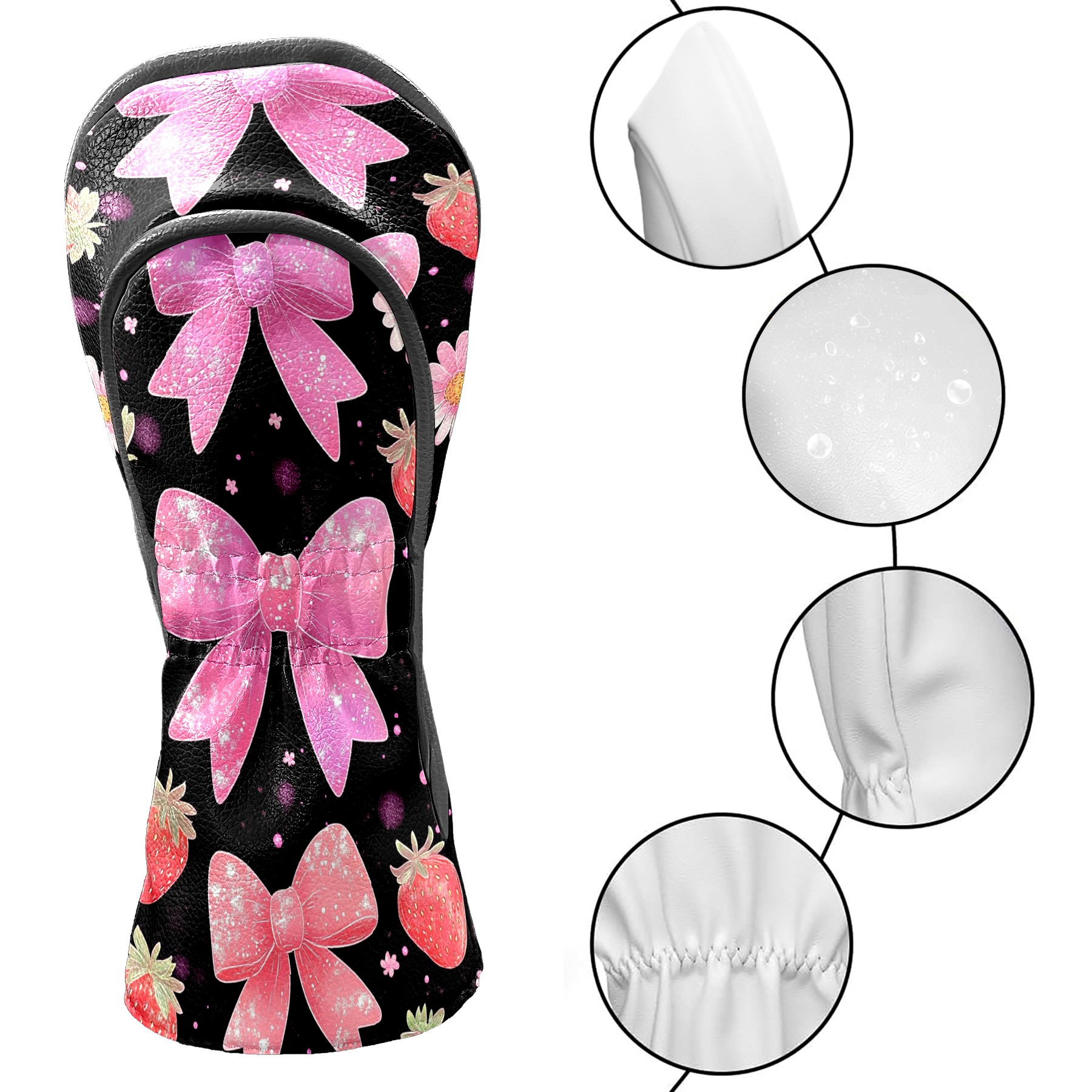 Golf Club Head Cover Premium Leather Driver Headcover, Golf Head Covers for Woods and Driver Waterproof Golf Headcovers with Anti-Scratch Lining for Men Women (Pink Bows Strawberries)