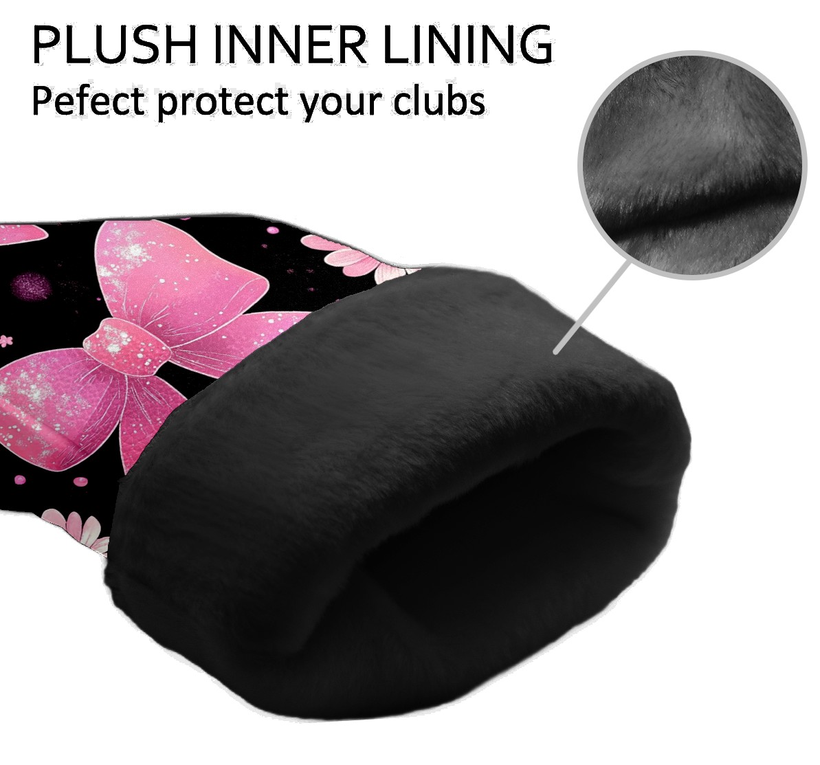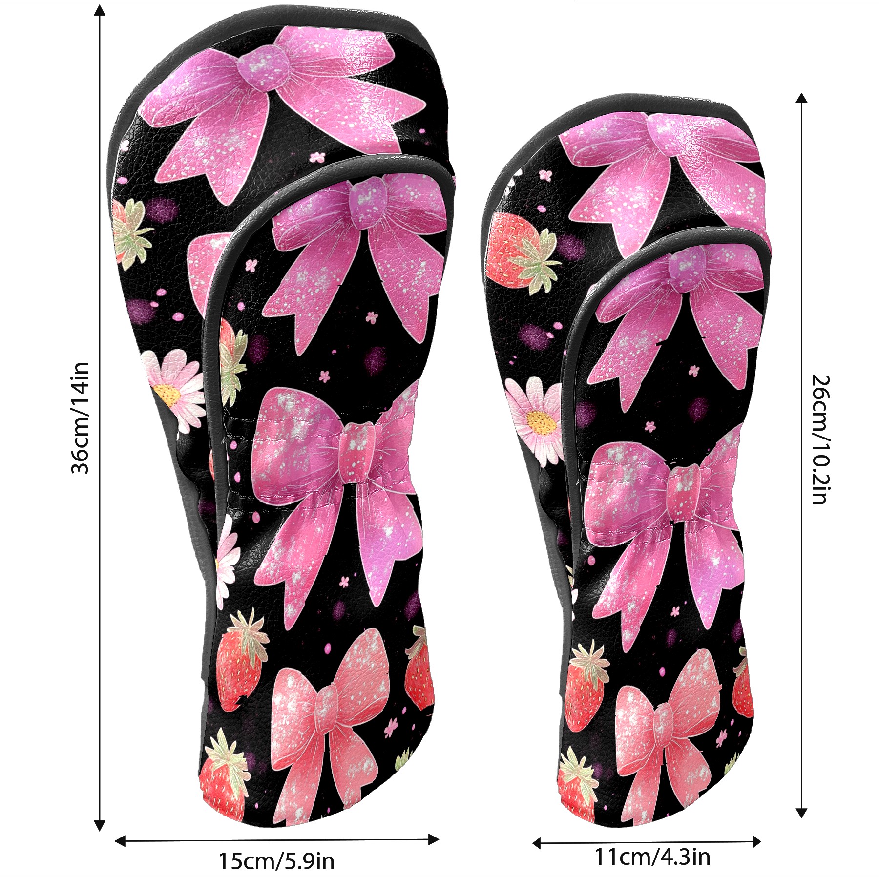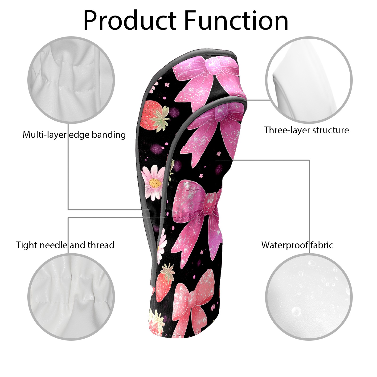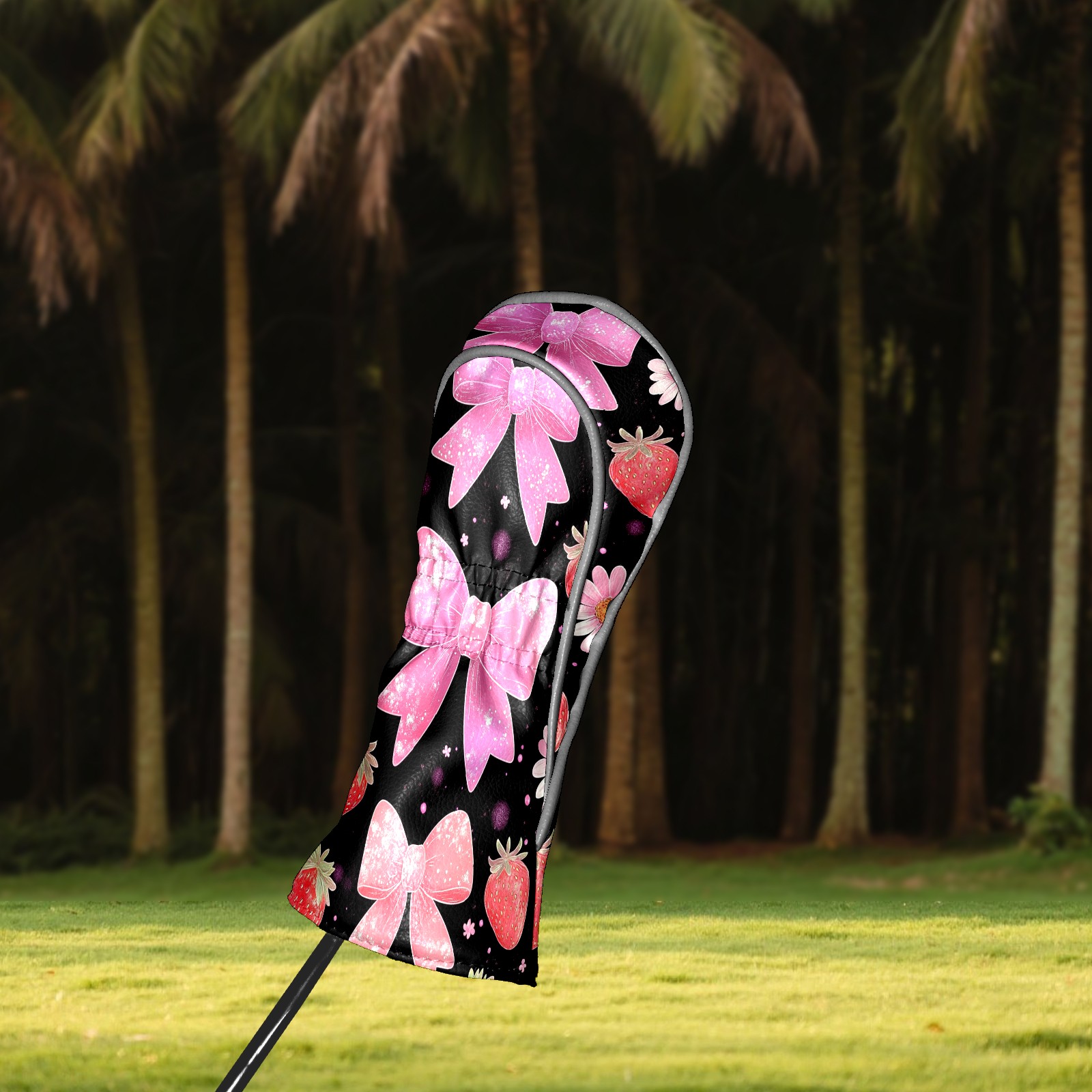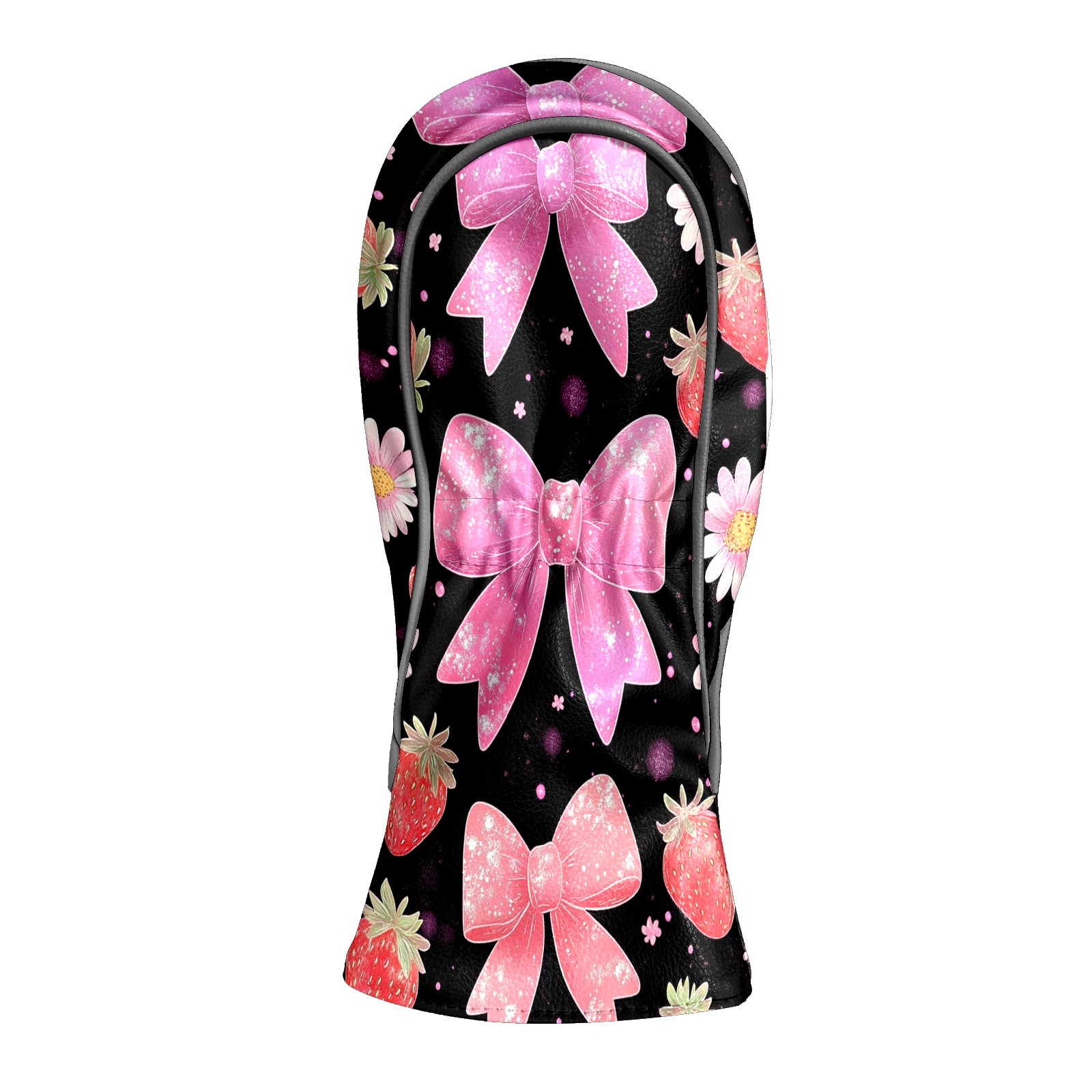 Golf Club Head Cover Premium Leather Driver Headcover, Golf Head Covers for Woods and Driver Waterproof Golf Headcovers with Anti-Scratch Lining for Men Women (Pink Bows Strawberries)