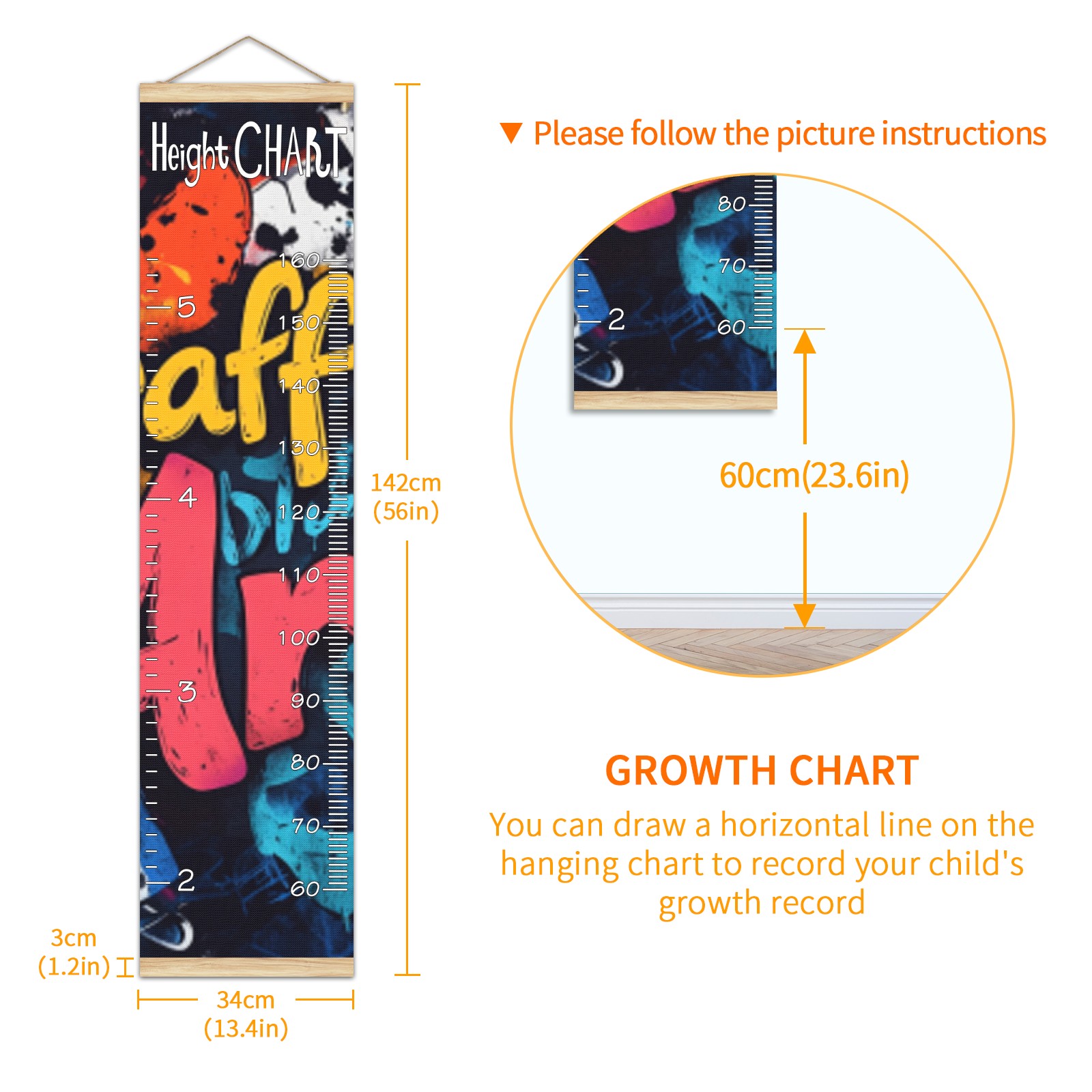 Removable Growth Chart for Kids - Measuring Hanging Height Chart -Meaningful Memories Through Kid Size Chart Measurement Growth Chart Ruler for Wall Graffiti Home Decor