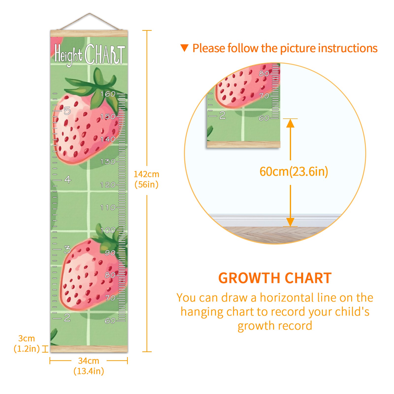 Removable Growth Chart for Kids - Measuring Hanging Height Chart -Meaningful Memories Through Kid Size Chart Measurement Growth Chart Ruler for Wall Pink Strawberries Home Decor