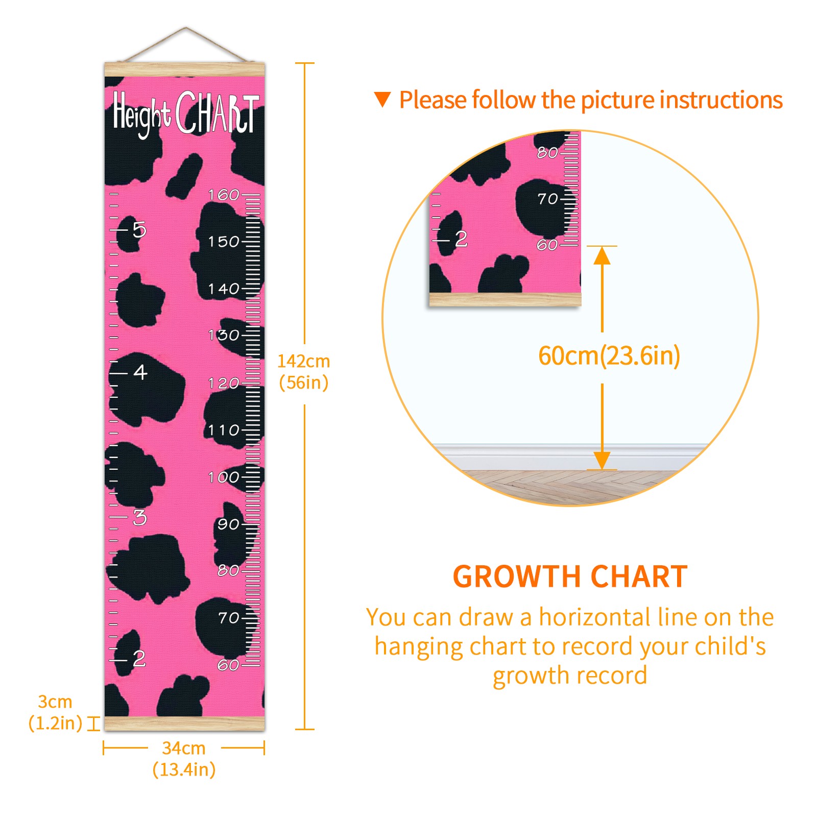 Removable Growth Chart for Kids - Measuring Hanging Height Chart -Meaningful Memories Through Kid Size Chart Measurement Growth Chart Ruler for Wall Pink Leopard Print Home Decor
