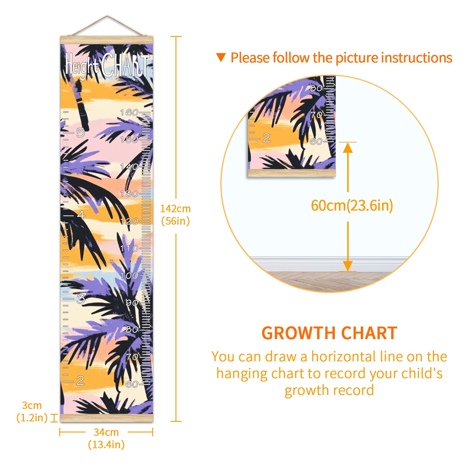 • Kids Growth Chart Ruler for Wall Wooden Frame Ruler Growth Chart for Kids Height Measure Chart 13.4x56 in Linen Fabric Hanging for Home Decor! <br> <br> ✨<b>Memory Keeping</b>: Just simply hang the chart on the wall and use a pen to draw a date on it, accompany your children grow up together and record their heights at different ages.<br> <br> ✨<b>Perfect Gift Idea for Kids</b> <br> <br> Environmental and non-toxic for kids use, it must be a perfect gift for baby, kids, girls, and boys.This is a best choice for your friend who have kids or baby as a popular gift.<br> <br> ✨<b>Easy to read </b> <br> <br> Measurement accrate with 2 scales, Centimeters and feet. The letters are big enough, very easy to read.