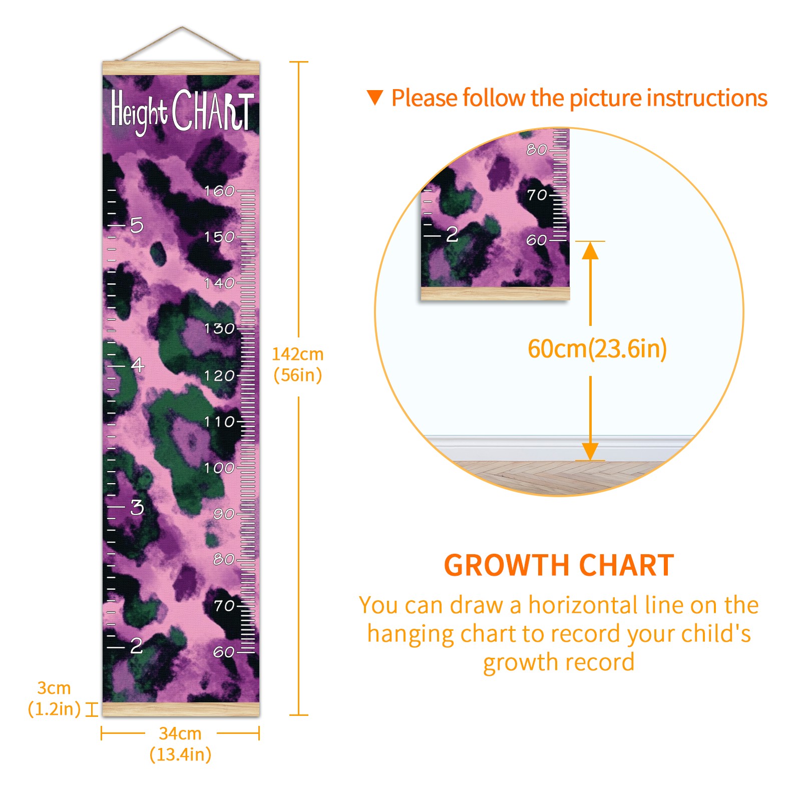 Removable Growth Chart for Kids - Measuring Hanging Height Chart -Meaningful Memories Through Kid Size Chart Measurement Growth Chart Ruler for Wall Purple And Green Leopard Print Home Decor