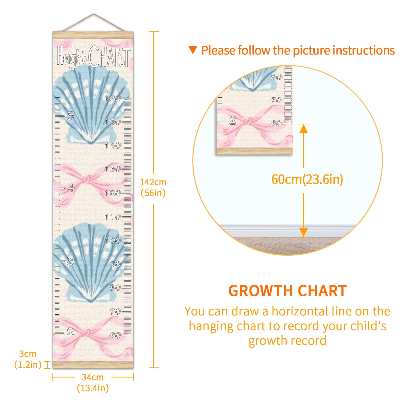 Removable Growth Chart for Kids - Measuring Hanging Height Chart -Meaningful Memories Through Kid Size Chart Measurement Growth Chart Ruler for Wall Bow Tie Shells Home Decor