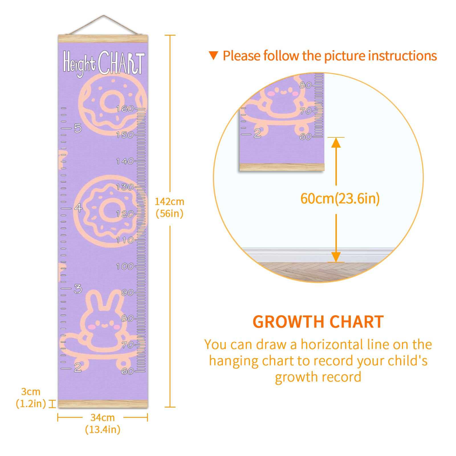 • Kids Growth Chart Ruler for Wall Wooden Frame Ruler Growth Chart for Kids Height Measure Chart 13.4x56 in Linen Fabric Hanging for Home Decor! <br> <br> ✨<b>Memory Keeping</b>: Just simply hang the chart on the wall and use a pen to draw a date on it, accompany your children grow up together and record their heights at different ages.<br> <br> ✨<b>Perfect Gift Idea for Kids</b> <br> <br> Environmental and non-toxic for kids use, it must be a perfect gift for baby, kids, girls, and boys.This is a best choice for your friend who have kids or baby as a popular gift.<br> <br> ✨<b>Easy to read </b> <br> <br> Measurement accrate with 2 scales, Centimeters and feet. The letters are big enough, very easy to read.