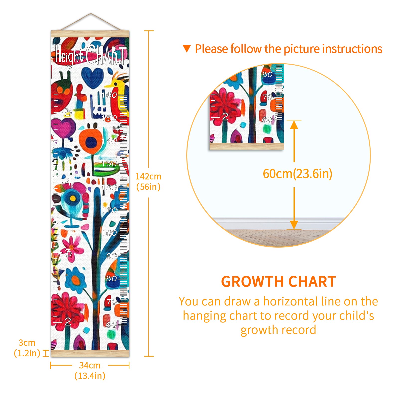 • Kids Growth Chart Ruler for Wall Wooden Frame Ruler Growth Chart for Kids Height Measure Chart 13.4x56 in Linen Fabric Hanging for Home Decor! <br> <br> ✨<b>Memory Keeping</b>: Just simply hang the chart on the wall and use a pen to draw a date on it, accompany your children grow up together and record their heights at different ages.<br> <br> ✨<b>Perfect Gift Idea for Kids</b> <br> <br> Environmental and non-toxic for kids use, it must be a perfect gift for baby, kids, girls, and boys.This is a best choice for your friend who have kids or baby as a popular gift.<br> <br> ✨<b>Easy to read </b> <br> <br> Measurement accrate with 2 scales, Centimeters and feet. The letters are big enough, very easy to read.