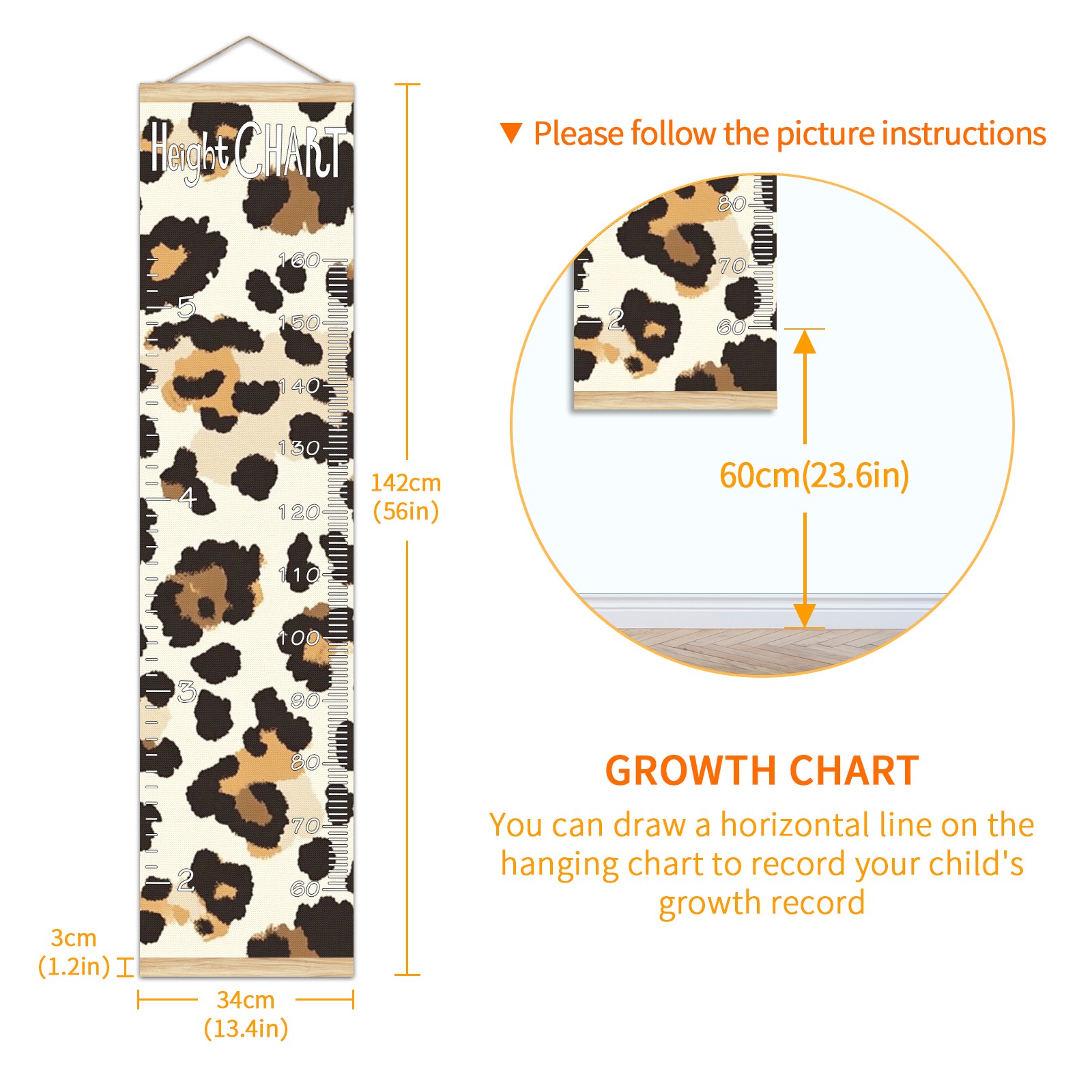 Removable Growth Chart for Kids - Measuring Hanging Height Chart -Meaningful Memories Through Kid Size Chart Measurement Growth Chart Ruler for Wall Leopard Home Decor
