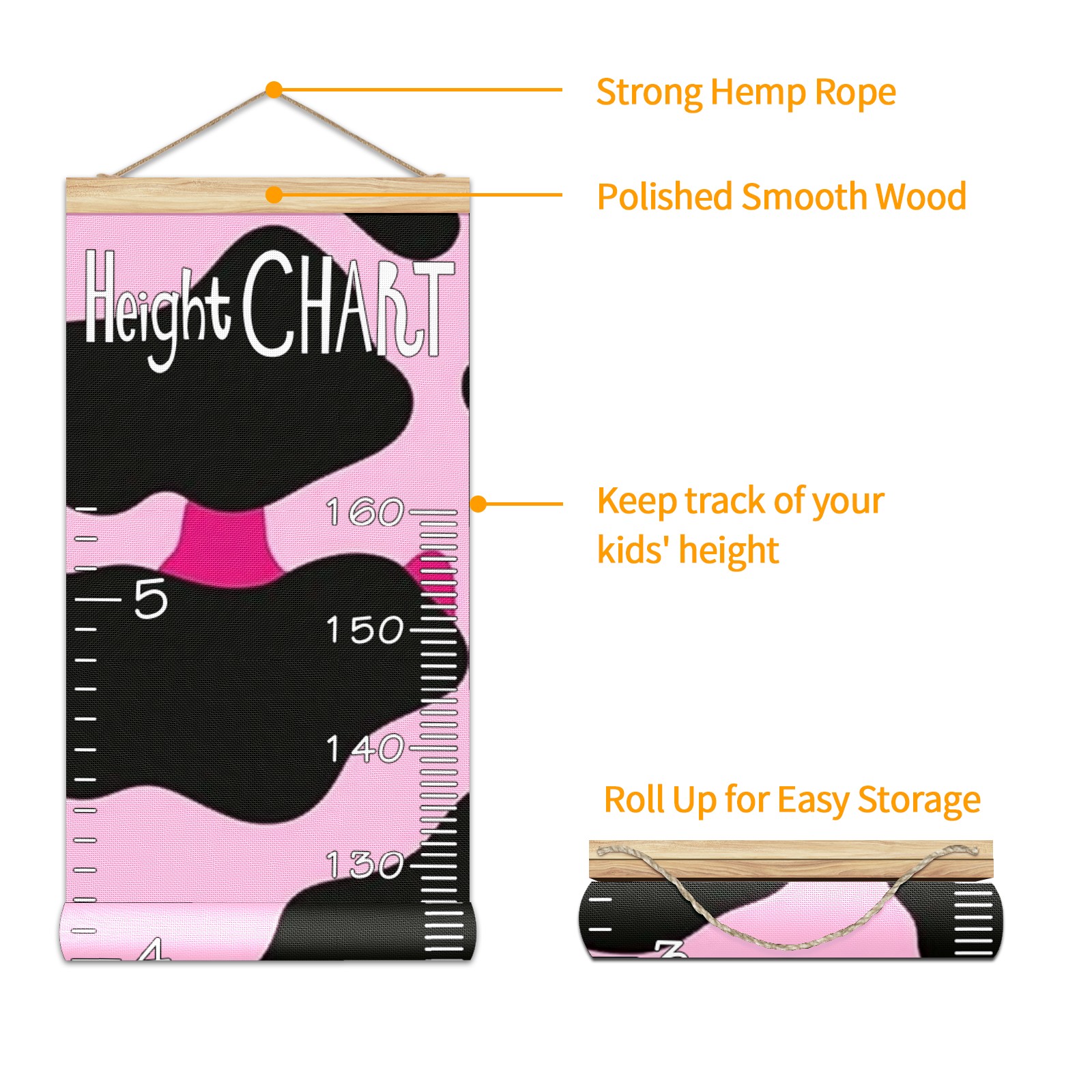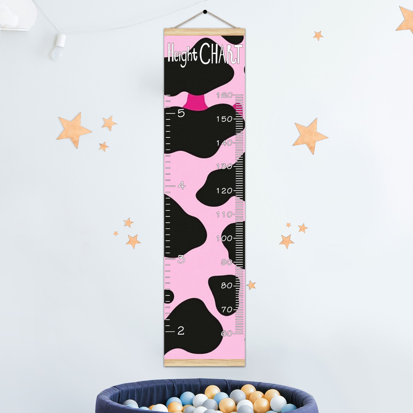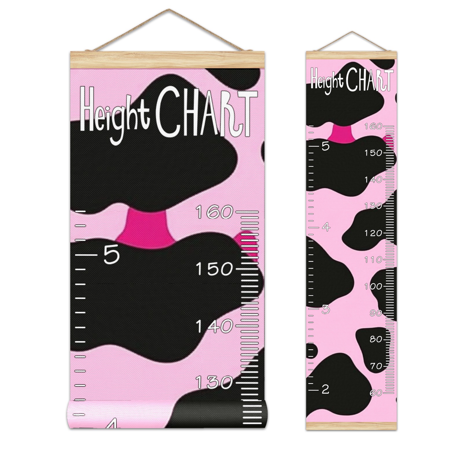 Removable Growth Chart for Kids - Measuring Hanging Height Chart -Meaningful Memories Through Kid Size Chart Measurement Growth Chart Ruler for Wall Pink And Black Cow Print Pattern Home Decor