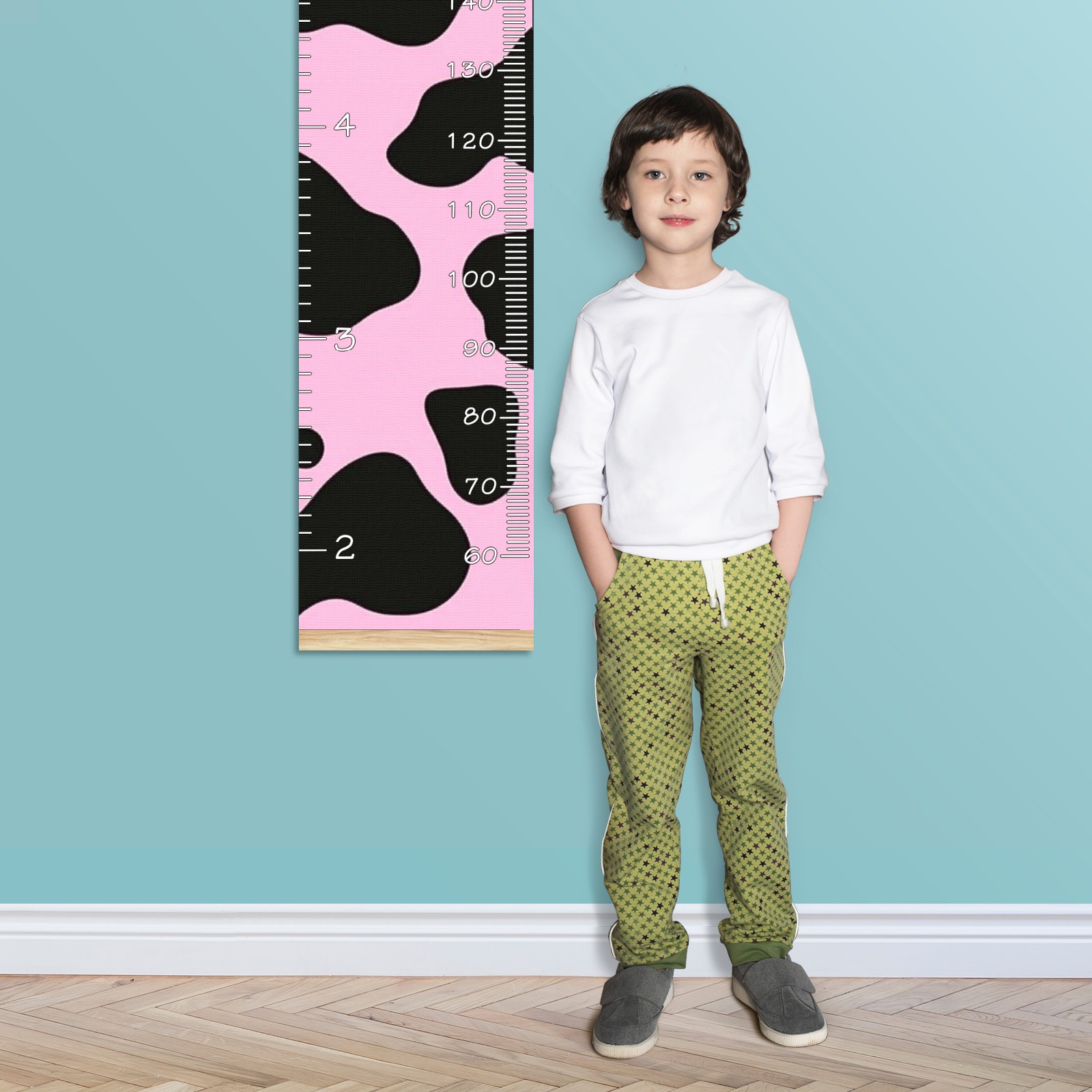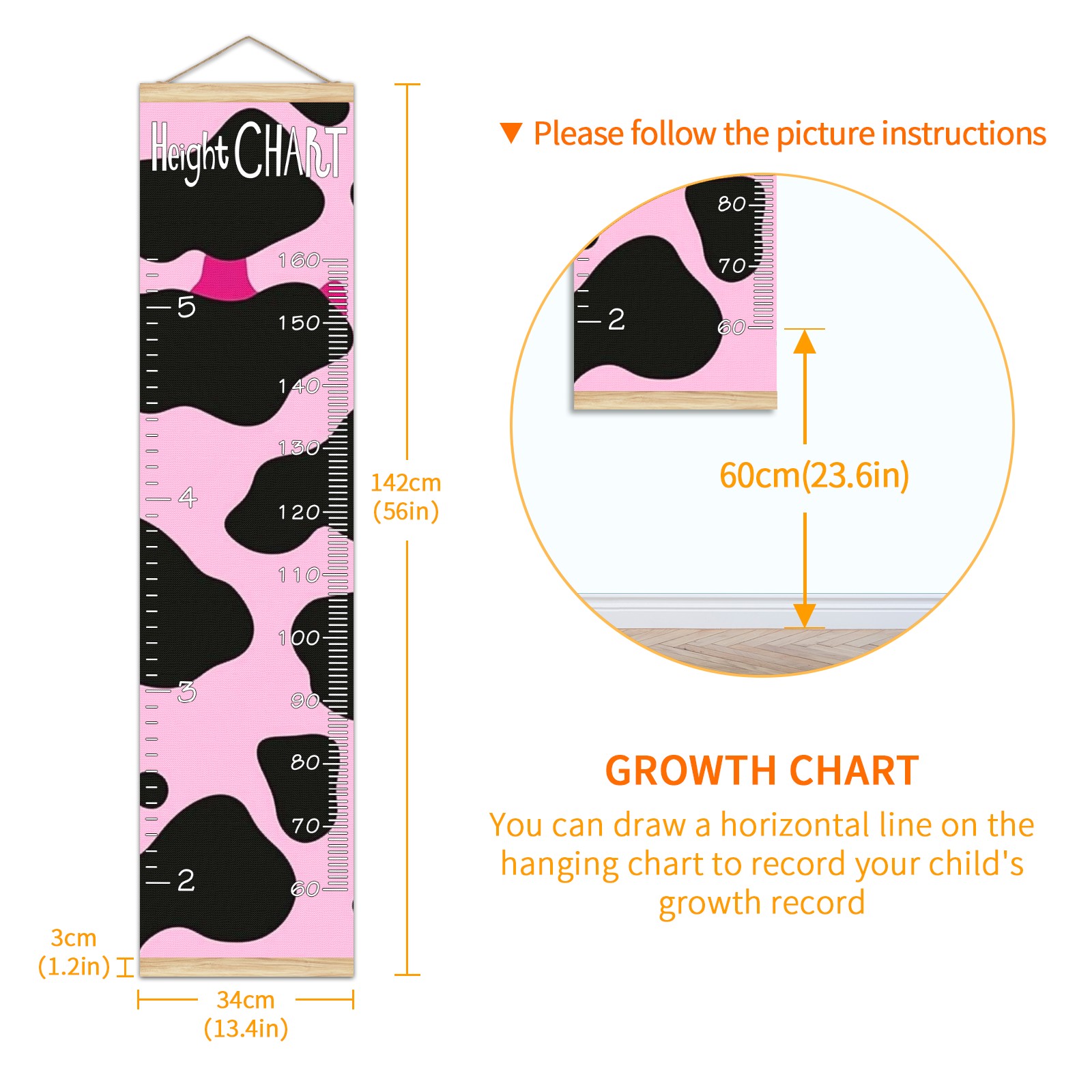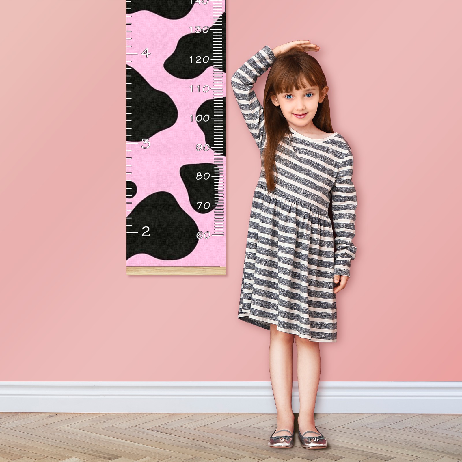 Removable Growth Chart for Kids - Measuring Hanging Height Chart -Meaningful Memories Through Kid Size Chart Measurement Growth Chart Ruler for Wall Pink And Black Cow Print Pattern Home Decor