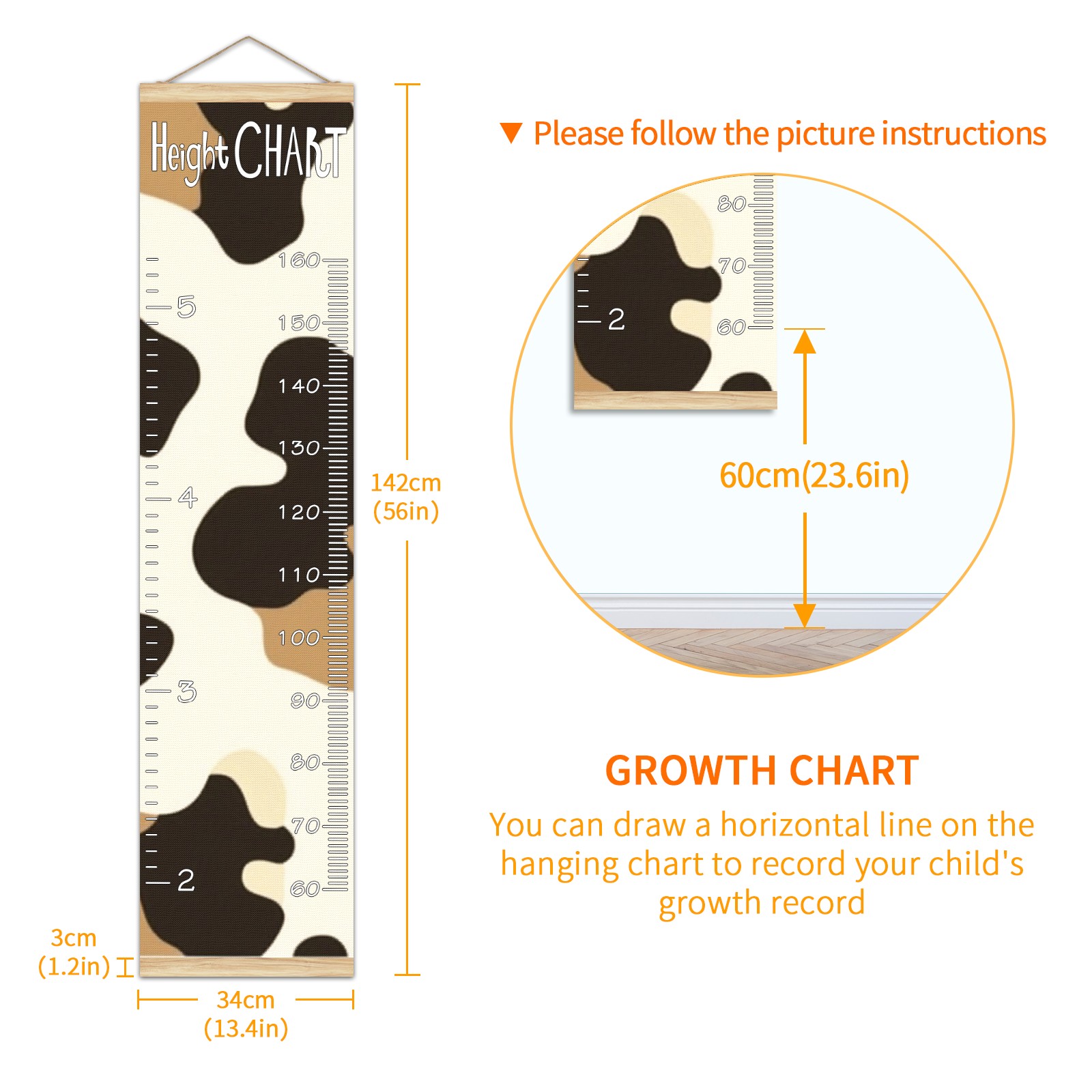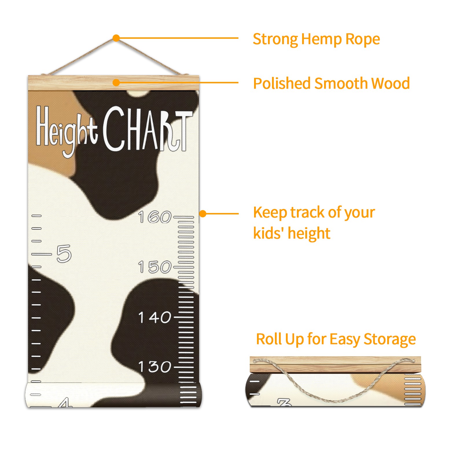 Removable Growth Chart for Kids - Measuring Hanging Height Chart -Meaningful Memories Through Kid Size Chart Measurement Growth Chart Ruler for Wall Cow Print Home Decor