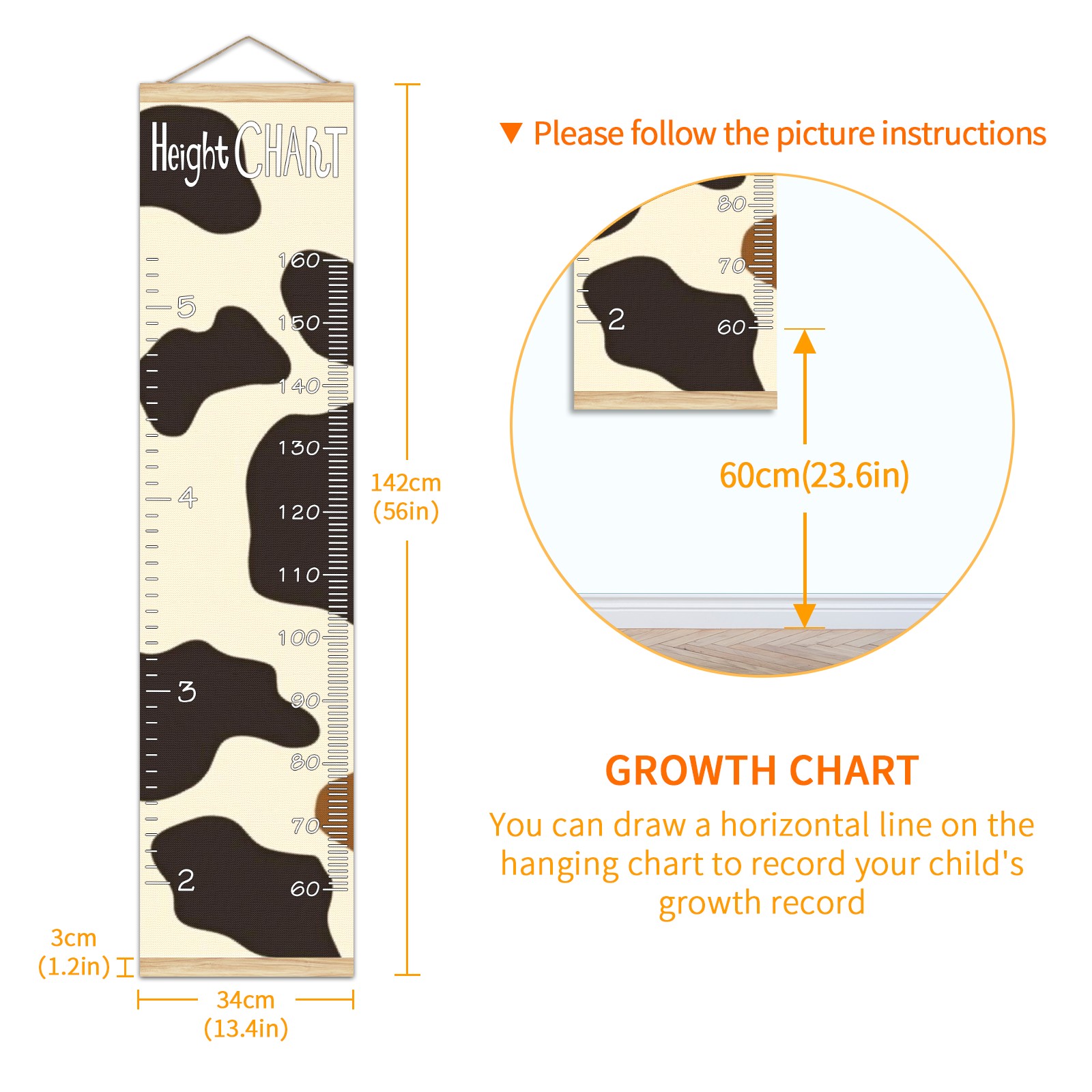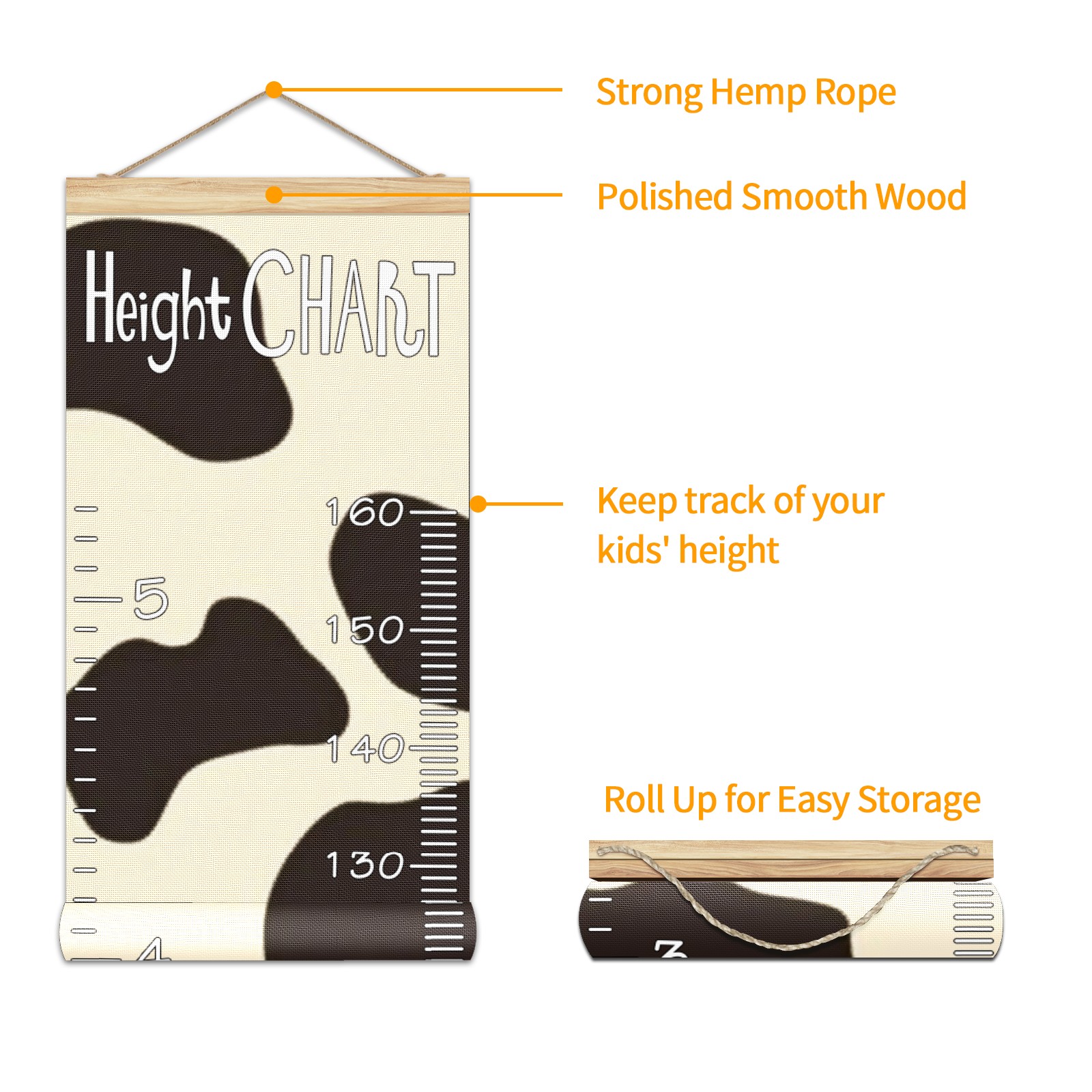 Removable Growth Chart for Kids - Measuring Hanging Height Chart -Meaningful Memories Through Kid Size Chart Measurement Growth Chart Ruler for Wall Cow Print Pattern Home Decor