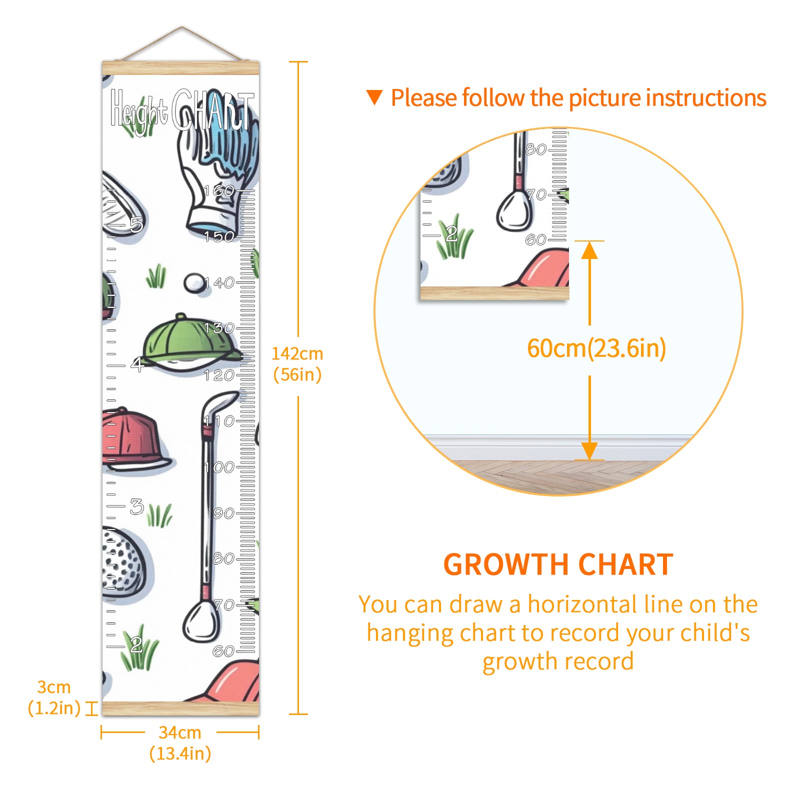 Removable Growth Chart for Kids - Measuring Hanging Height Chart -Meaningful Memories Through Kid Size Chart Measurement Growth Chart Ruler for Wall Golf Elements Home Decor