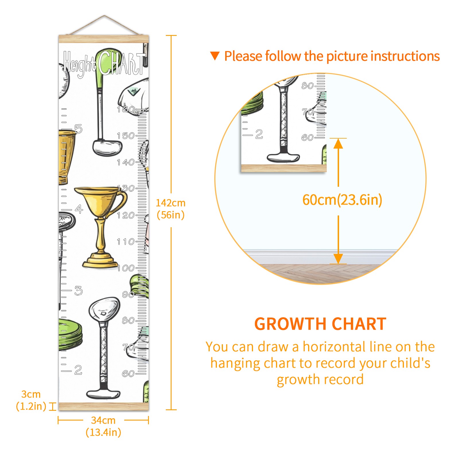 Removable Growth Chart for Kids - Measuring Hanging Height Chart -Meaningful Memories Through Kid Size Chart Measurement Growth Chart Ruler for Wall Hand-drawn Golf Pattern Home Decor