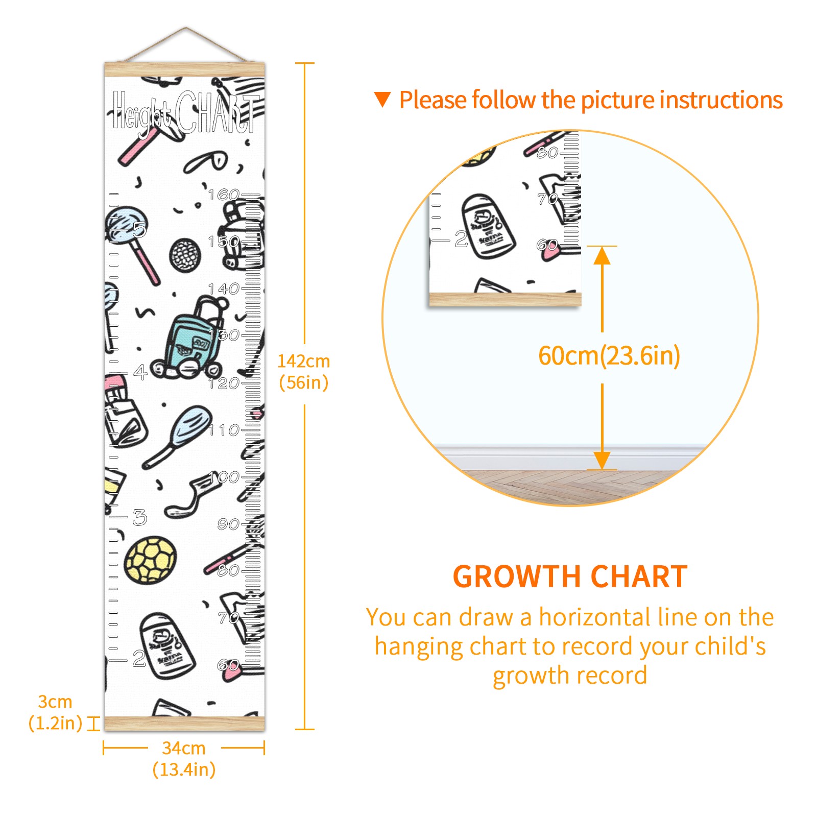 Removable Growth Chart for Kids - Measuring Hanging Height Chart -Meaningful Memories Through Kid Size Chart Measurement Growth Chart Ruler for Wall Golf-themed Pattern Home Decor