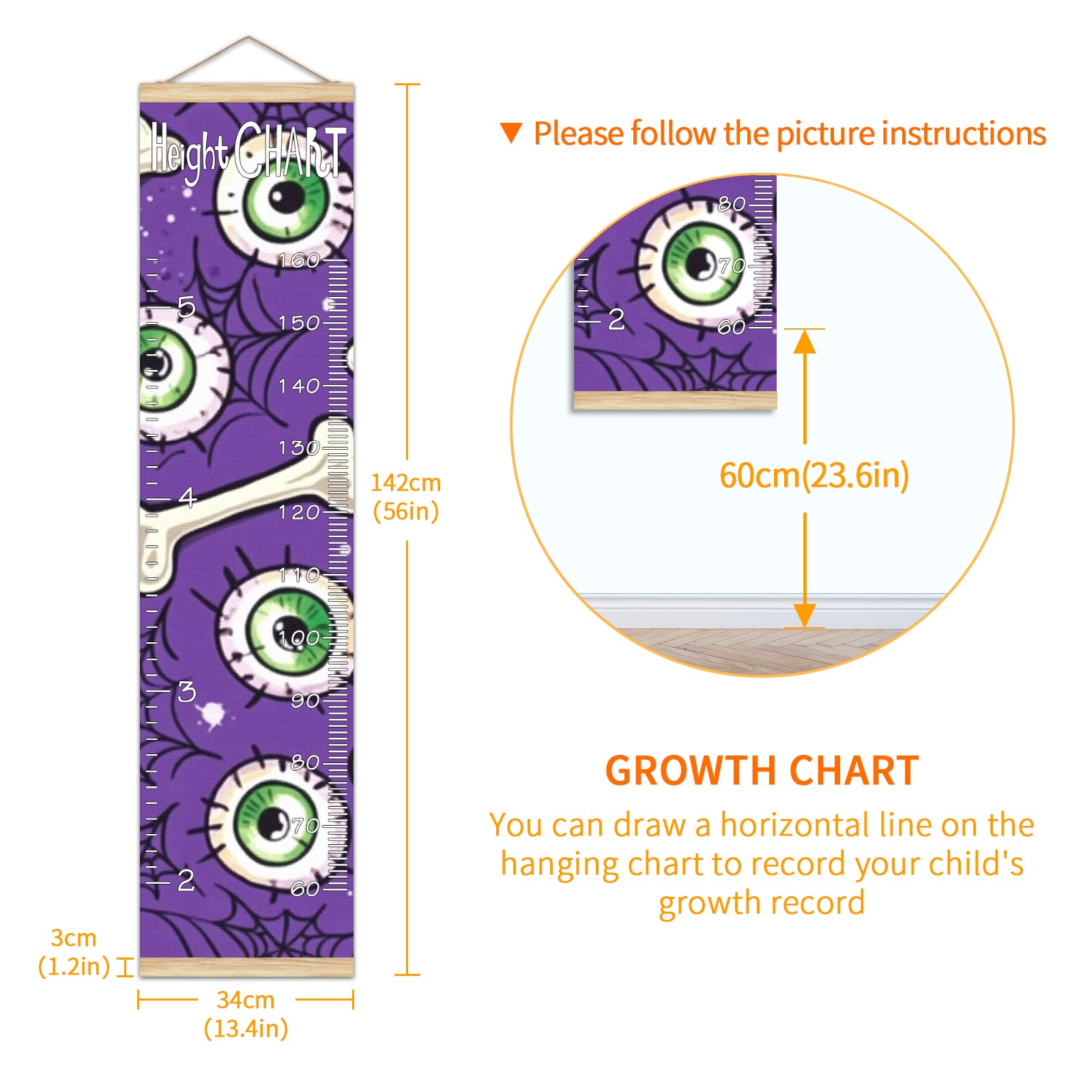 Removable Growth Chart for Kids - Measuring Hanging Height Chart -Meaningful Memories Through Kid Size Chart Measurement Growth Chart Ruler for Wall Eyeballs And Bones Home Decor