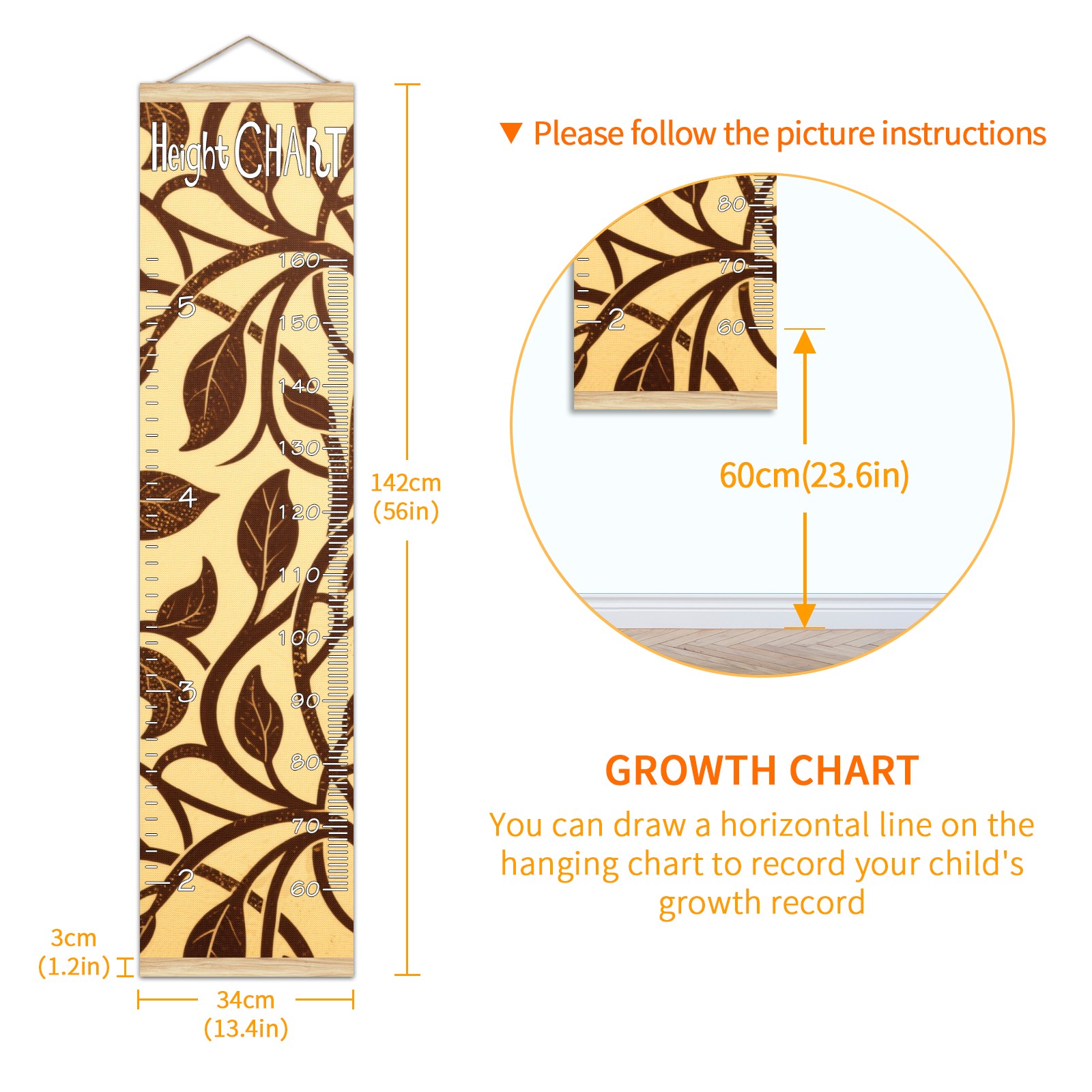 Kids Growth Chart Ruler for Wall Wooden Frame Ruler Growth Chart for Kids Height Measure Chart 13.4x56 in Linen Fabric Hanging for Home Decor! <br> <br> ✨<b>Memory Keeping</b>: Just simply hang the chart on the wall and use a pen to draw a date on it, accompany your children grow up together and record their heights at different ages.<br> <br> ✨<b>Perfect Gift Idea for Kids</b> <br> <br> Environmental and non-toxic for kids use, it must be a perfect gift for baby, kids, girls, and boys.This is a best choice for your friend who have kids or baby as a popular gift.<br> <br> ✨<b>Easy to read </b> <br> <br> Measurement accrate with 2 scales, Centimeters and feet. The letters are big enough, very easy to read.