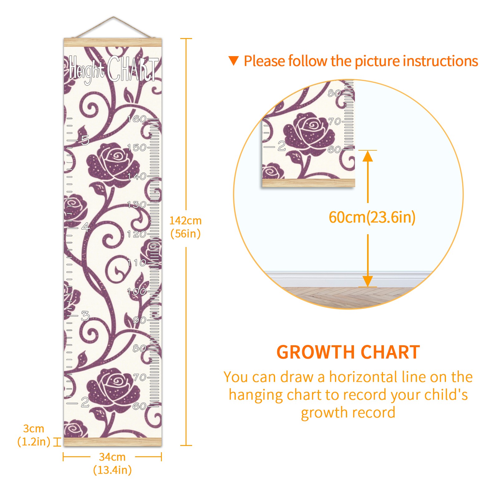 • Kids Growth Chart Ruler for Wall Wooden Frame Ruler Growth Chart for Kids Height Measure Chart 13.4x56 in Linen Fabric Hanging for Home Decor! <br> <br> ✨<b>Memory Keeping</b>: Just simply hang the chart on the wall and use a pen to draw a date on it, accompany your children grow up together and record their heights at different ages.<br> <br> ✨<b>Perfect Gift Idea for Kids</b> <br> <br> Environmental and non-toxic for kids use, it must be a perfect gift for baby, kids, girls, and boys.This is a best choice for your friend who have kids or baby as a popular gift.<br> <br> ✨<b>Easy to read </b> <br> <br> Measurement accrate with 2 scales, Centimeters and feet. The letters are big enough, very easy to read.