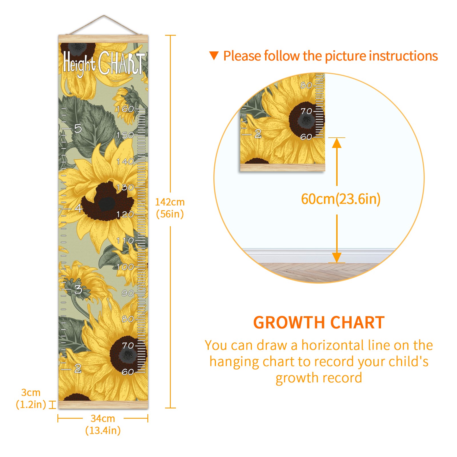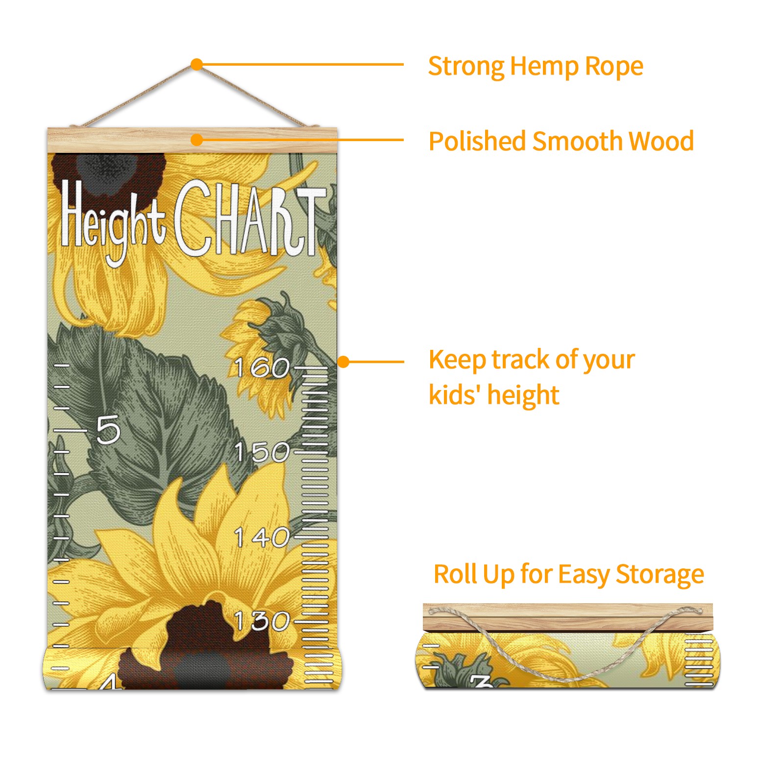 Removable Growth Chart for Kids - Measuring Hanging Height Chart -Meaningful Memories Through Kid Size Chart Measurement Growth Chart Ruler for Wall Sunflowers Home Decor